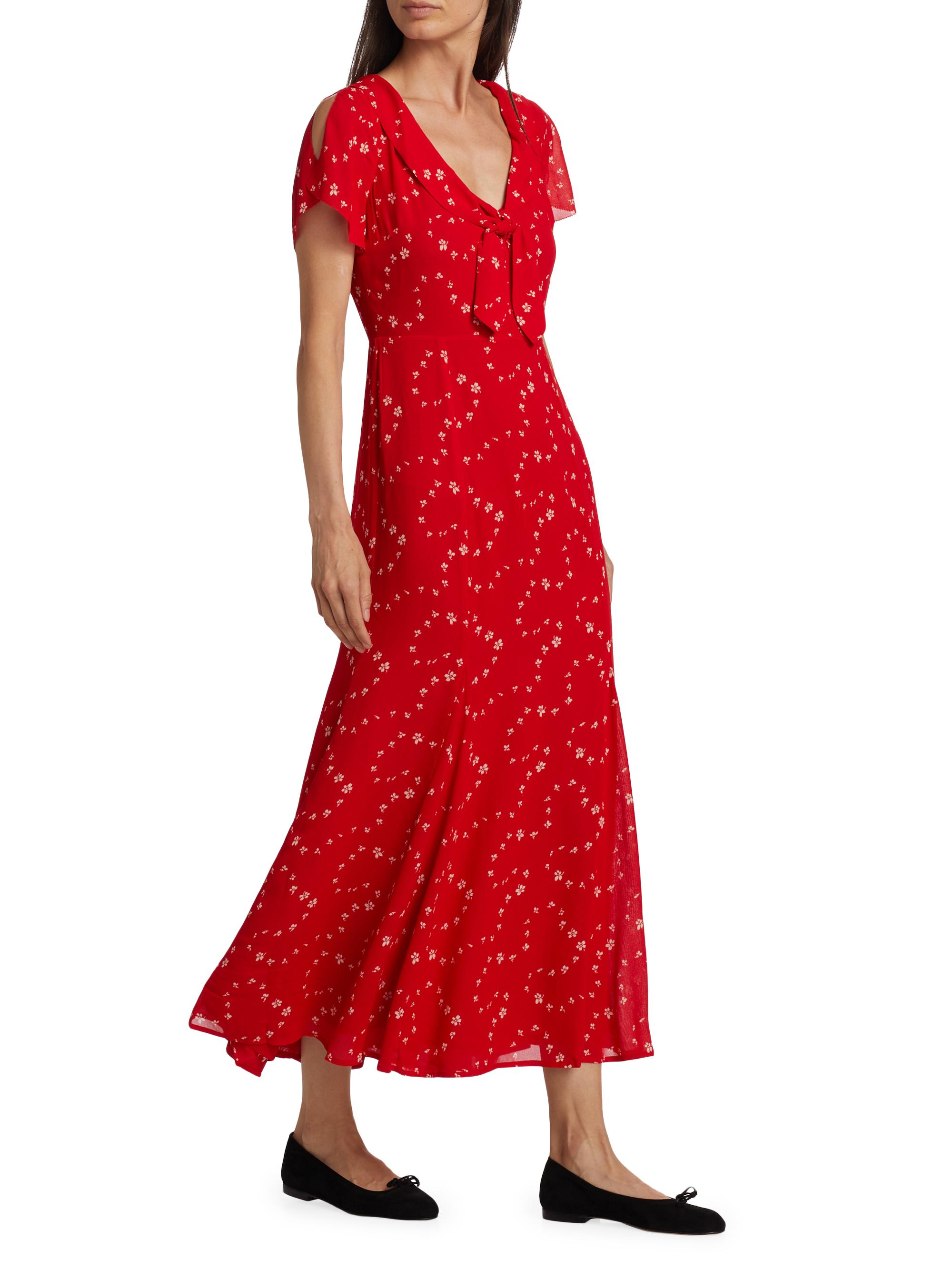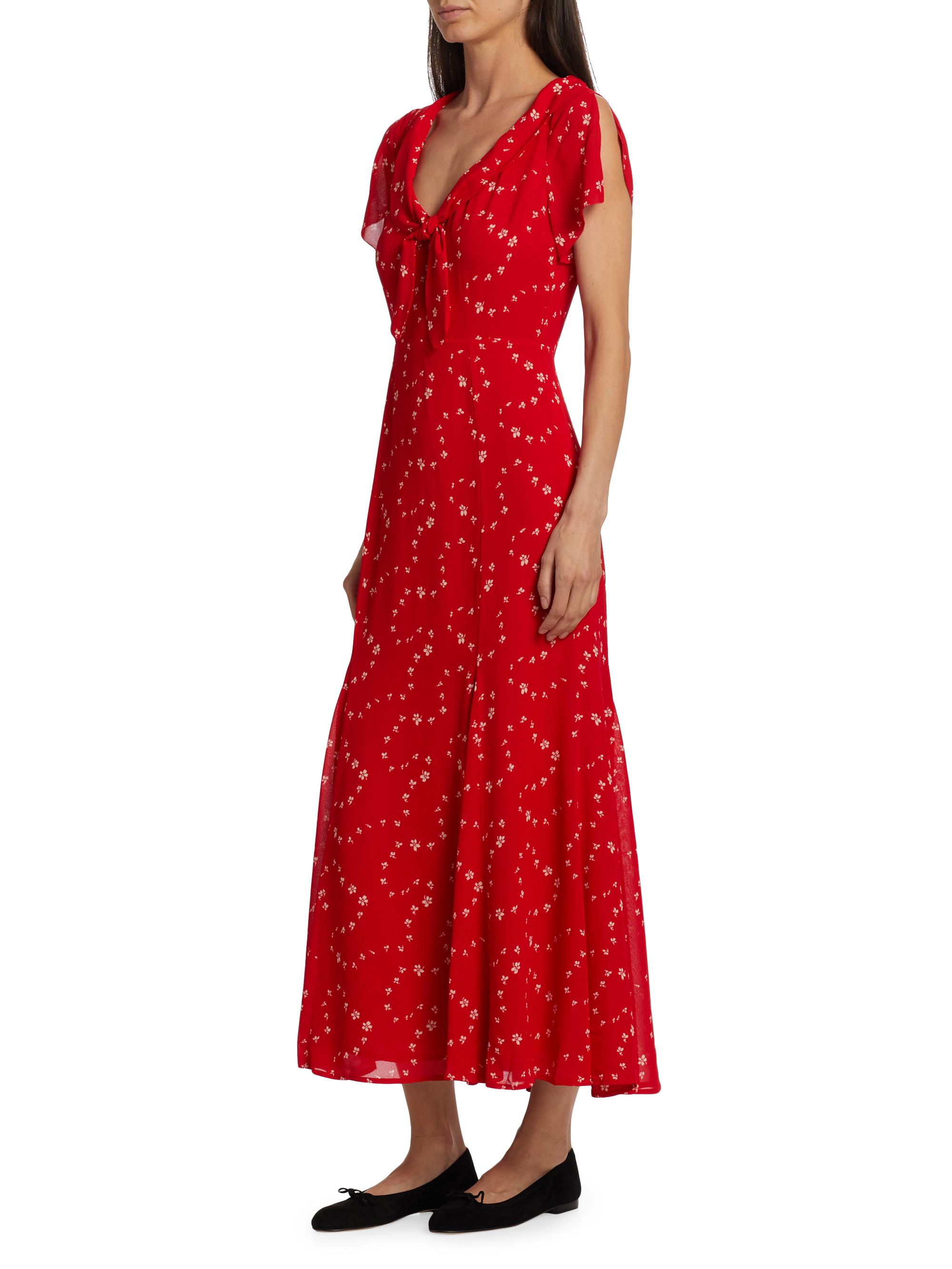 Reformation Talleen Floral Tie-Neck Midi-Dress