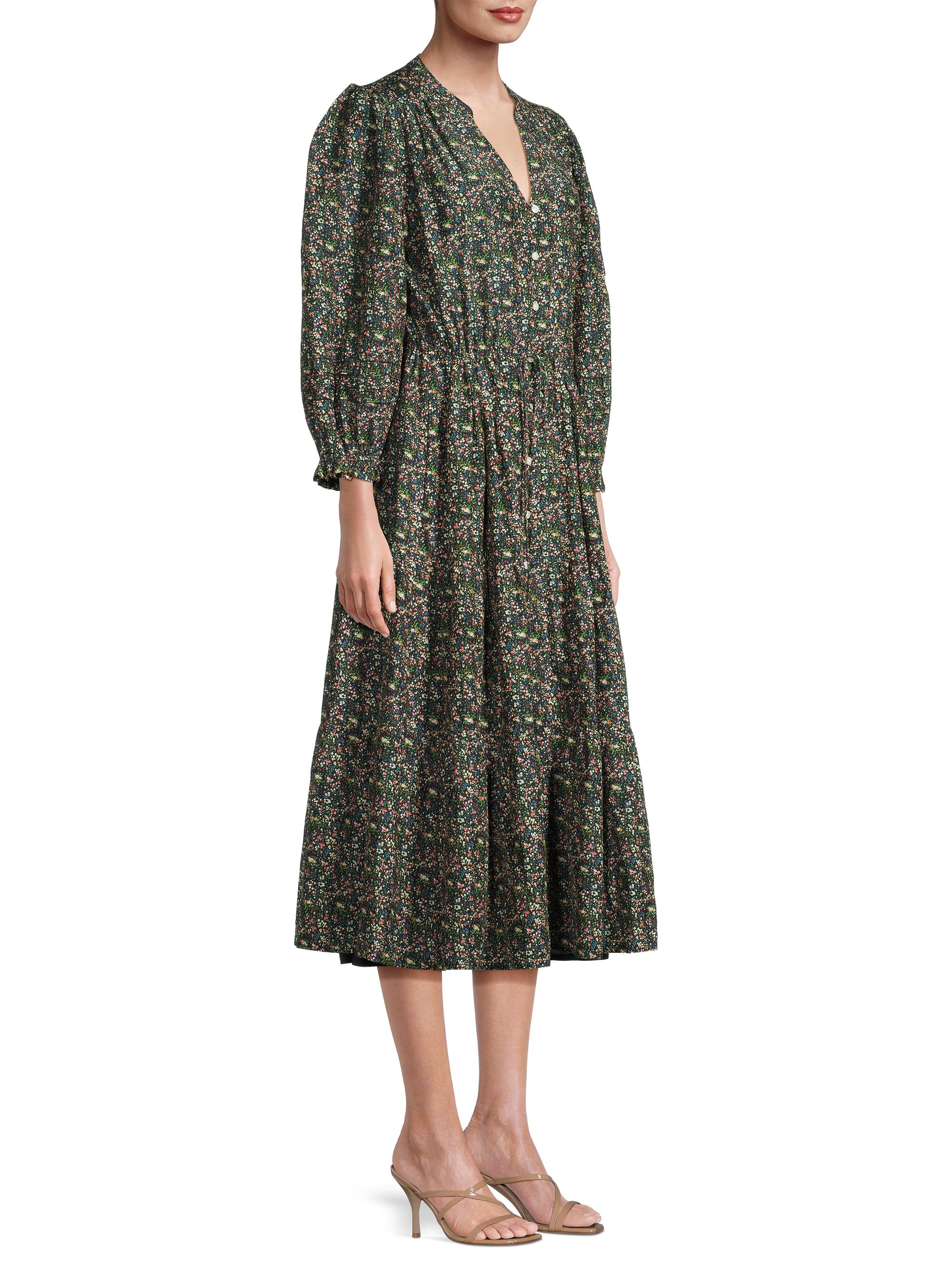 Birds of Paradis Sylvie Floral Cotton & Silk-Blend Midi-Dress