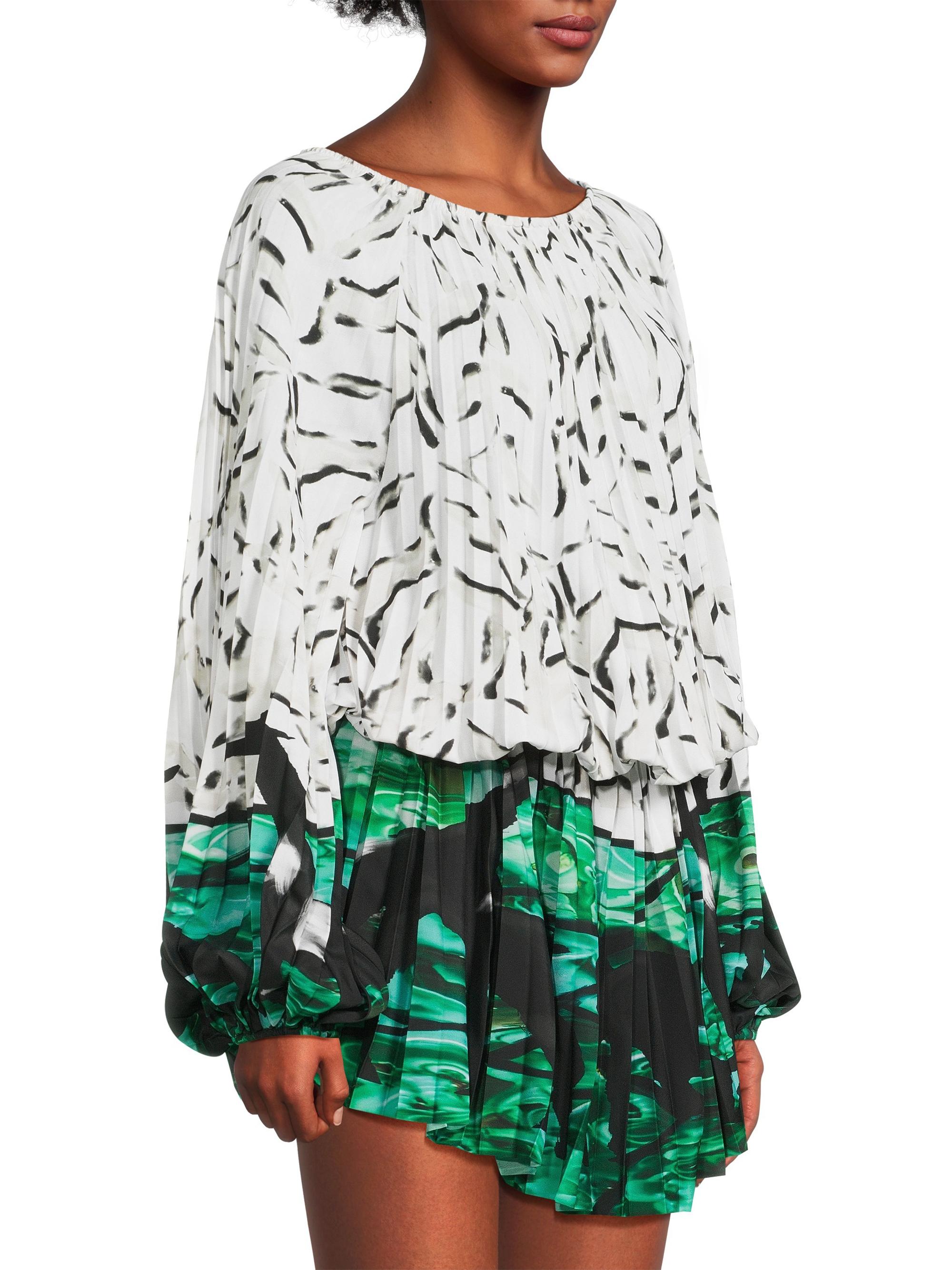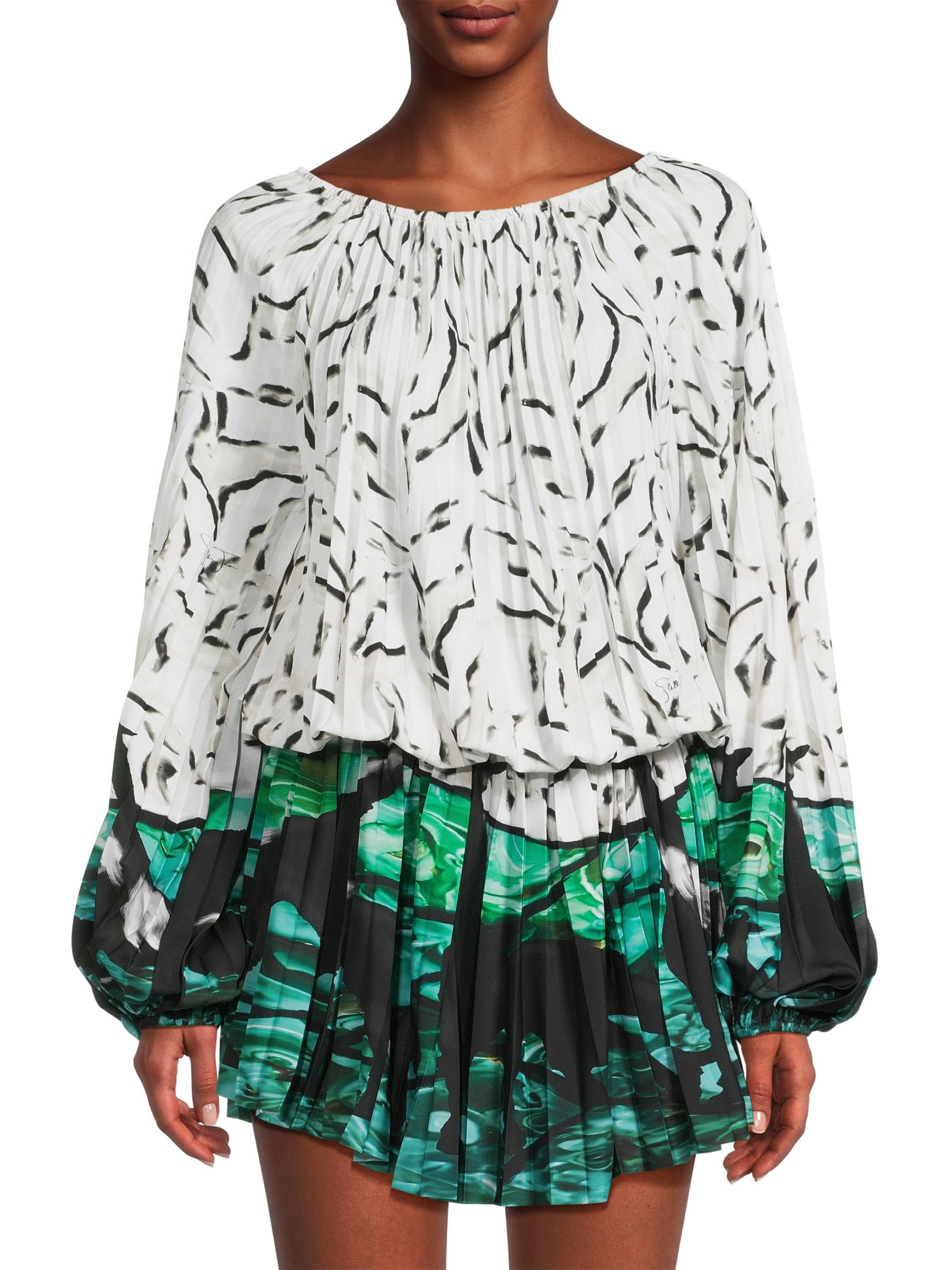 Stella Jean Giraffe Hem Printed Pleated Minidress