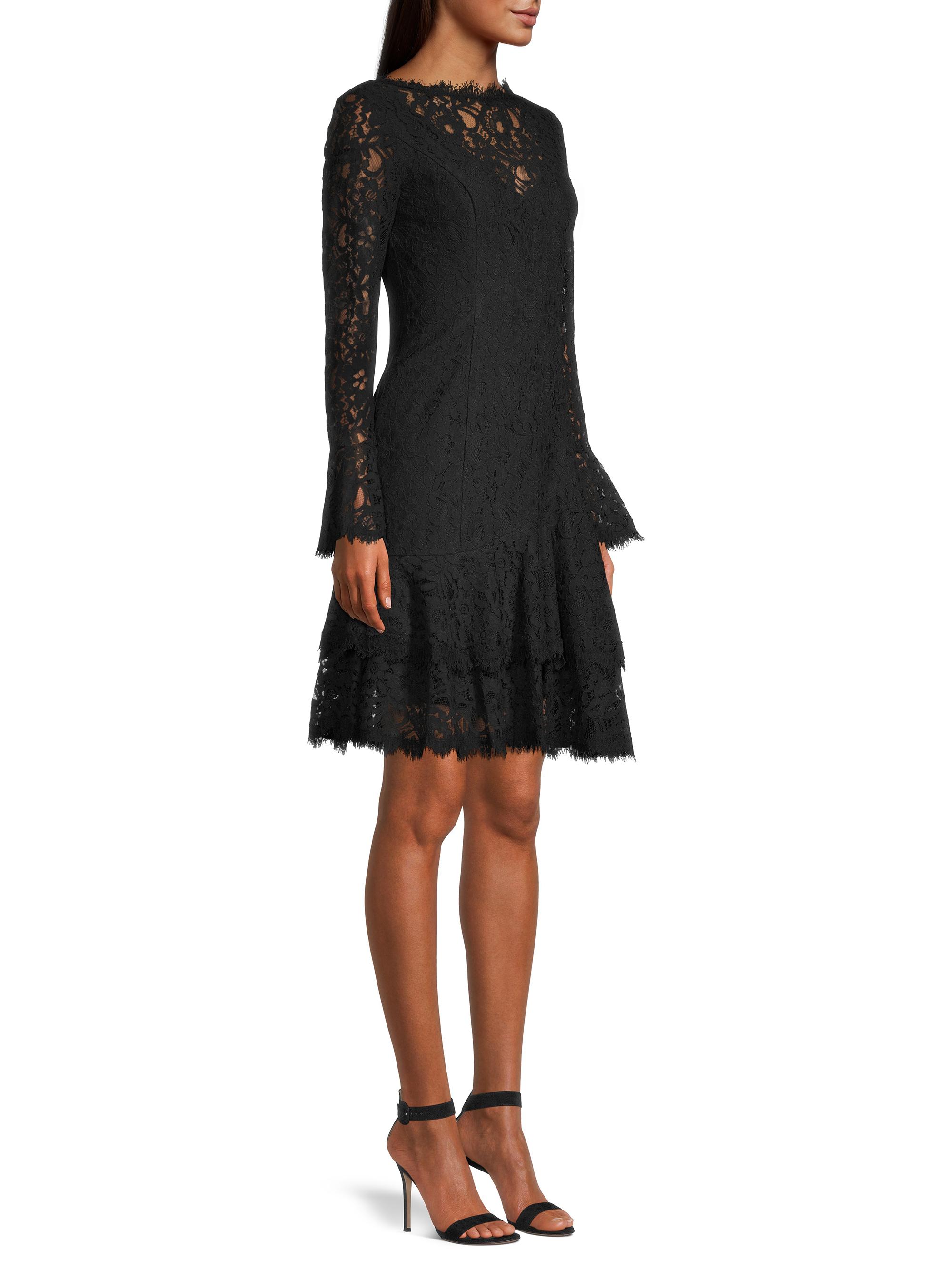 Shani Tiered Flounce Lace Dress BLACK