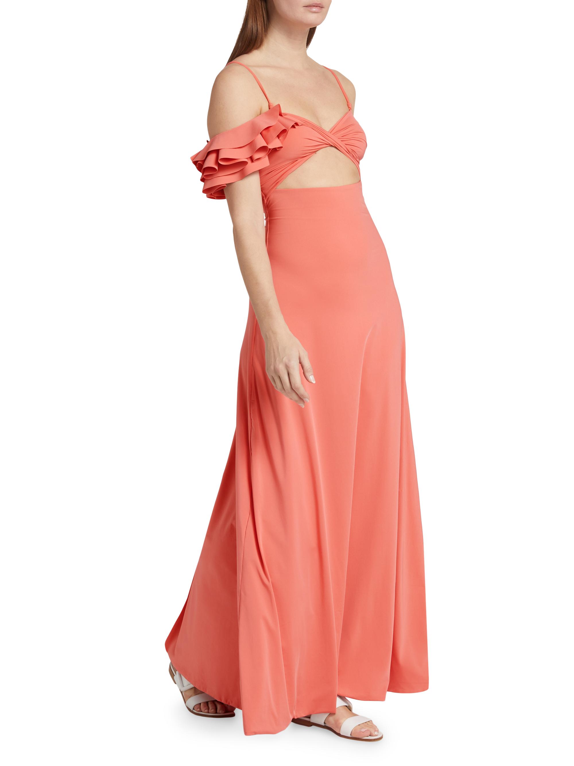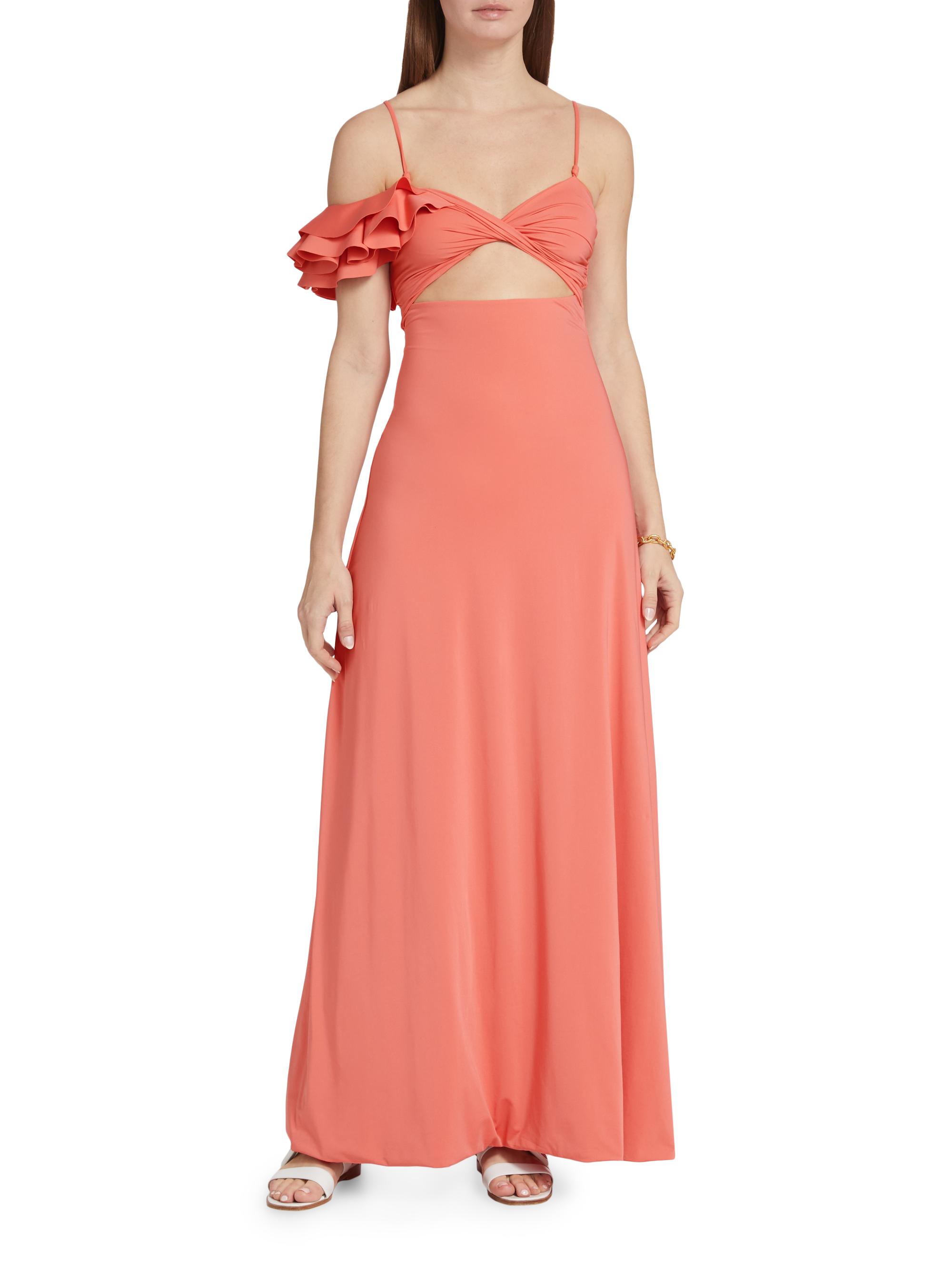Maygel Coronel Nodus Cavalieri Ruffle Maxi Dress