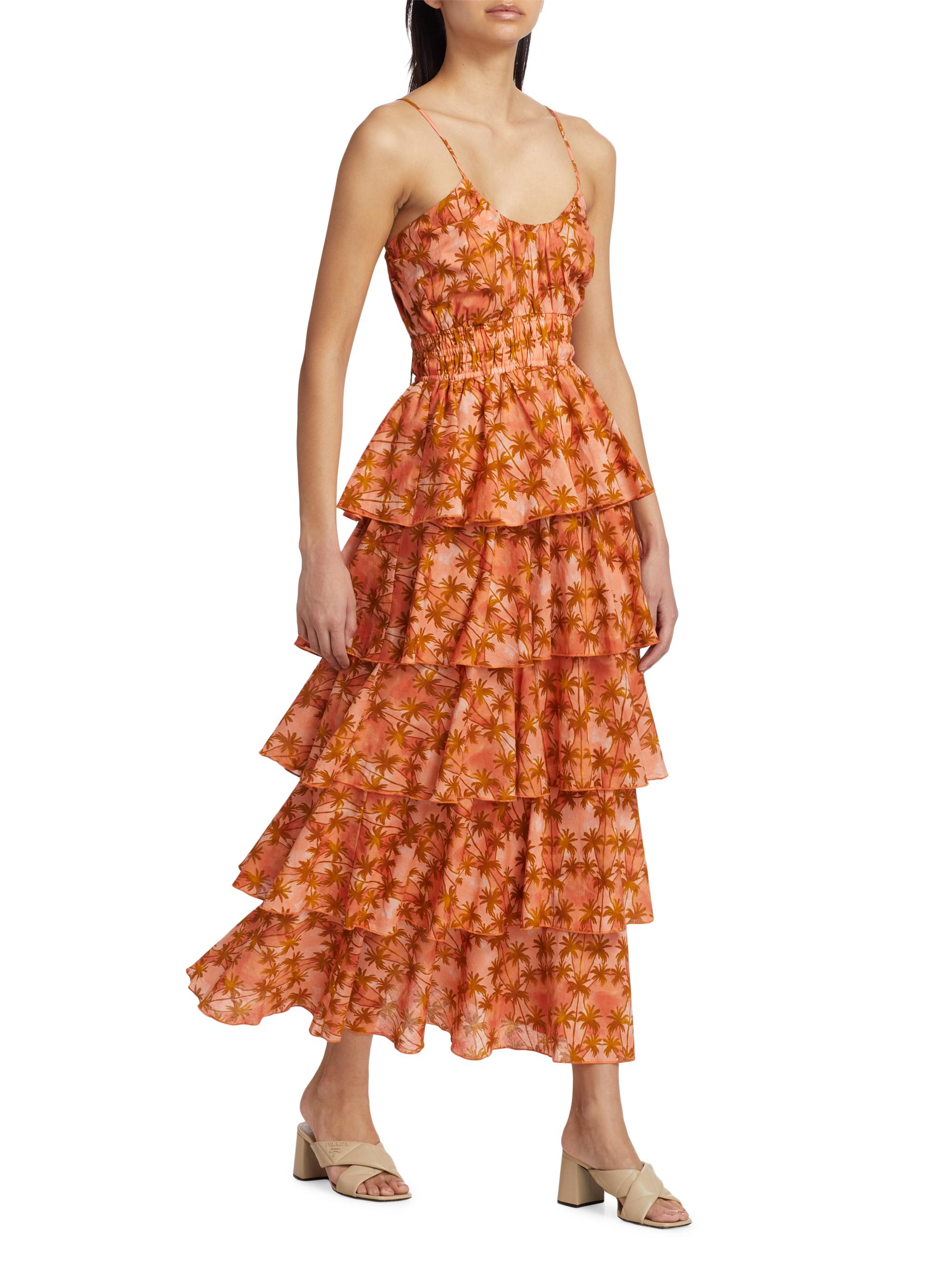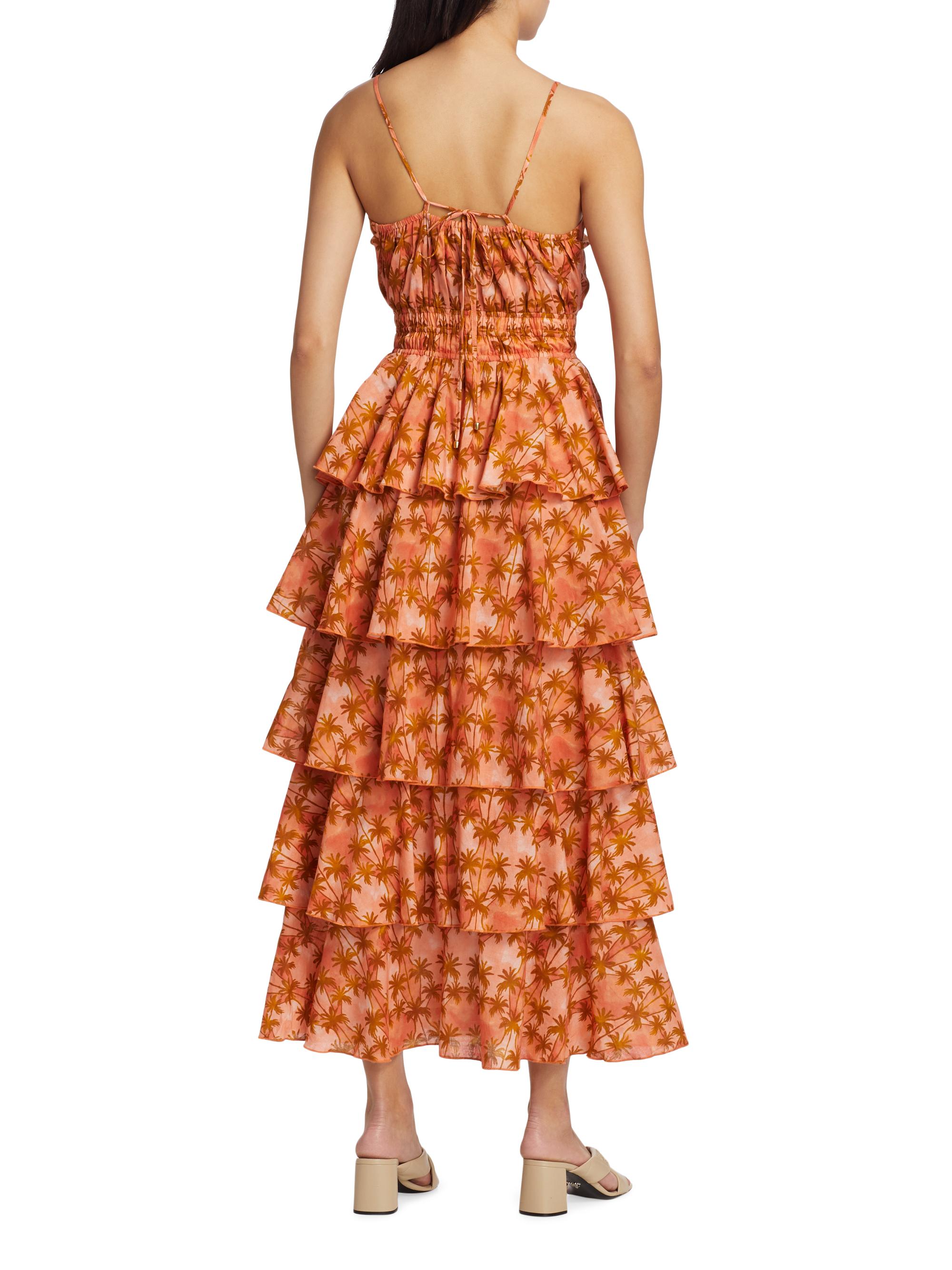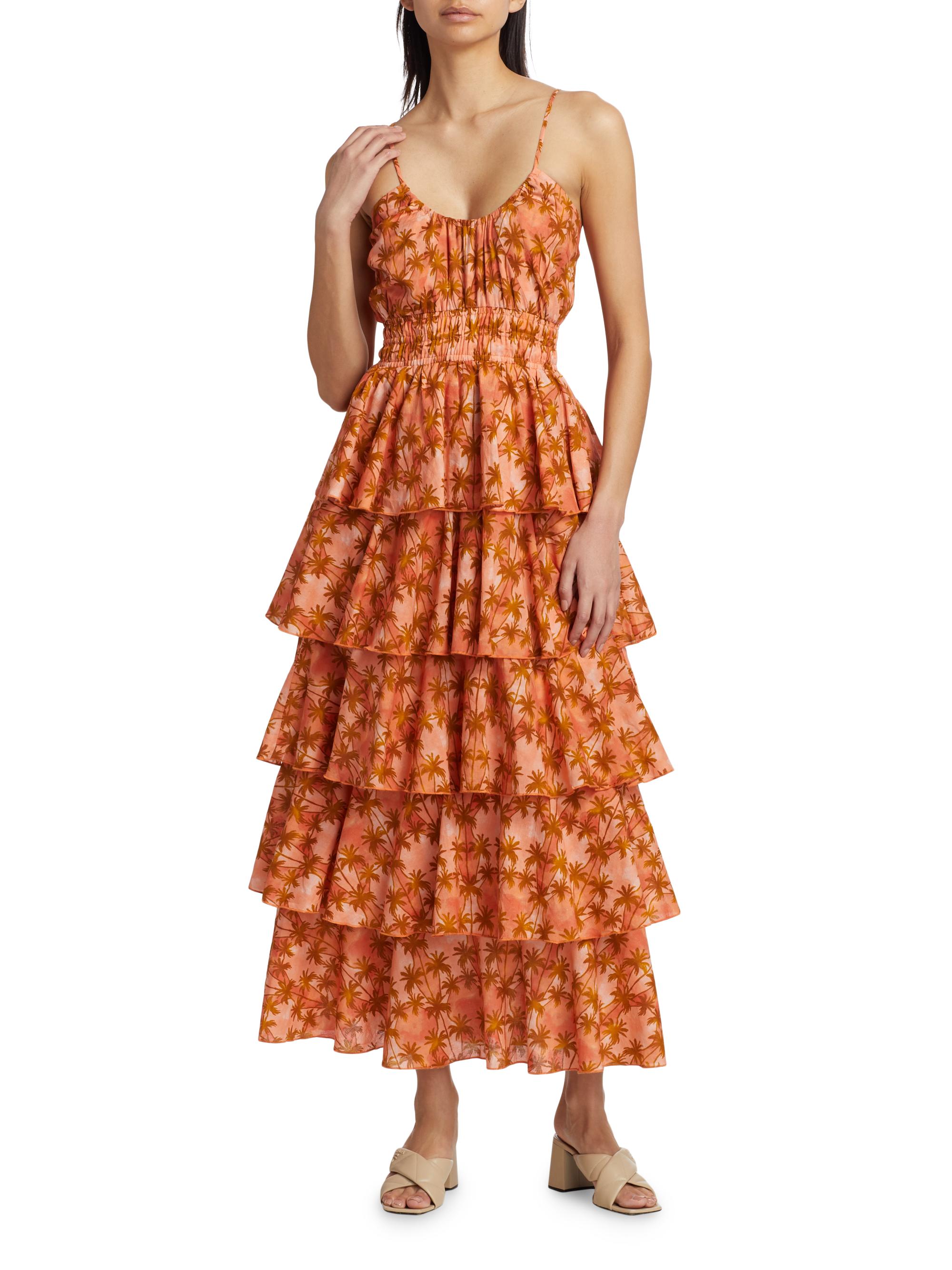 Kivari Leilani Palm Tree Cotton Tiered Dress