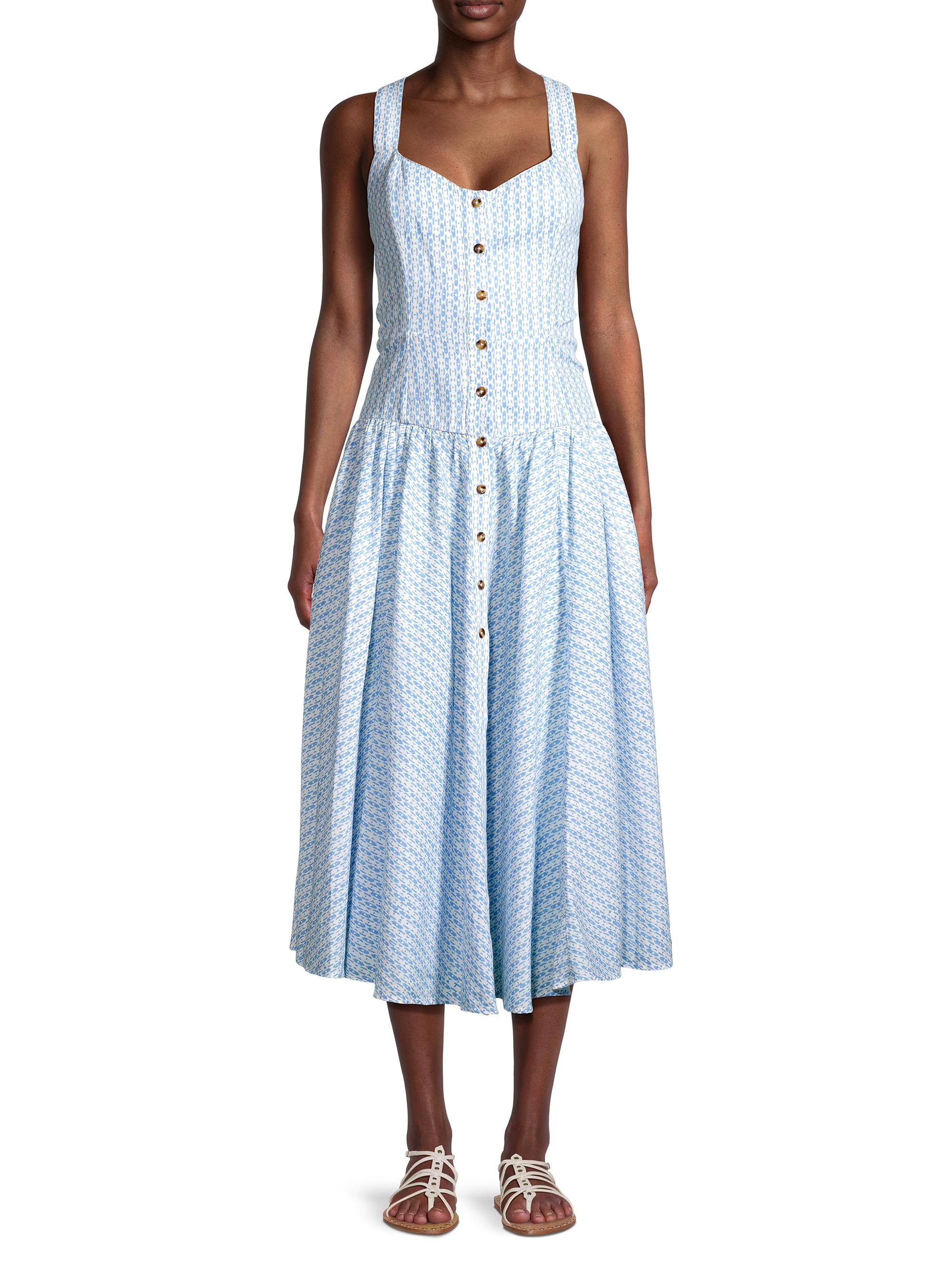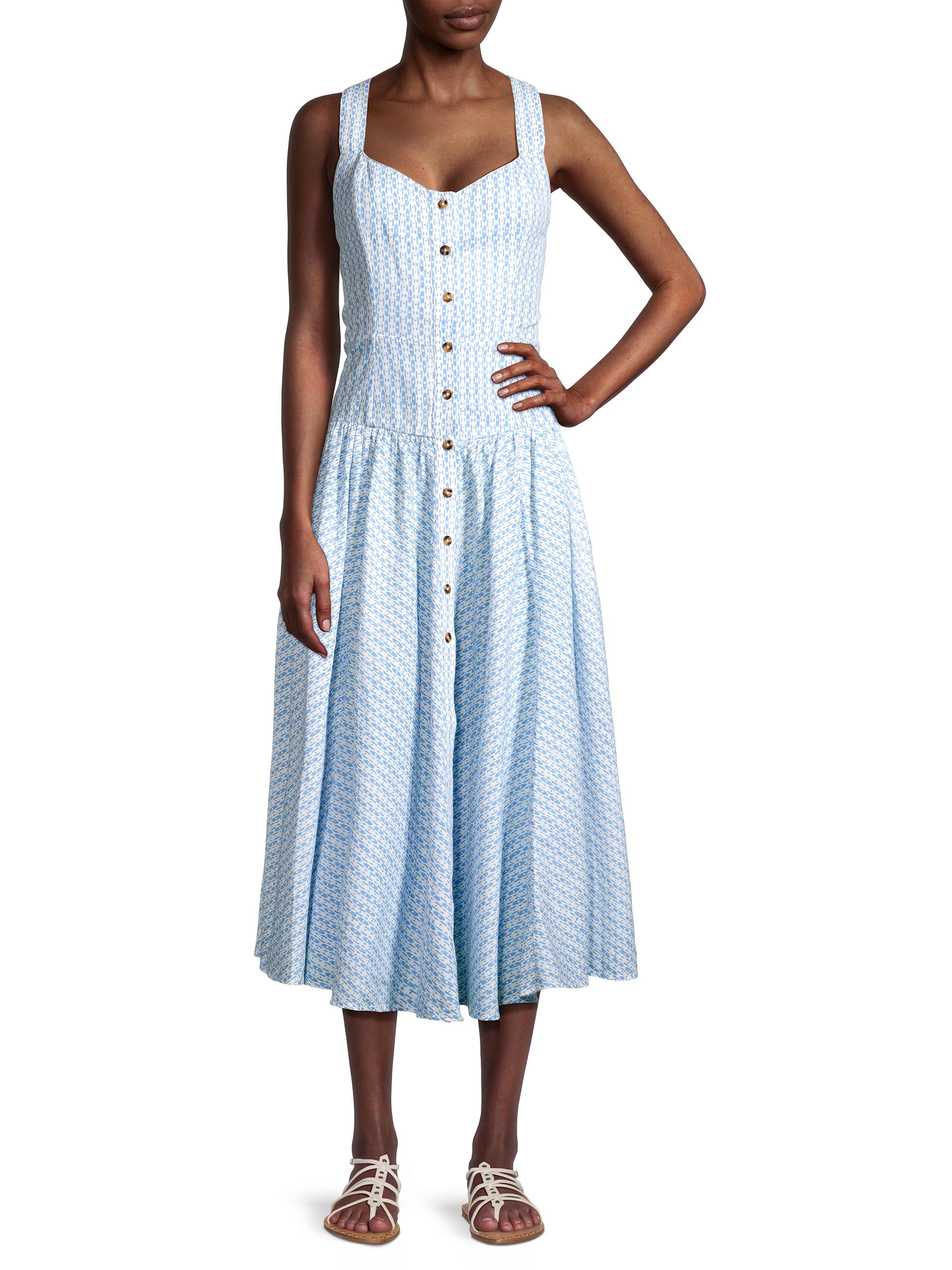 Ciao Lucia Hoku Geometric Cotton-Linen Midi-Dress