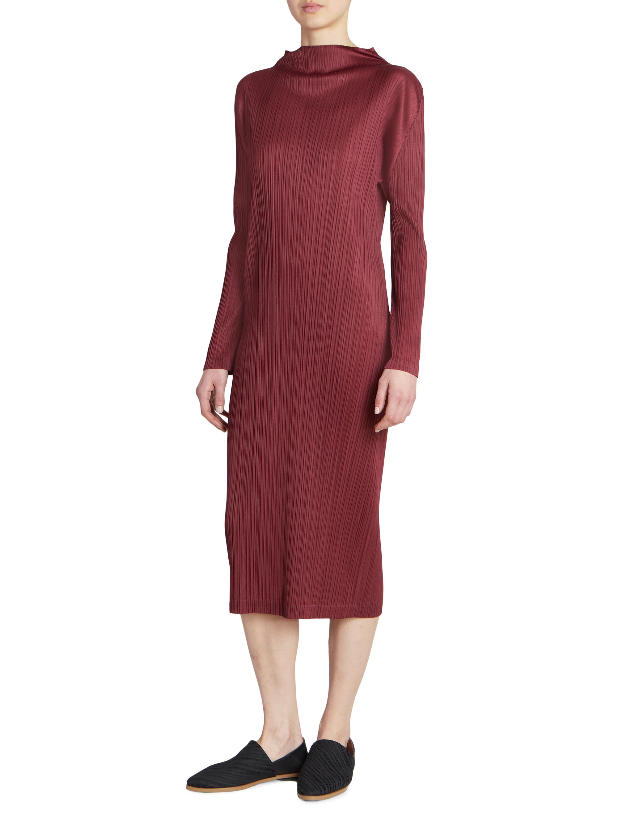 Pleats Please Issey Miyake October Long-Sleeve Midi-Dress