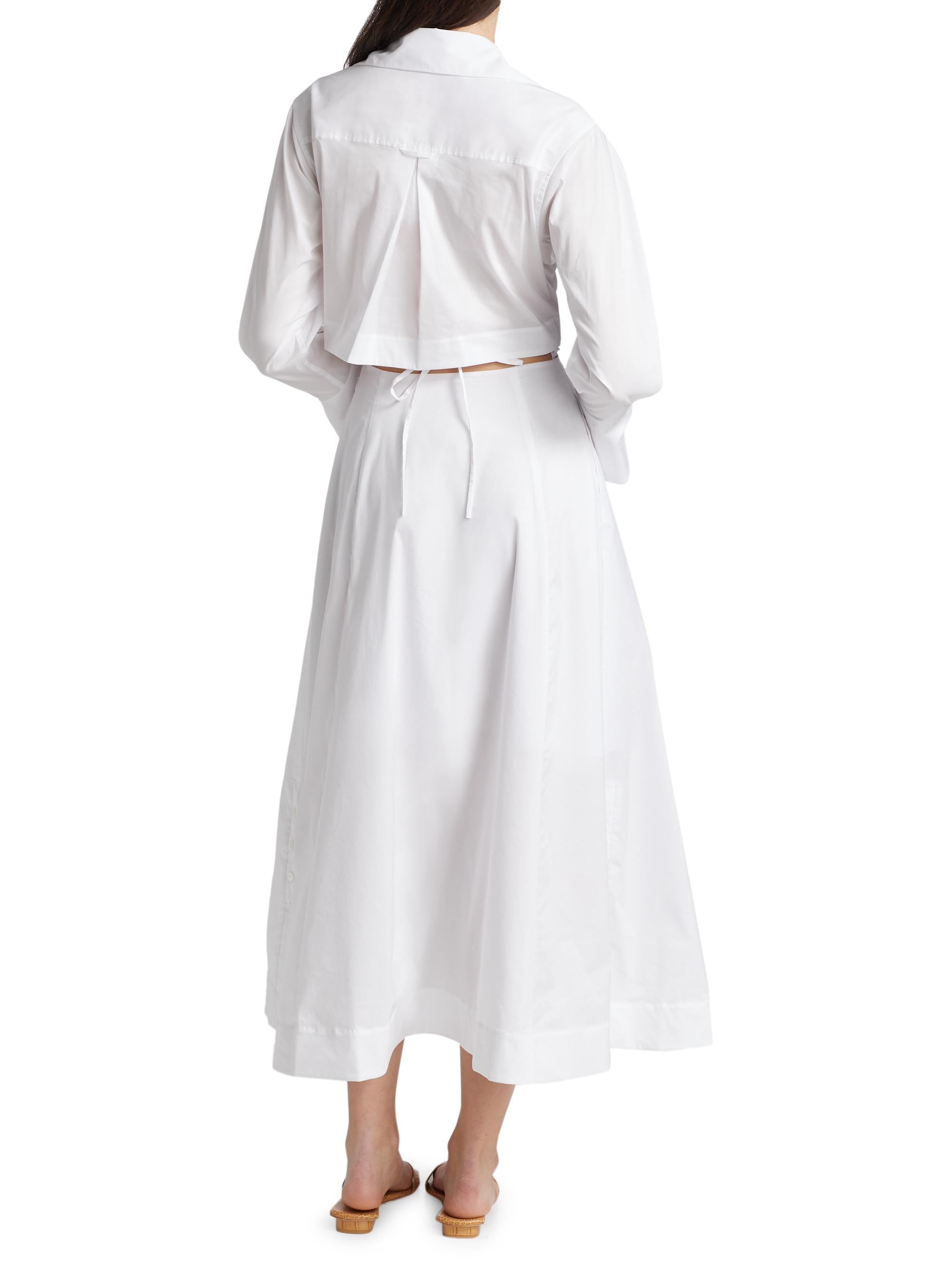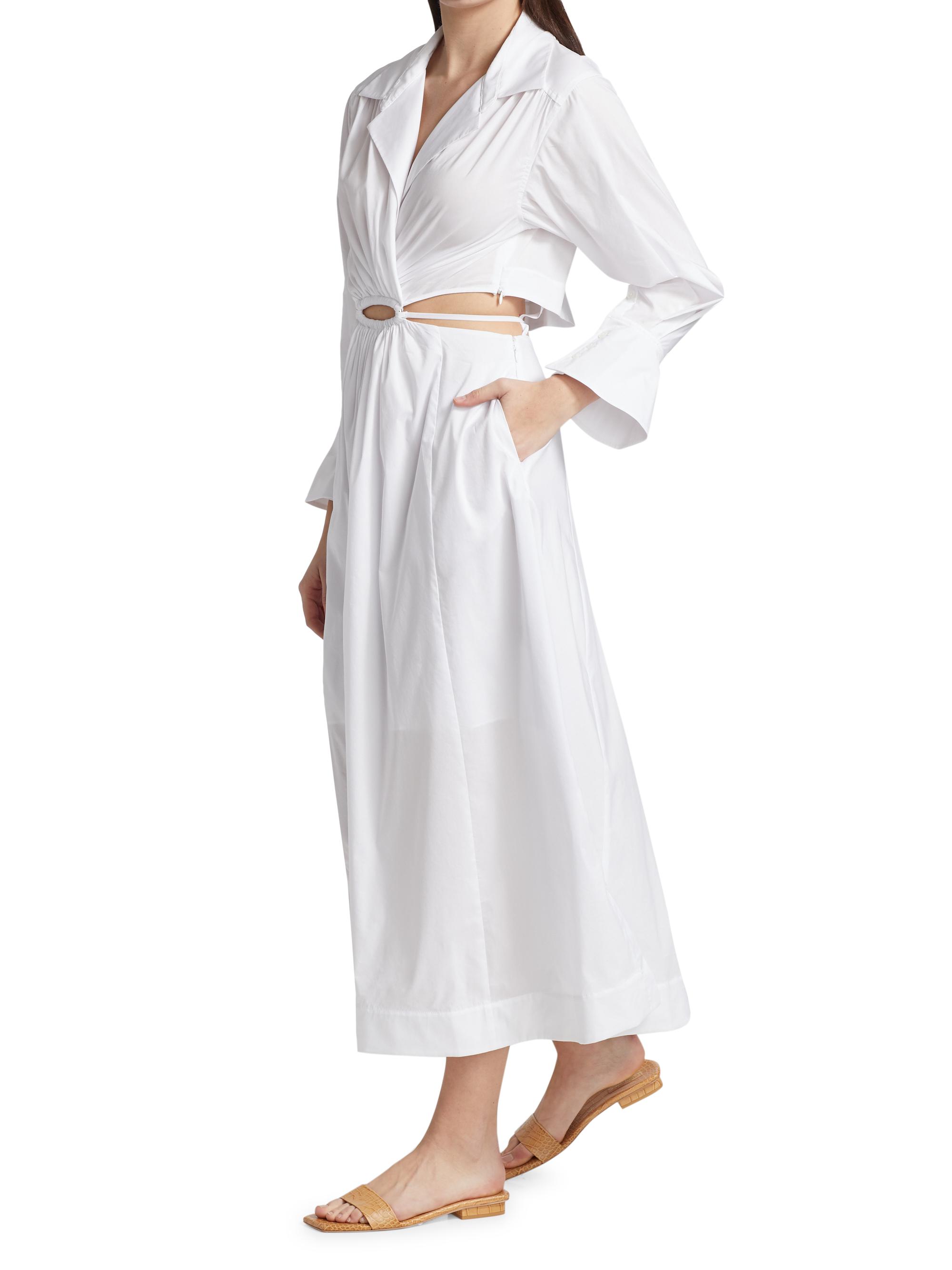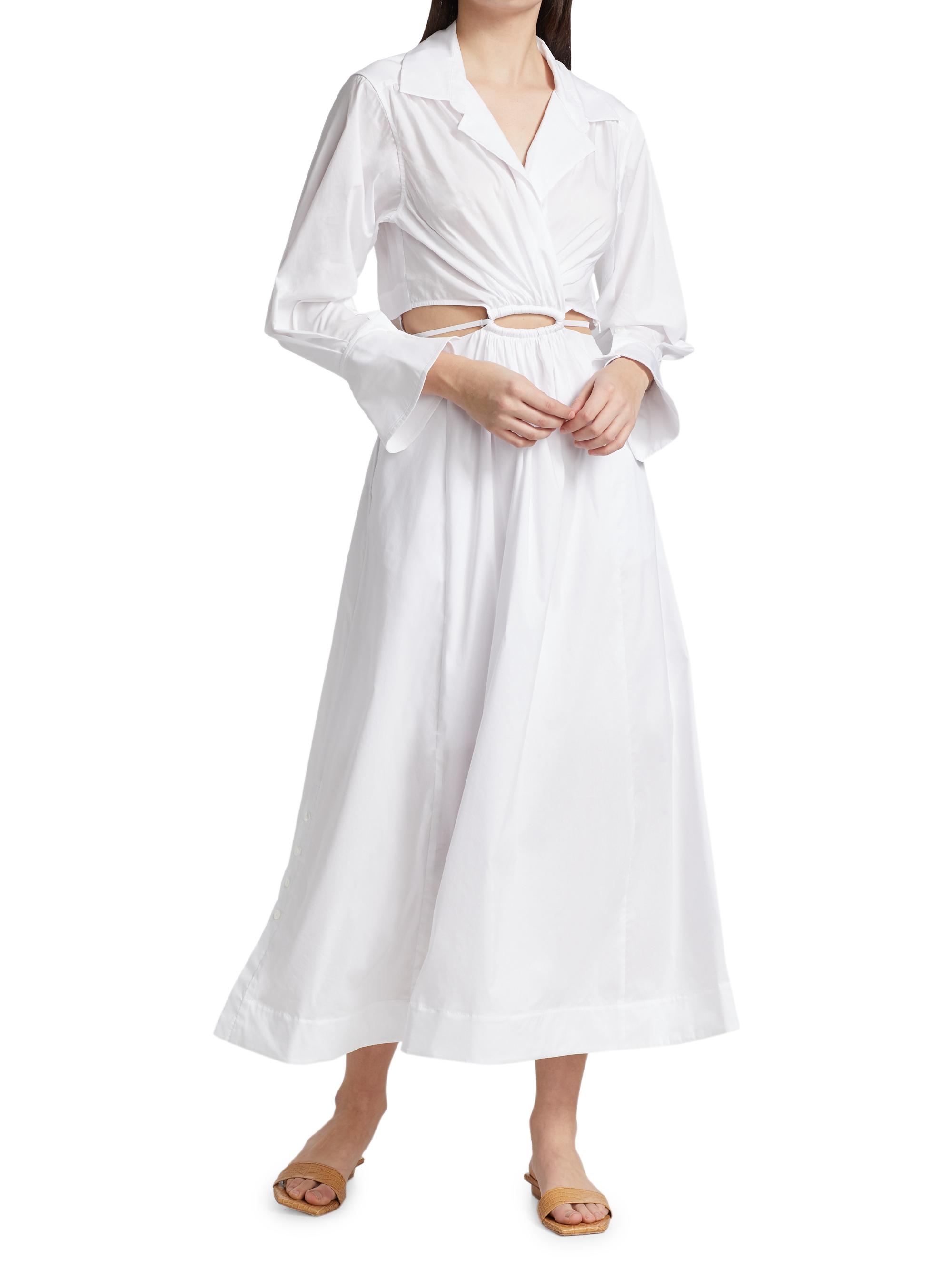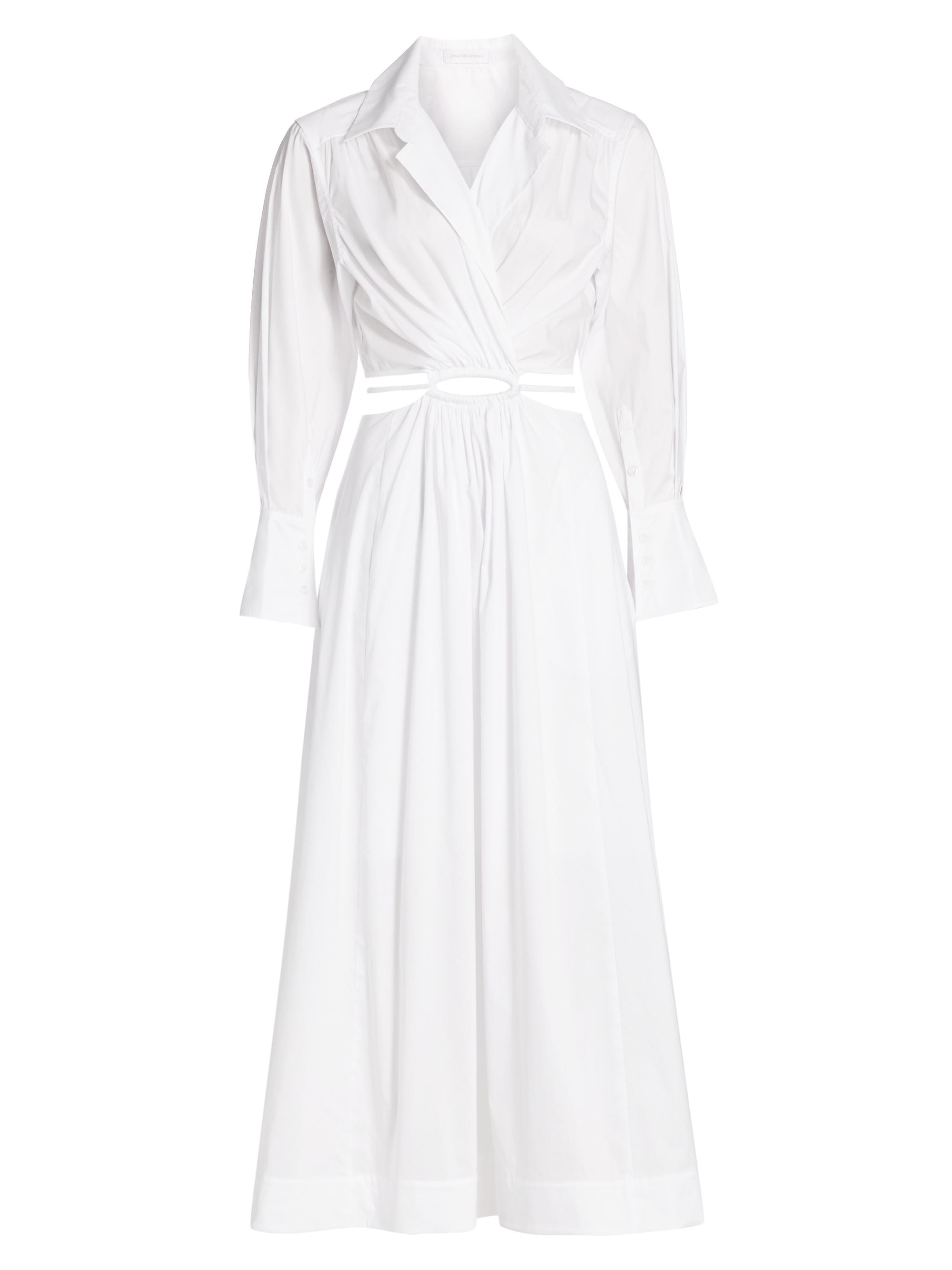 SIMKHAI Alex Pleated Poplin Cut-Out Maxi Shirtdress WHITE