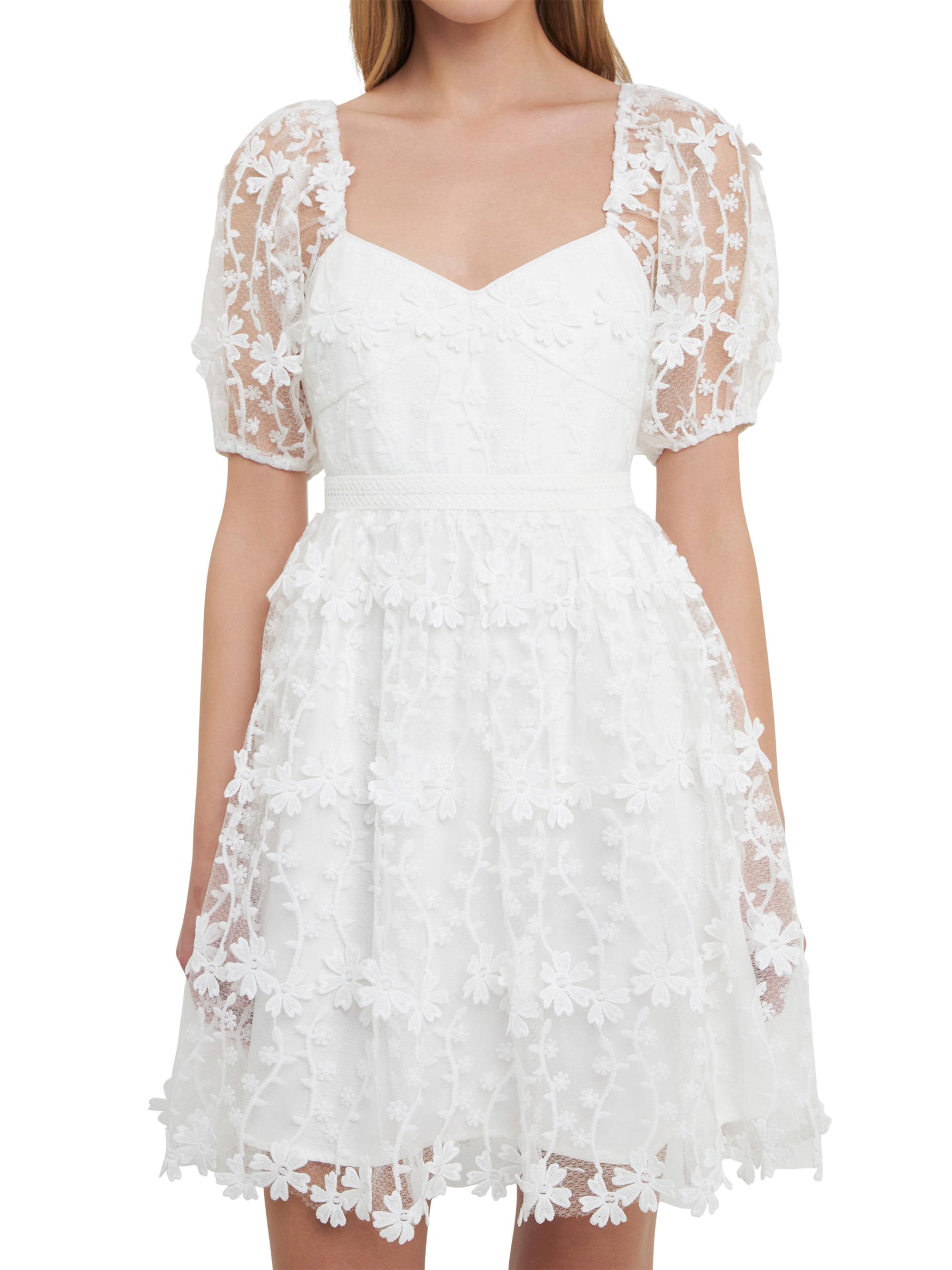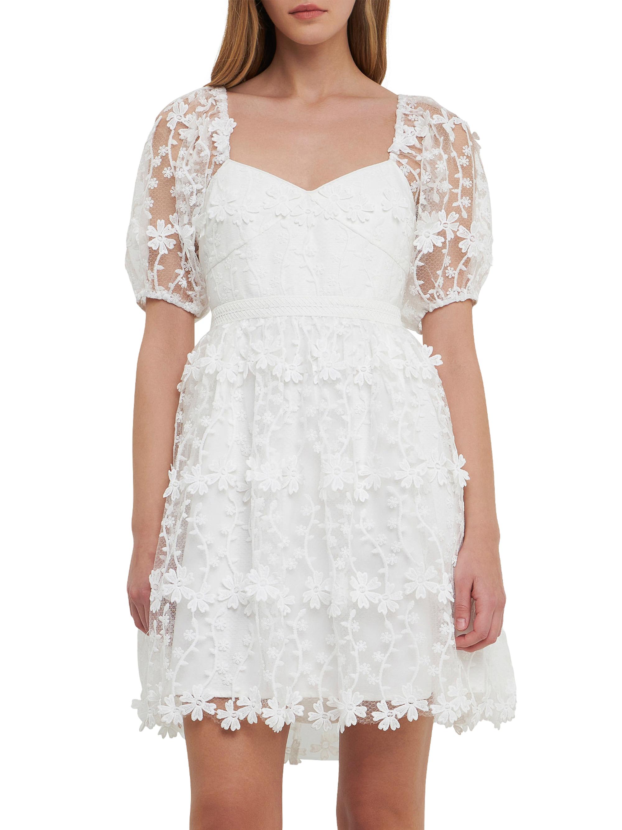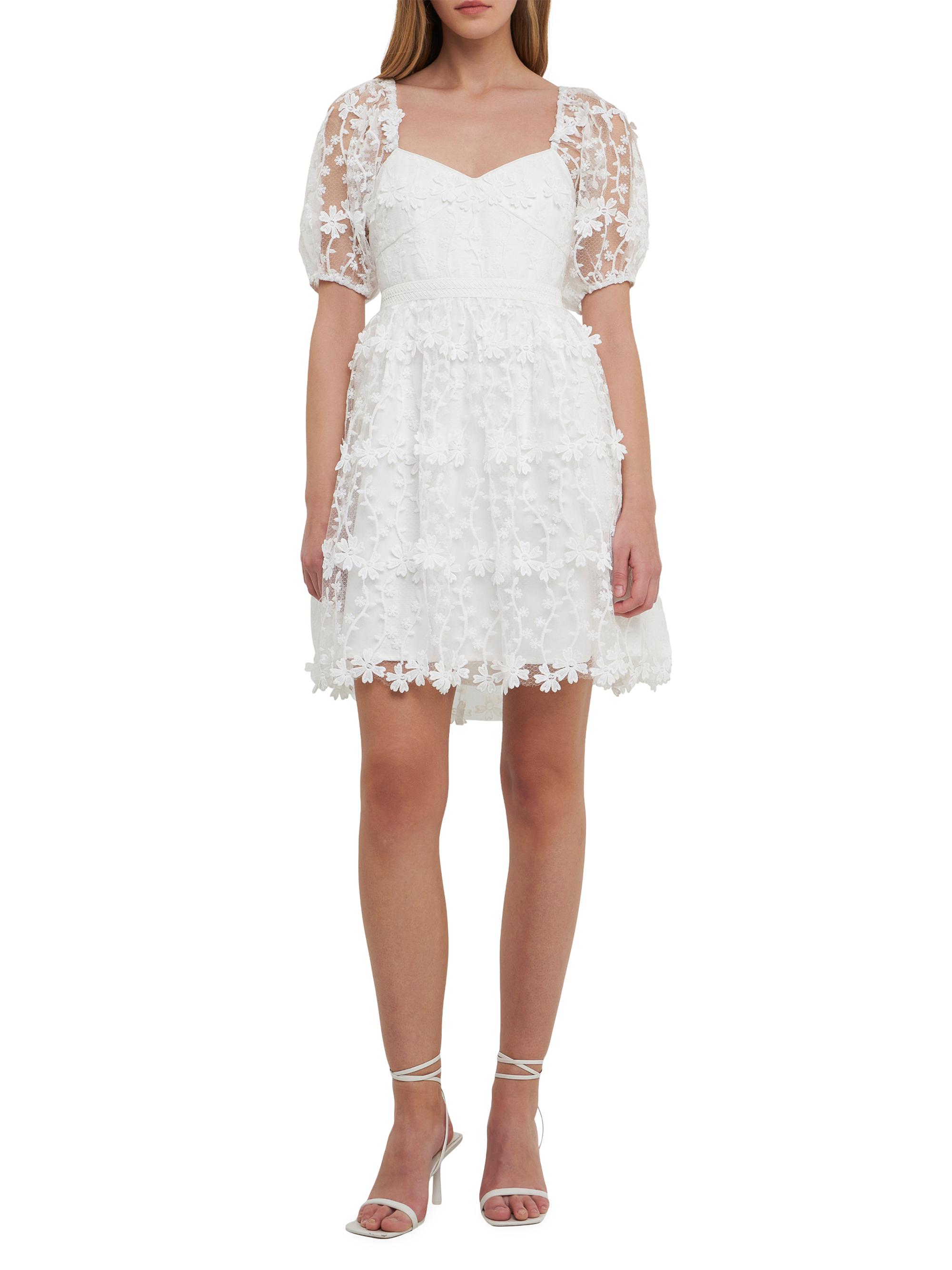 Endless Rose Crochet Lace Bustier Puff Mini Dress