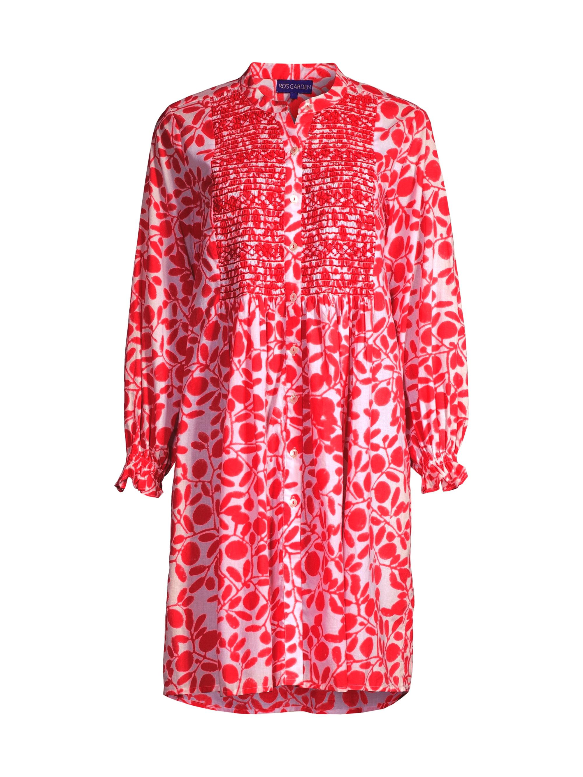 Ro s Garden Talia Smocked Long-Sleeve Cotton Dress