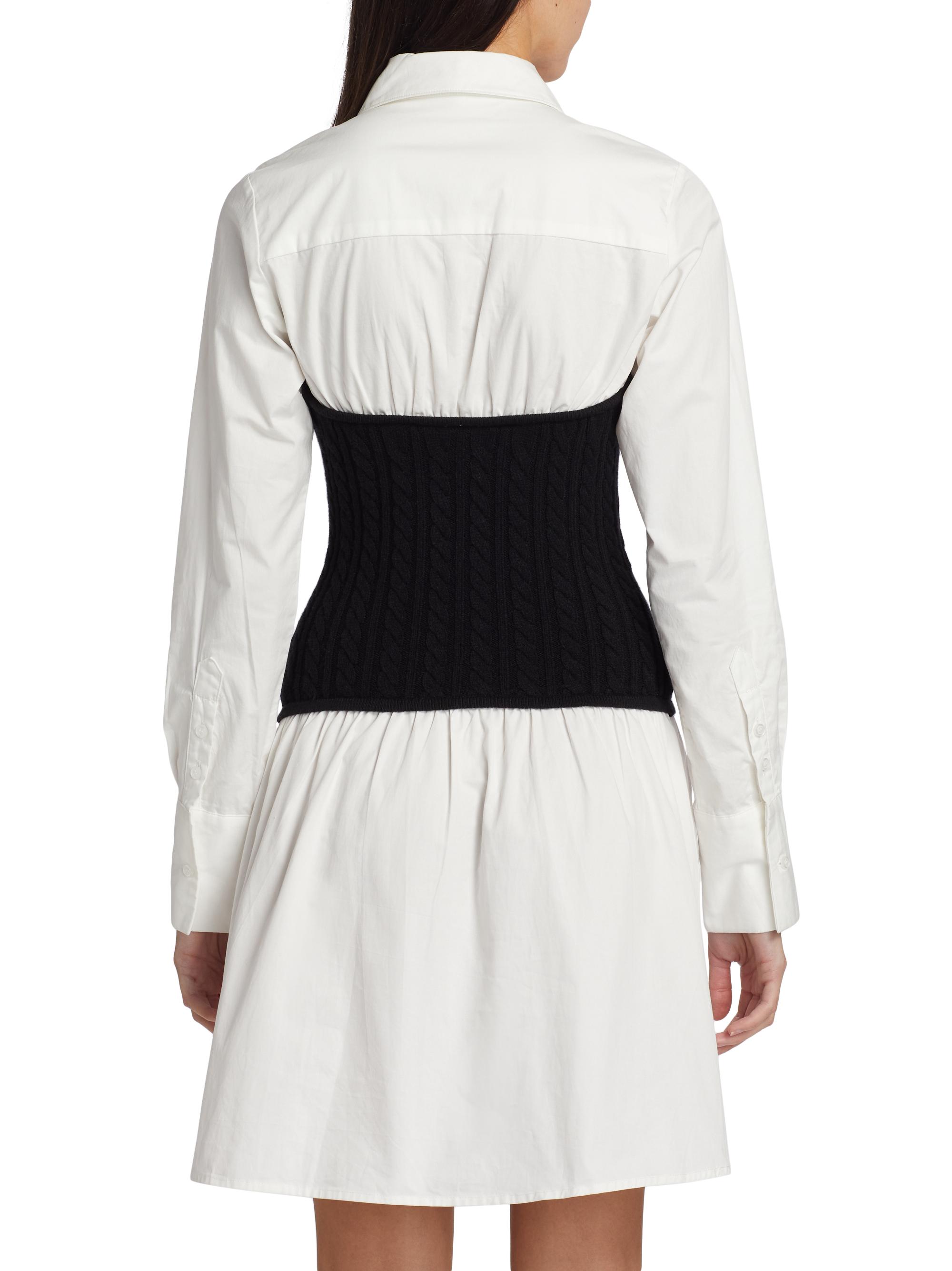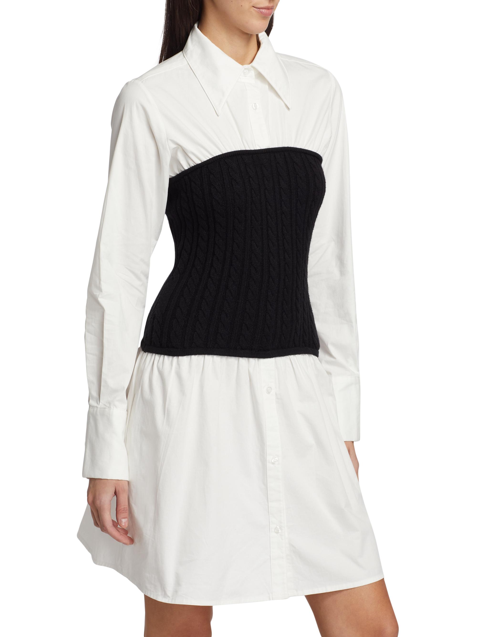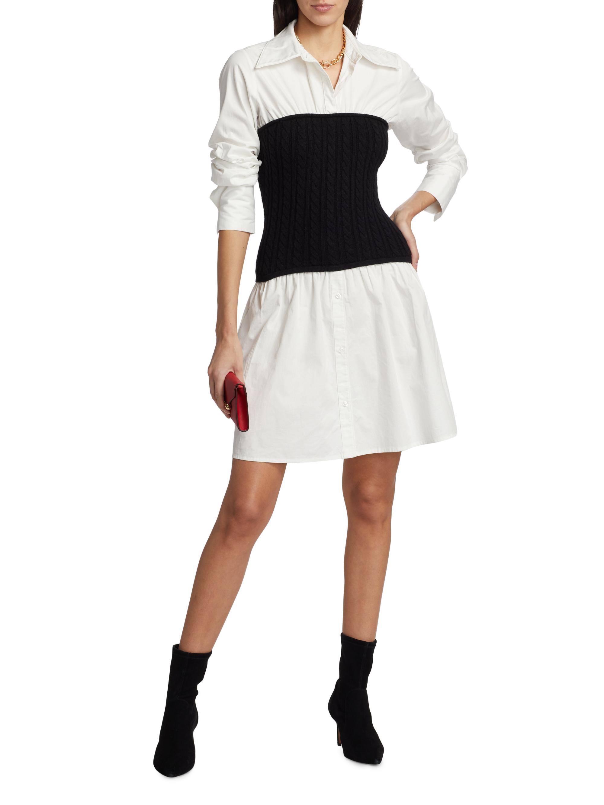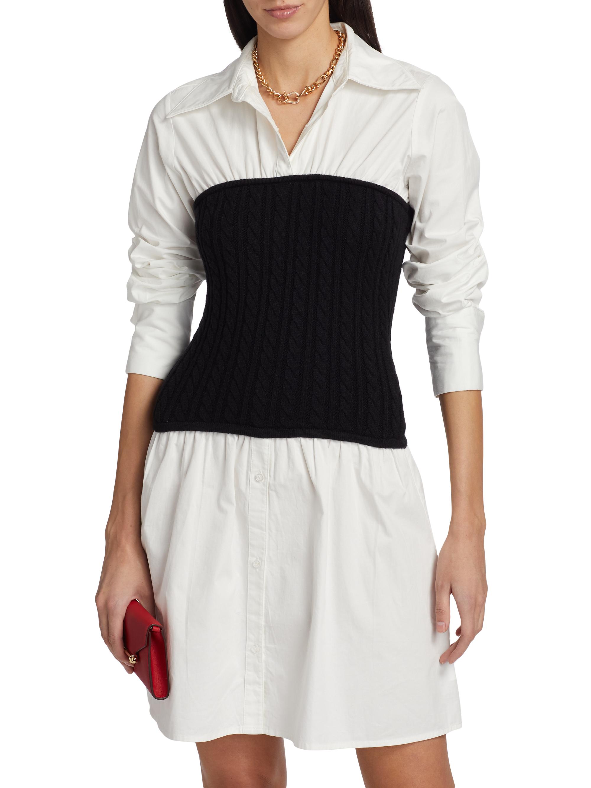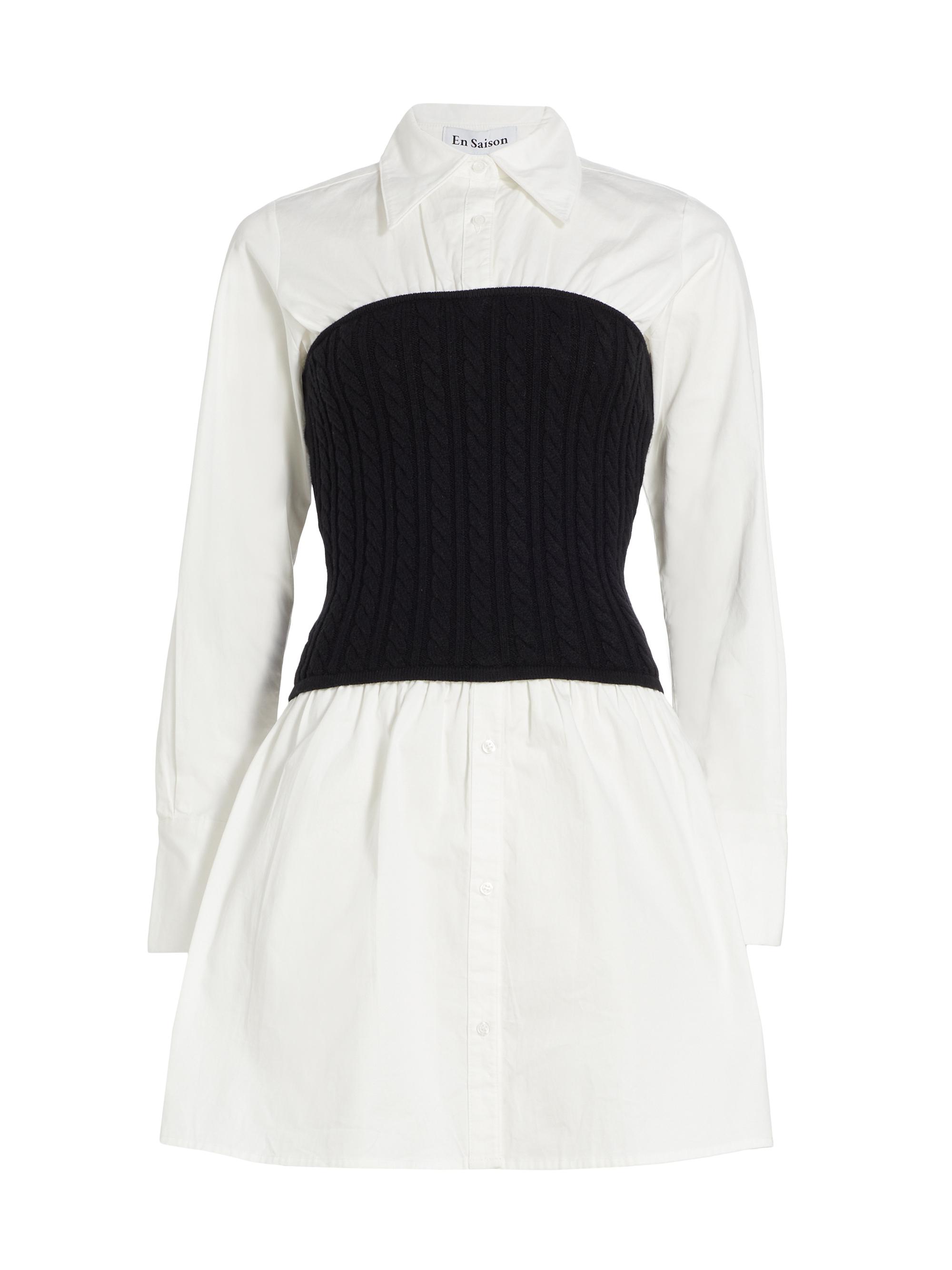En Saison Waverly Cotton & Cable-Knit Shirtdress IVORY BLACK