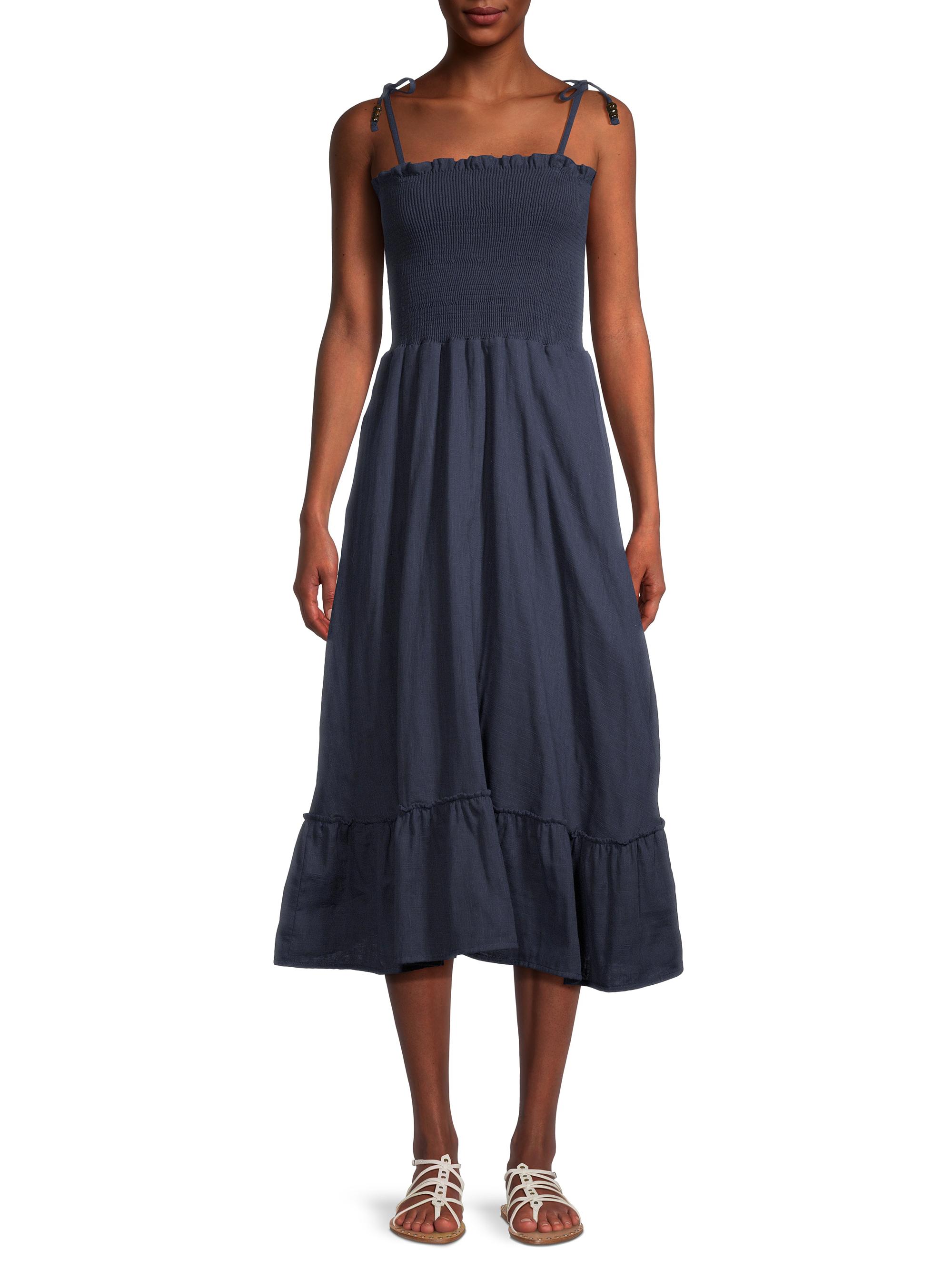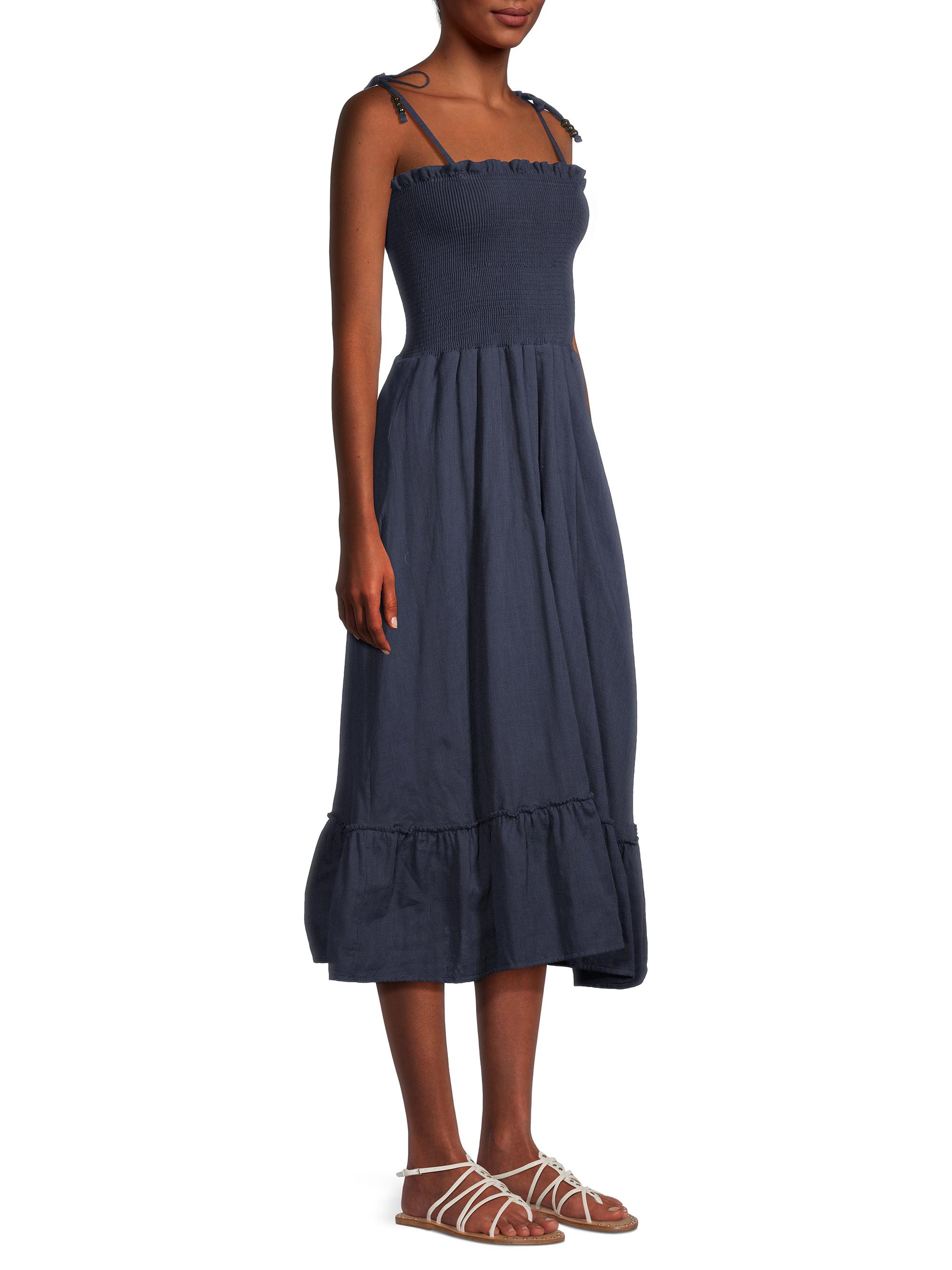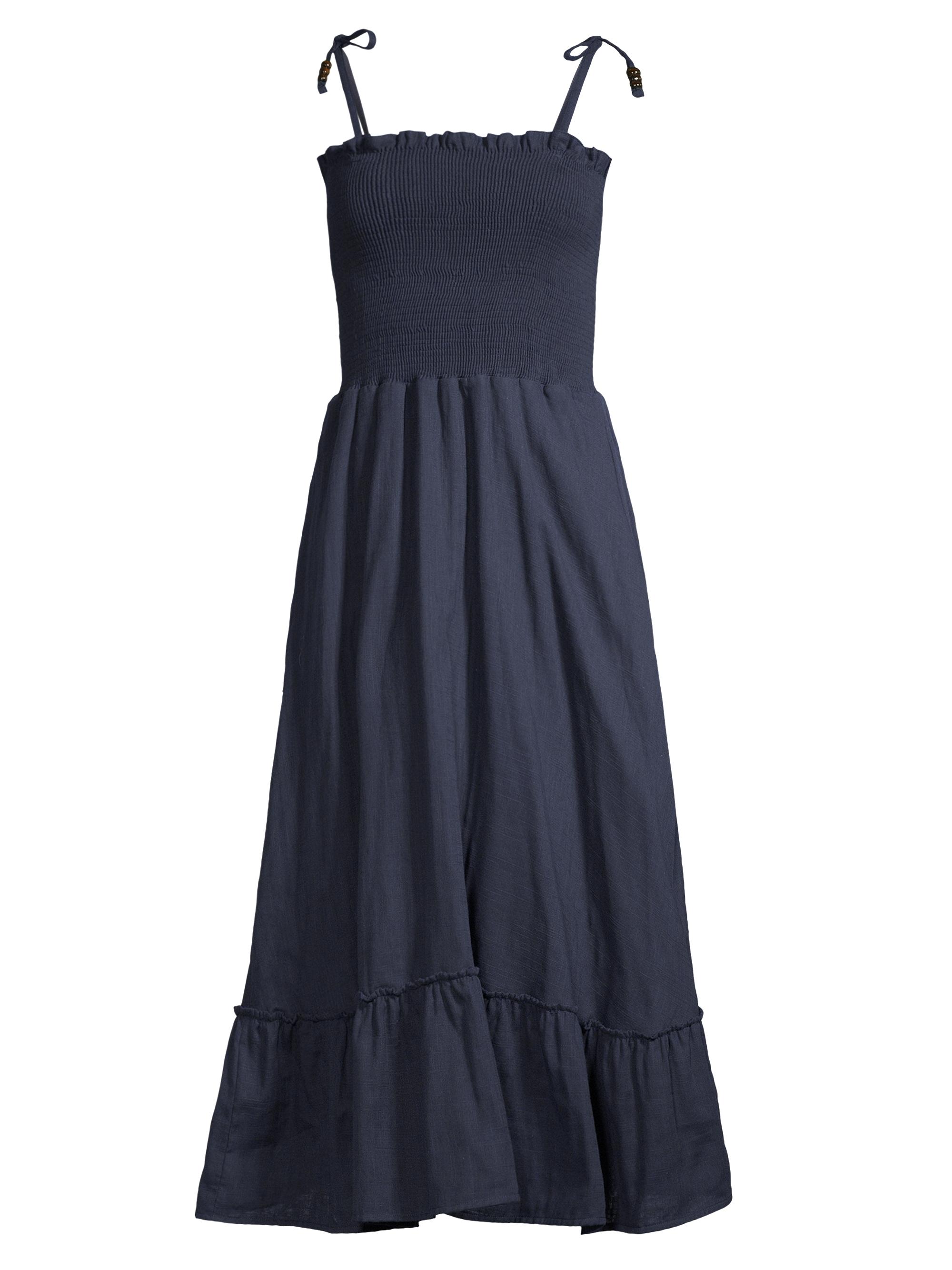 Peixoto Eddie Smocked Cotton Midi-Dress BLUE TRIBECA
