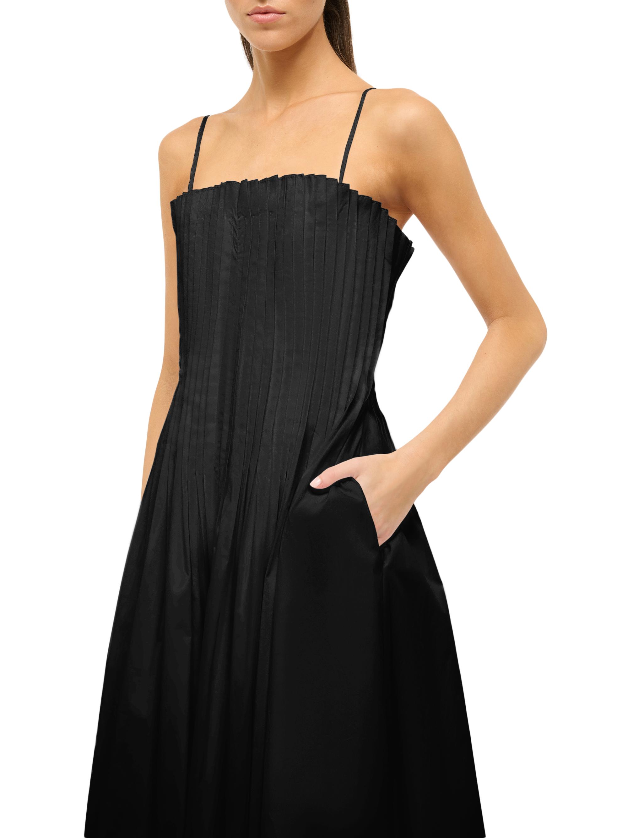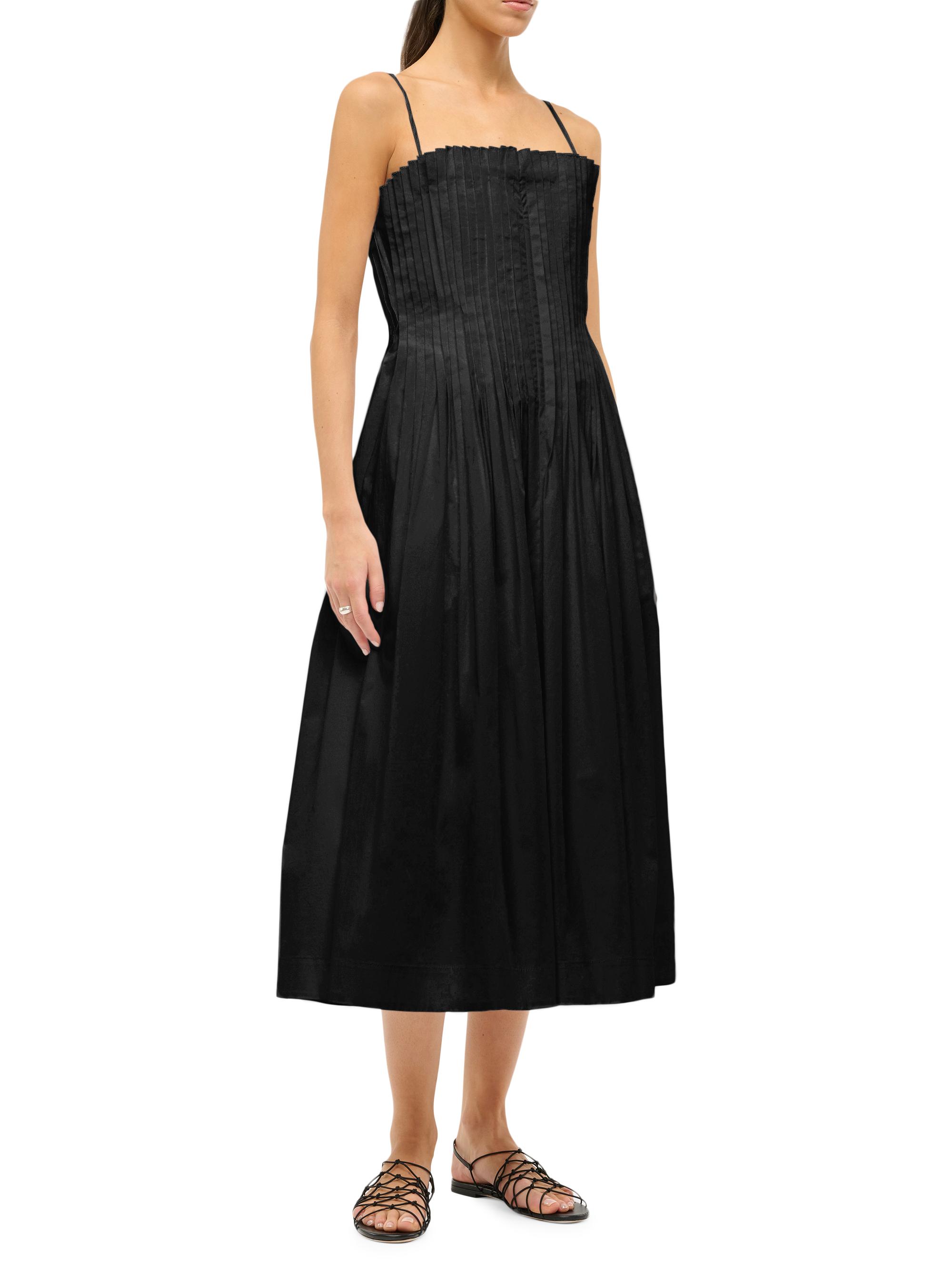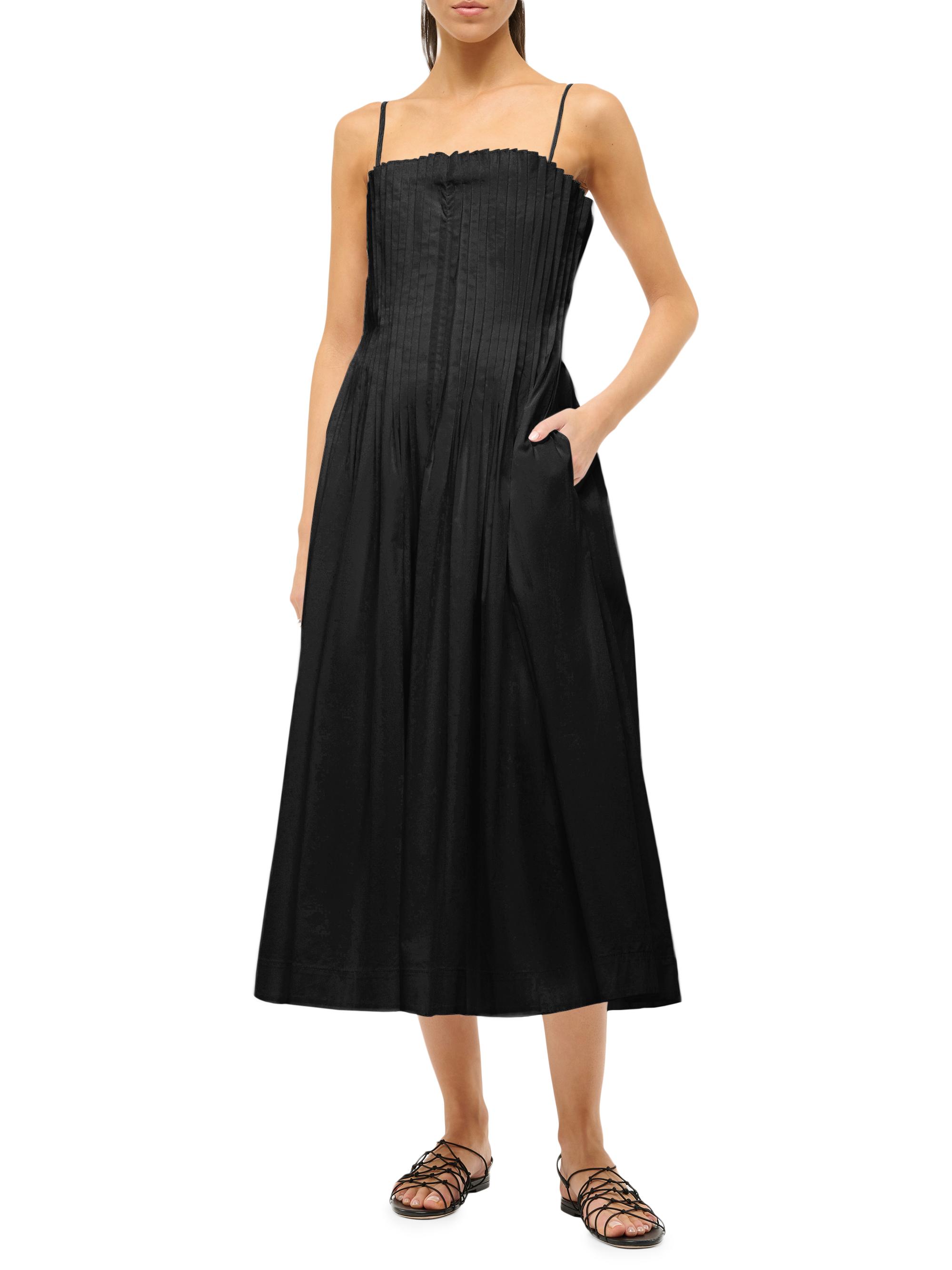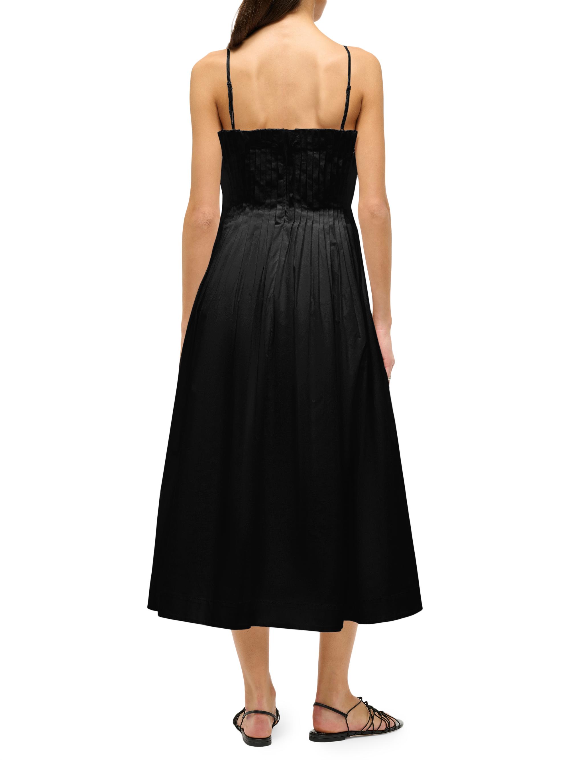 Staud Bella Pleated Cotton-Blend Sleeveless Midi-Dress BLACK