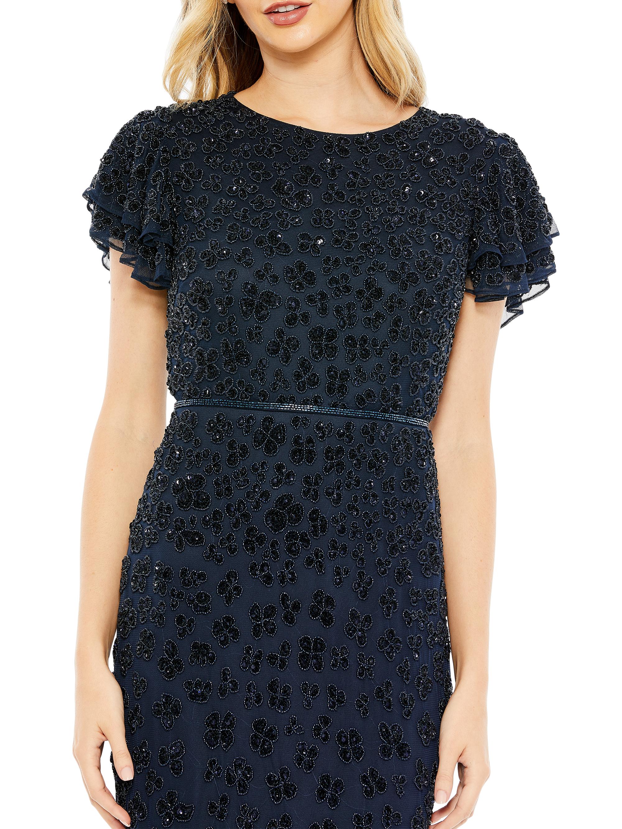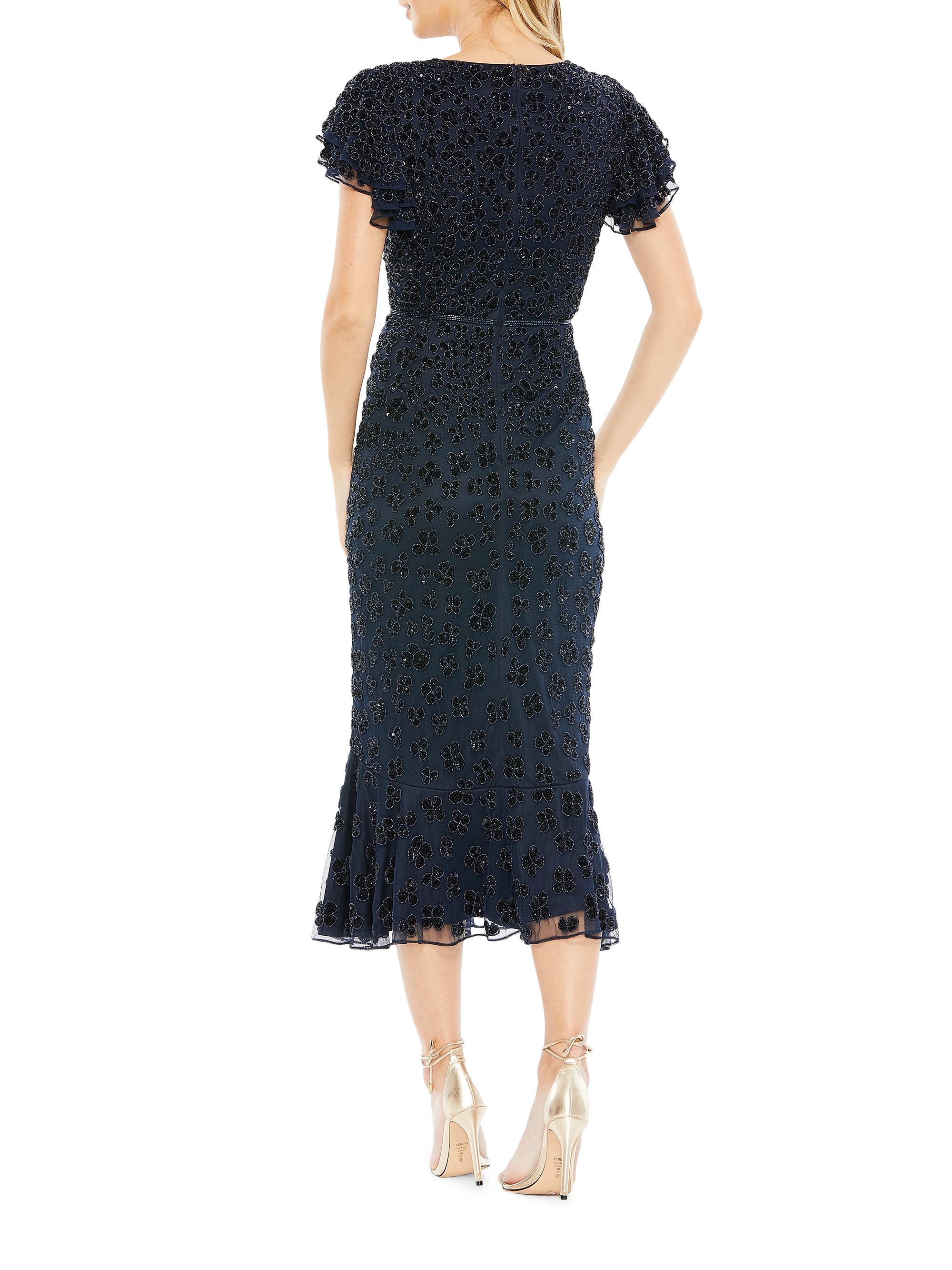 Mac Duggal Flutter Sleeve Beaded Midi Dress MIDNIGHT