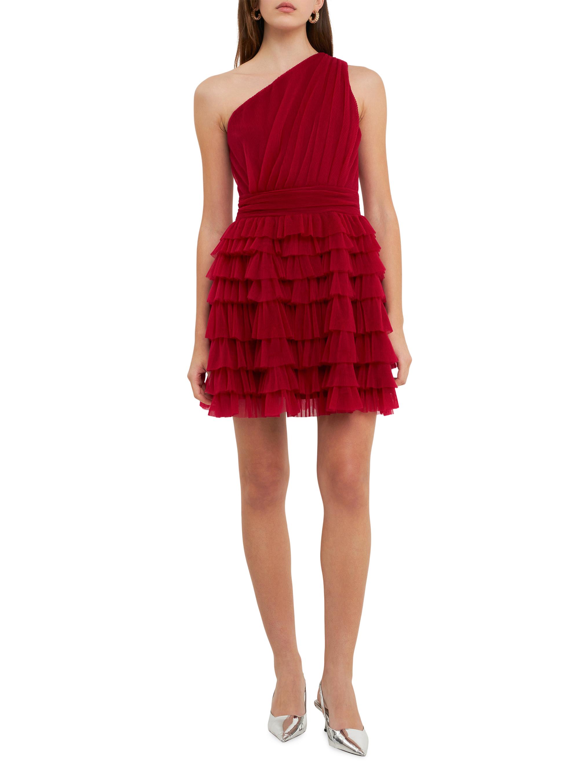 Endless Rose Tiered Tulle Mini Dress CHERRY