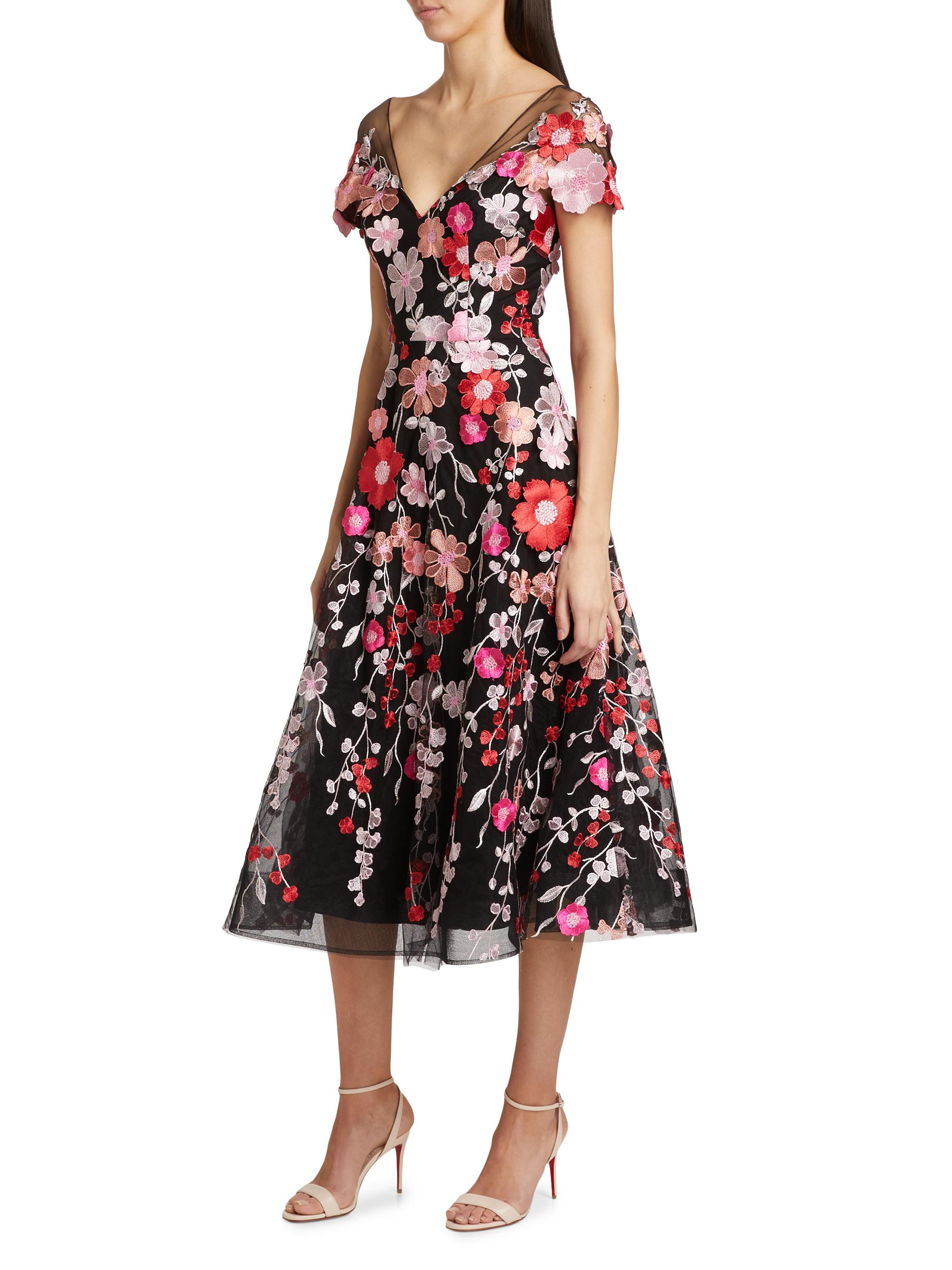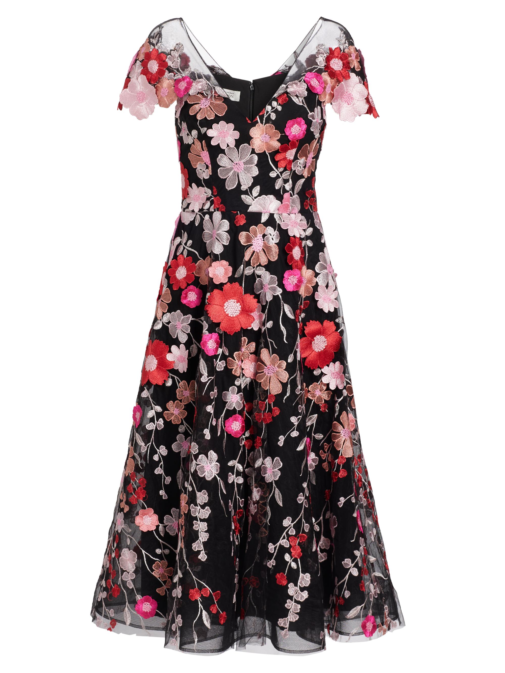 Teri Jon by Rickie Freeman Embroidered Flower Cocktail Dress