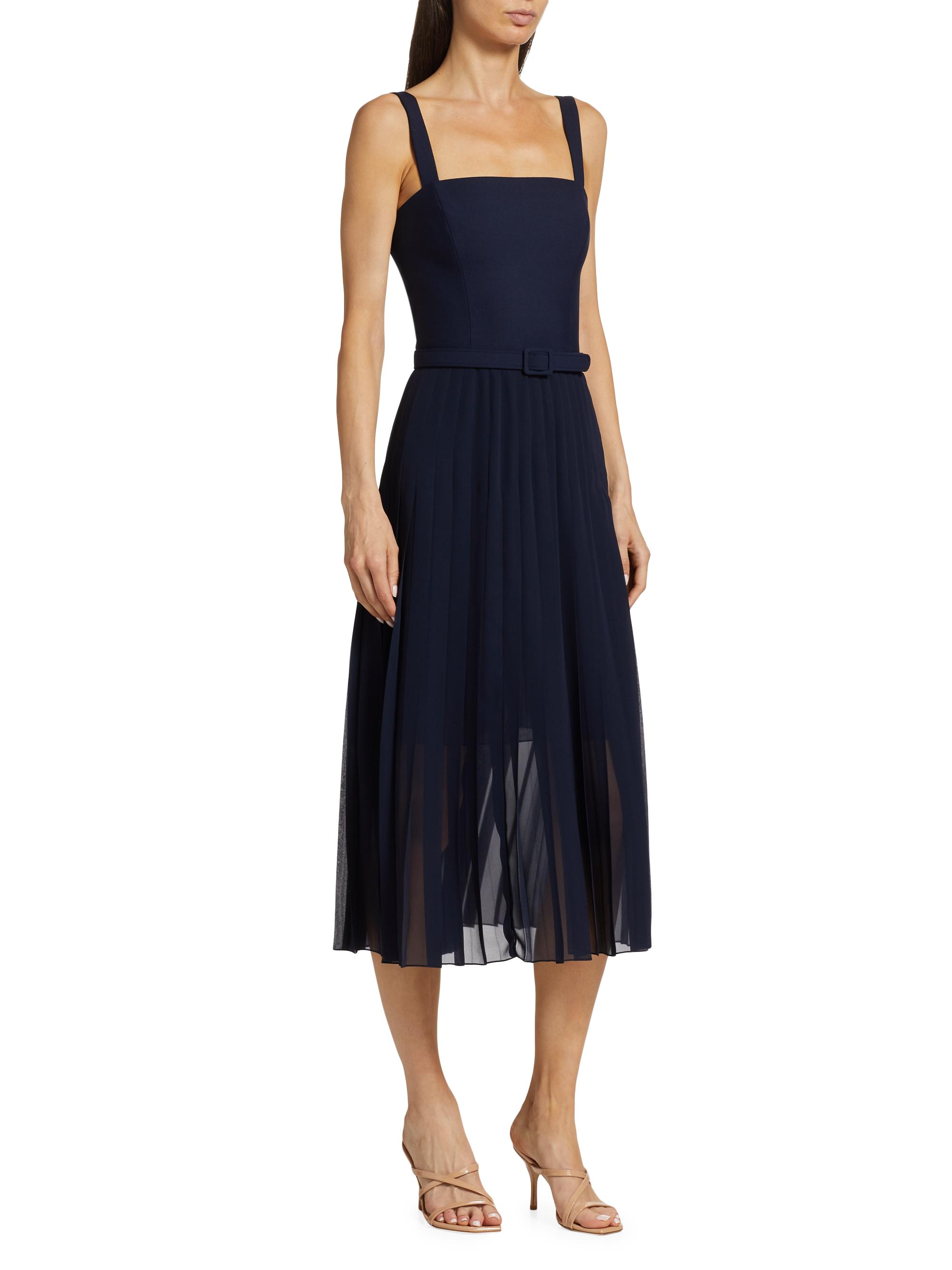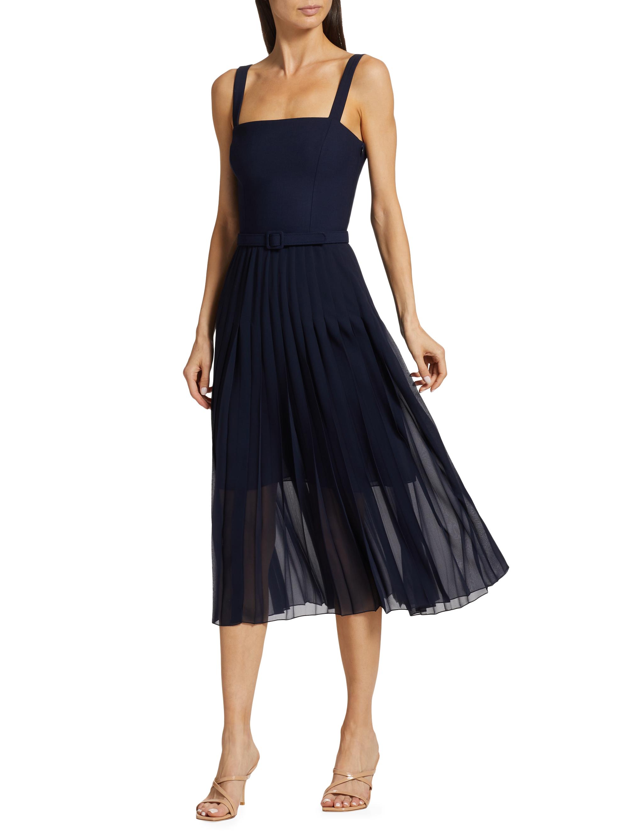 Oscar de la Renta Wool Inset Chiffon Midi-Dress