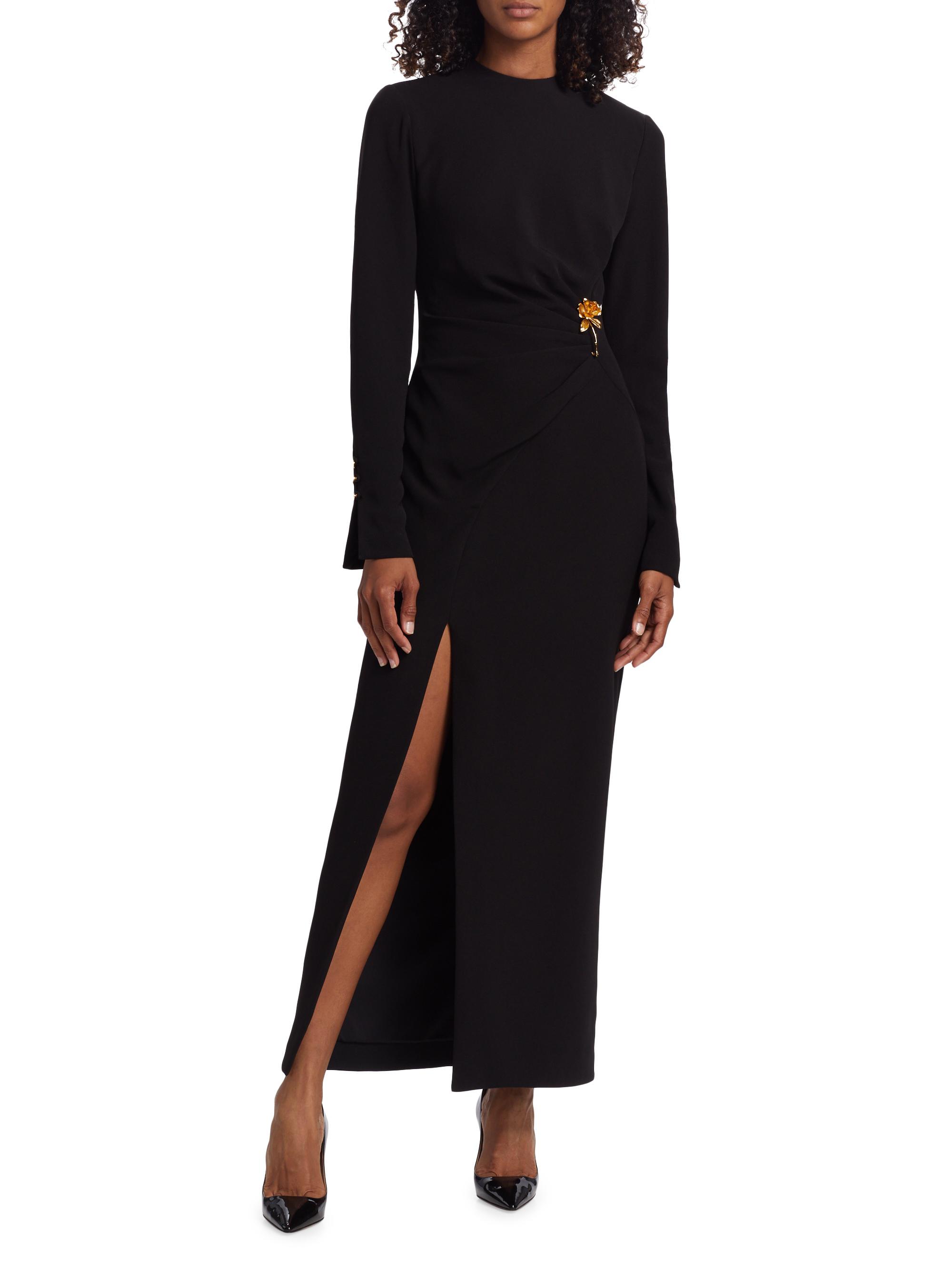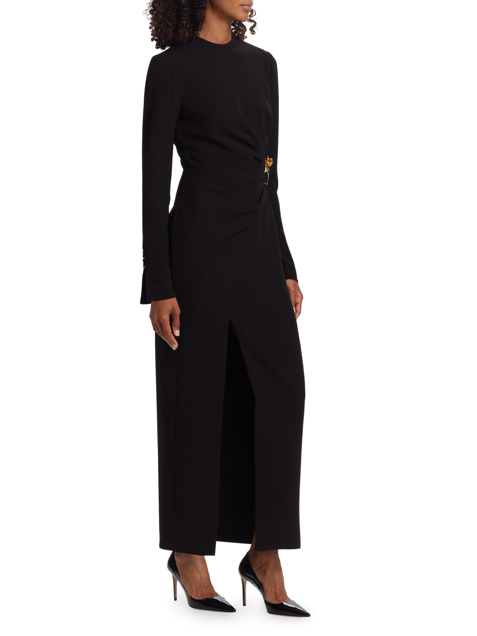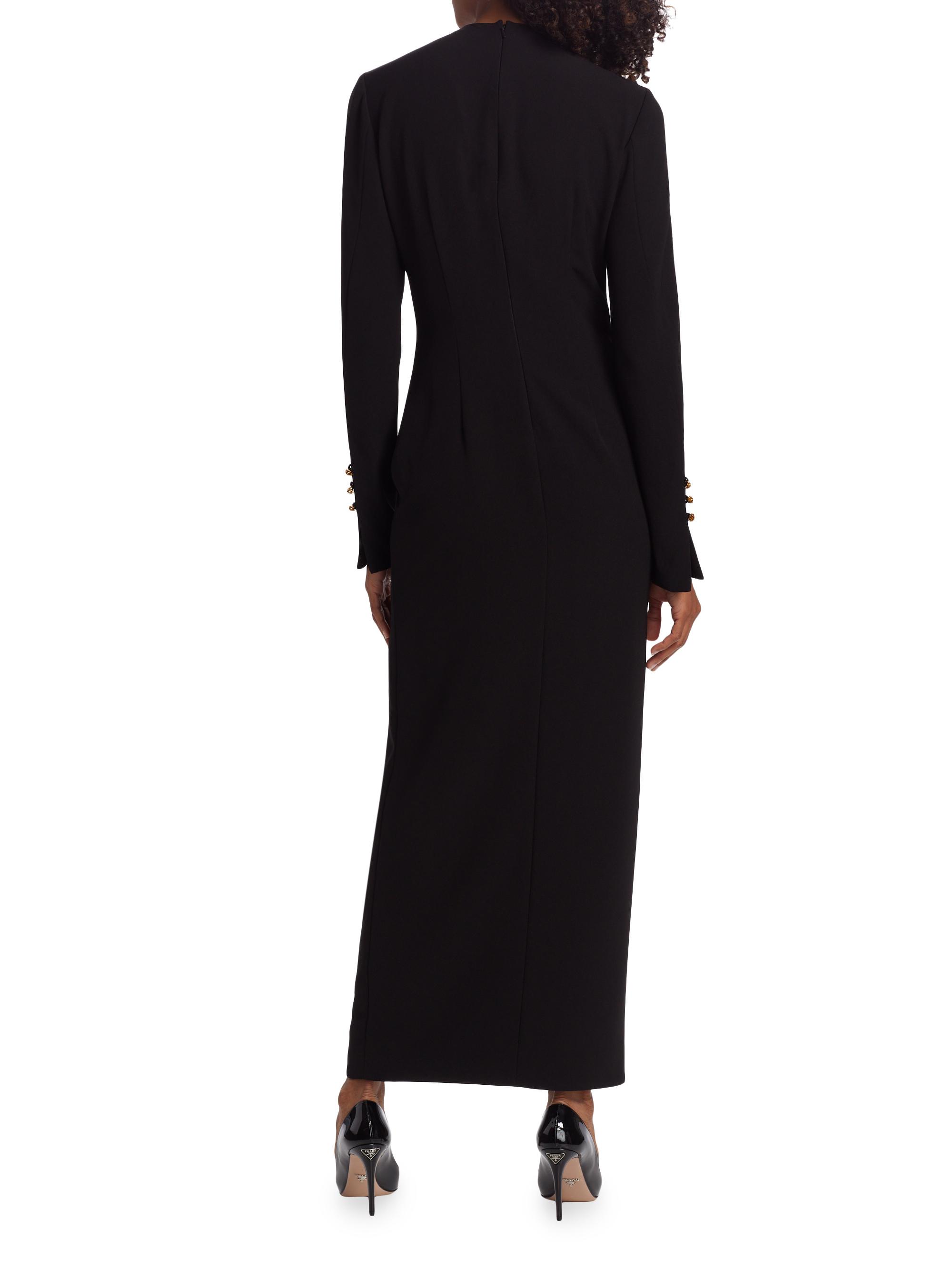 Lela Rose Long-Sleeve Draped Sheath Maxi Dress