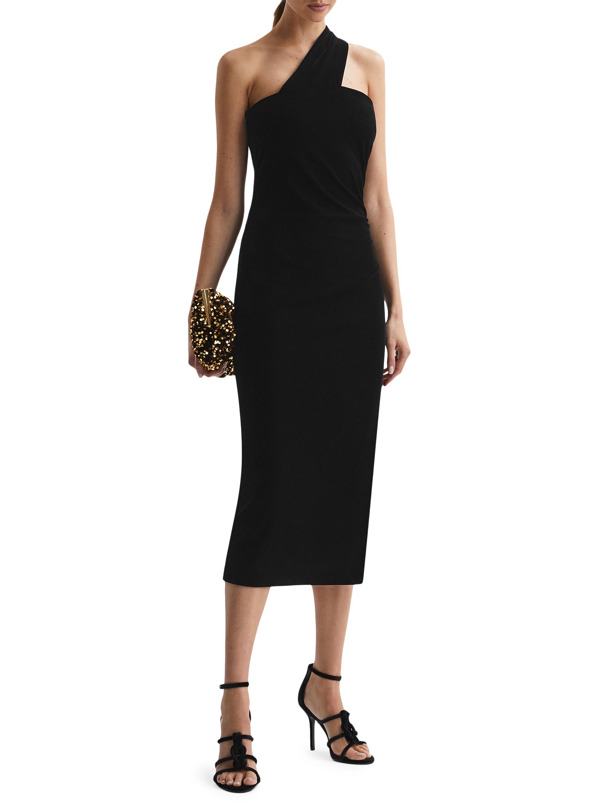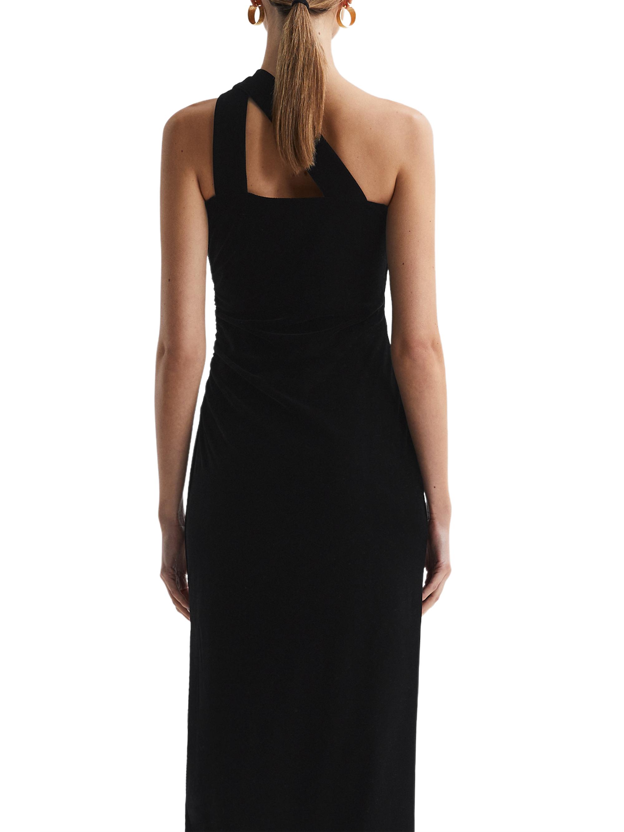 Reiss Abbey Velvet One-Shoulder Midi-Dress