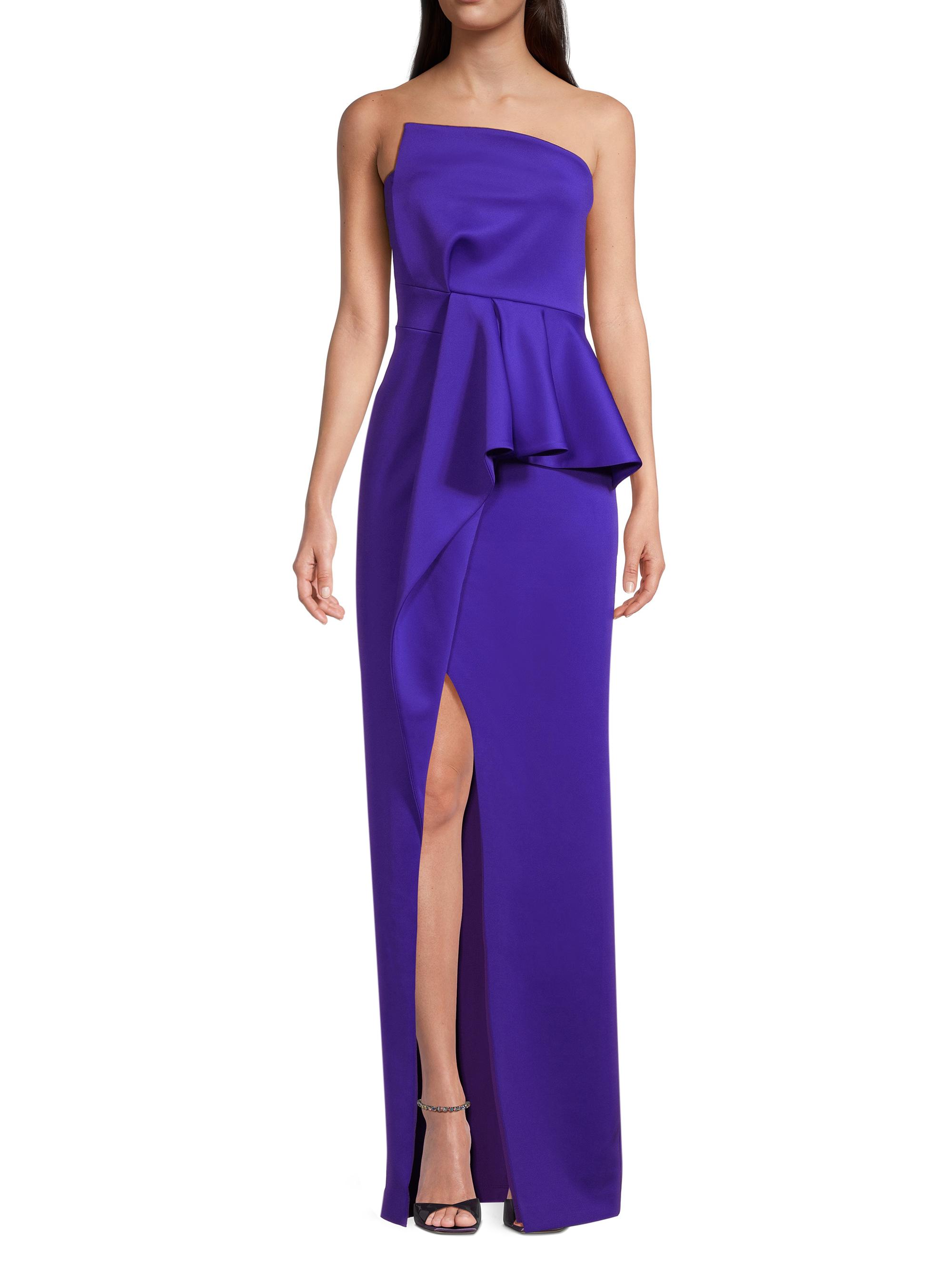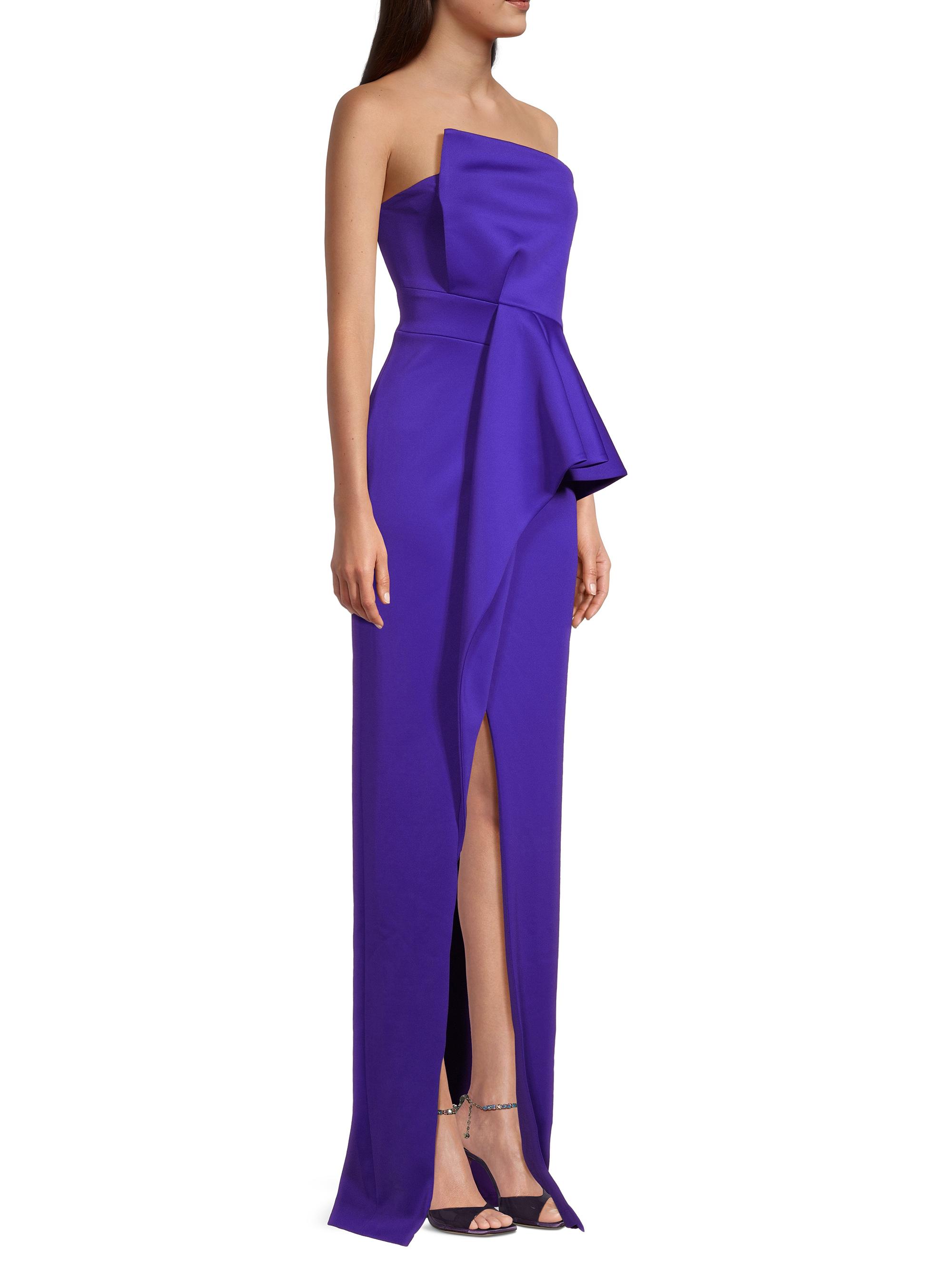 Black Halo Jonas Asymmetrical Draped Gown CADBURRY PURPLE