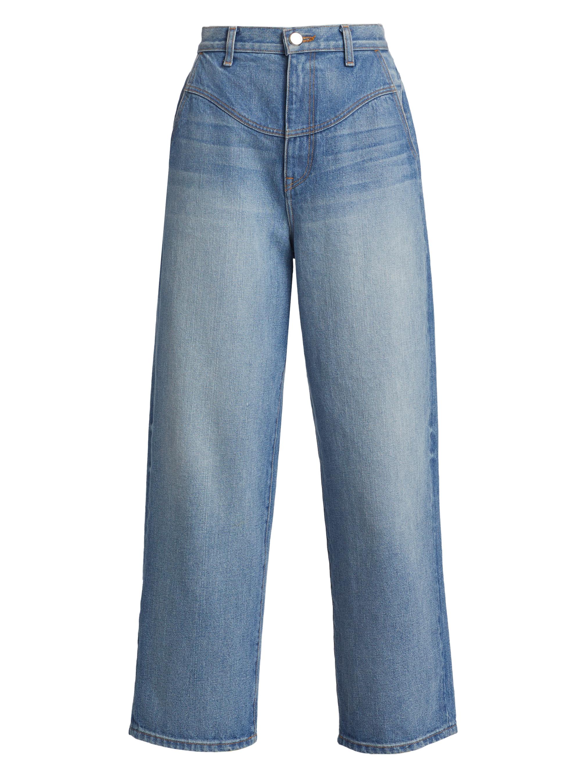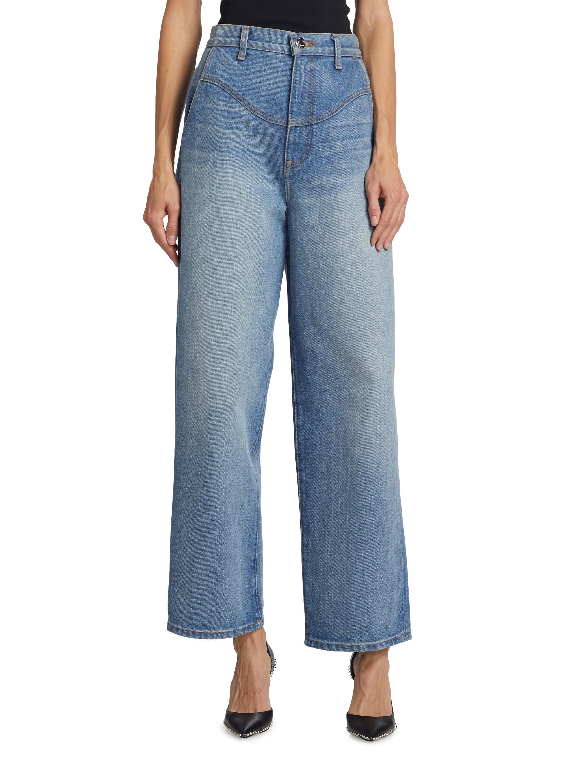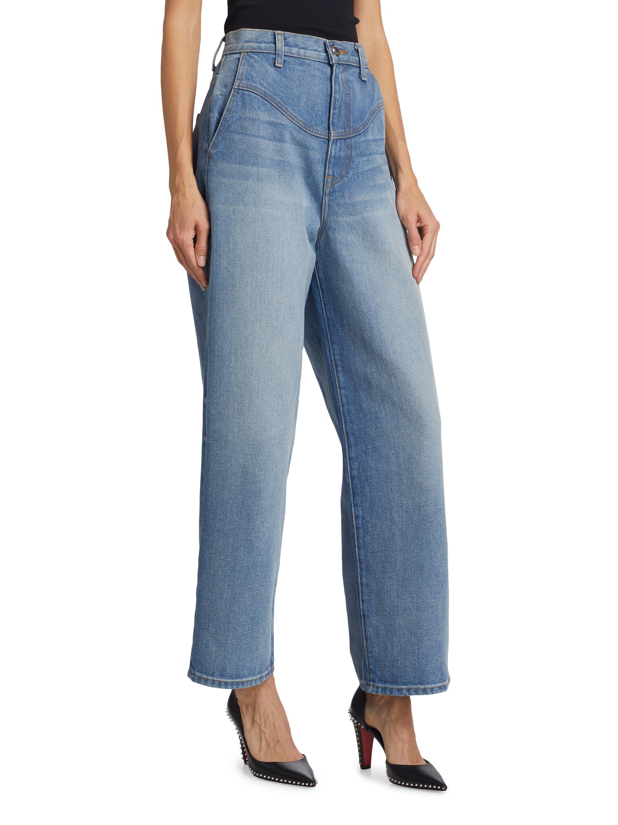 Brandon Maxwell Curved Yoke Barrel-Leg Jeans