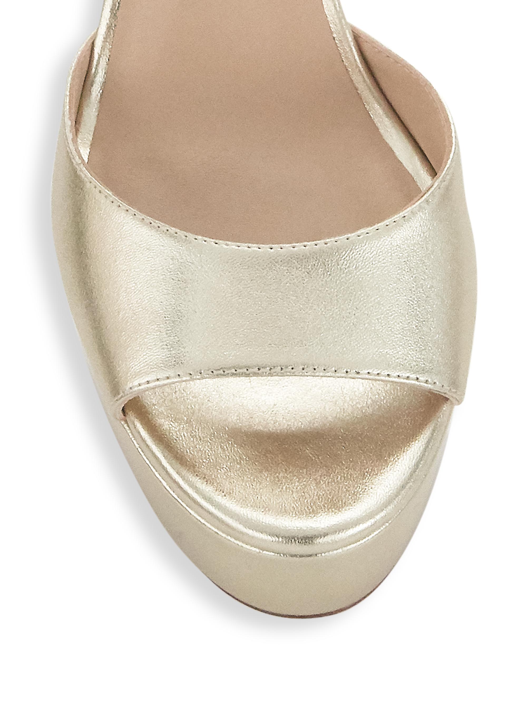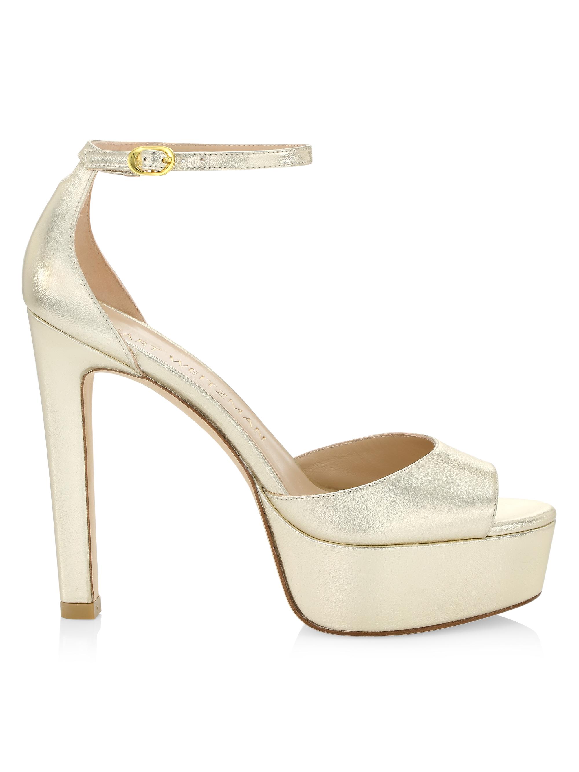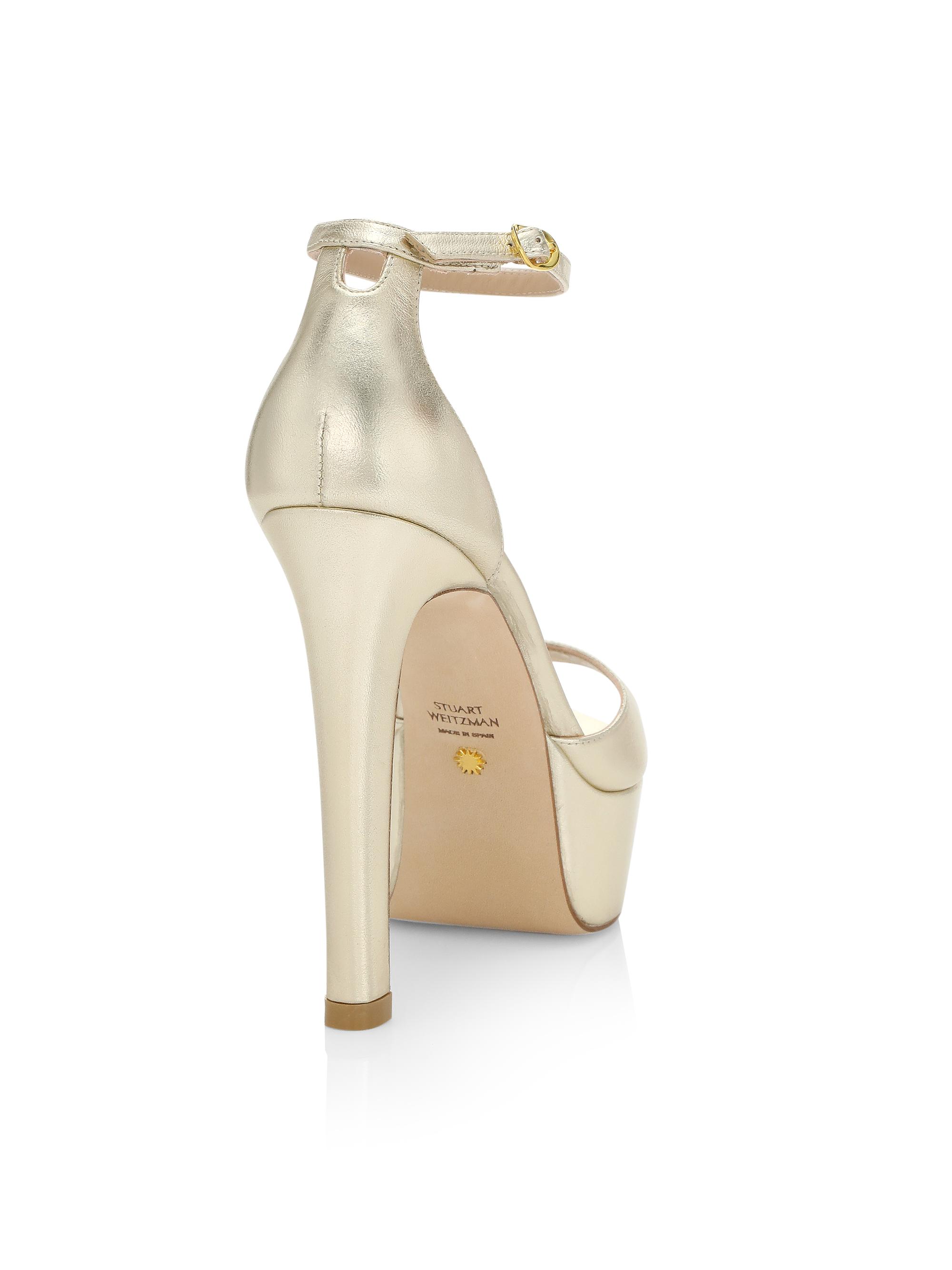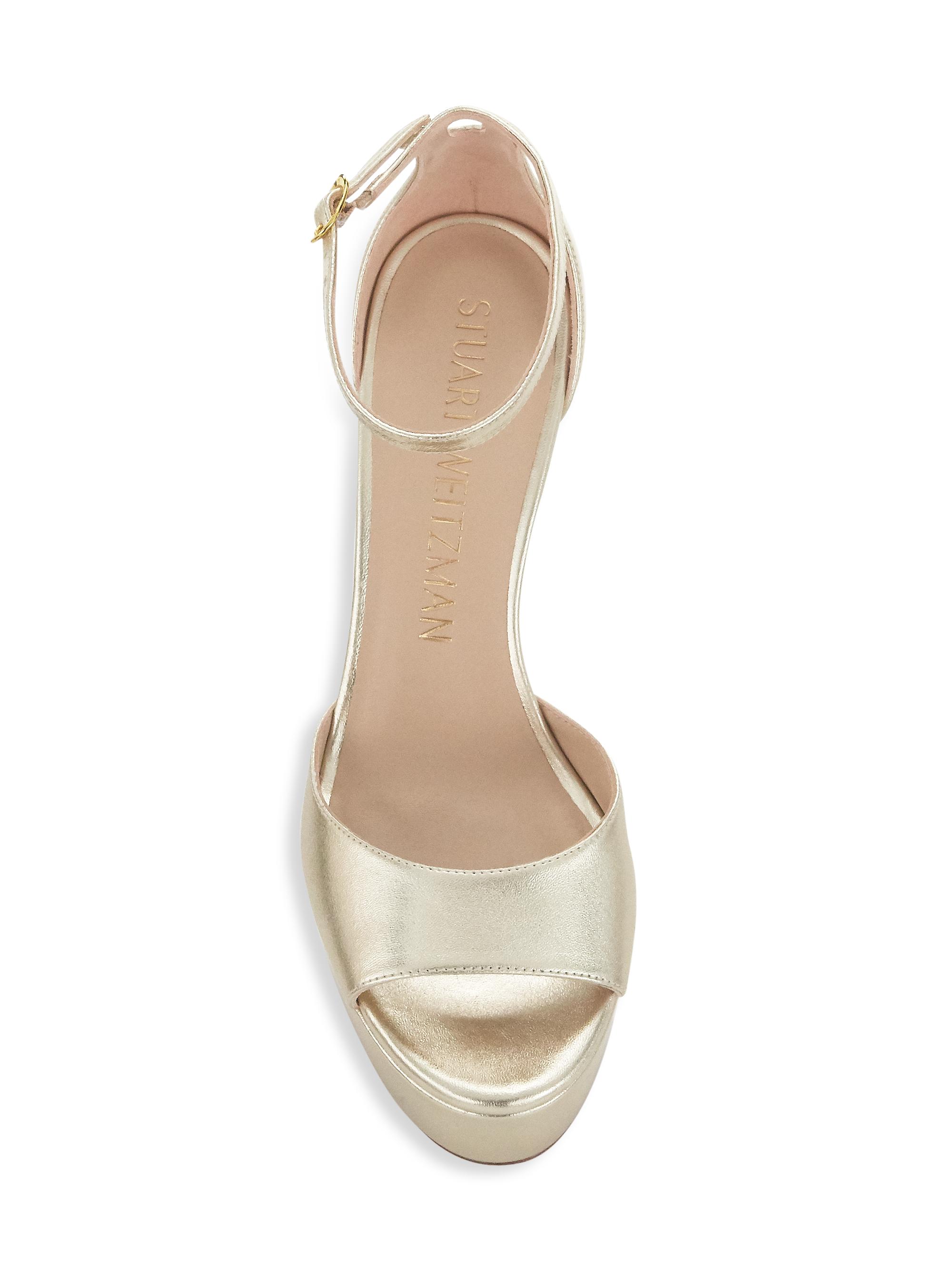 Stuart Weitzman Discoplatform Nudistcurve Metallic Leather Sandals