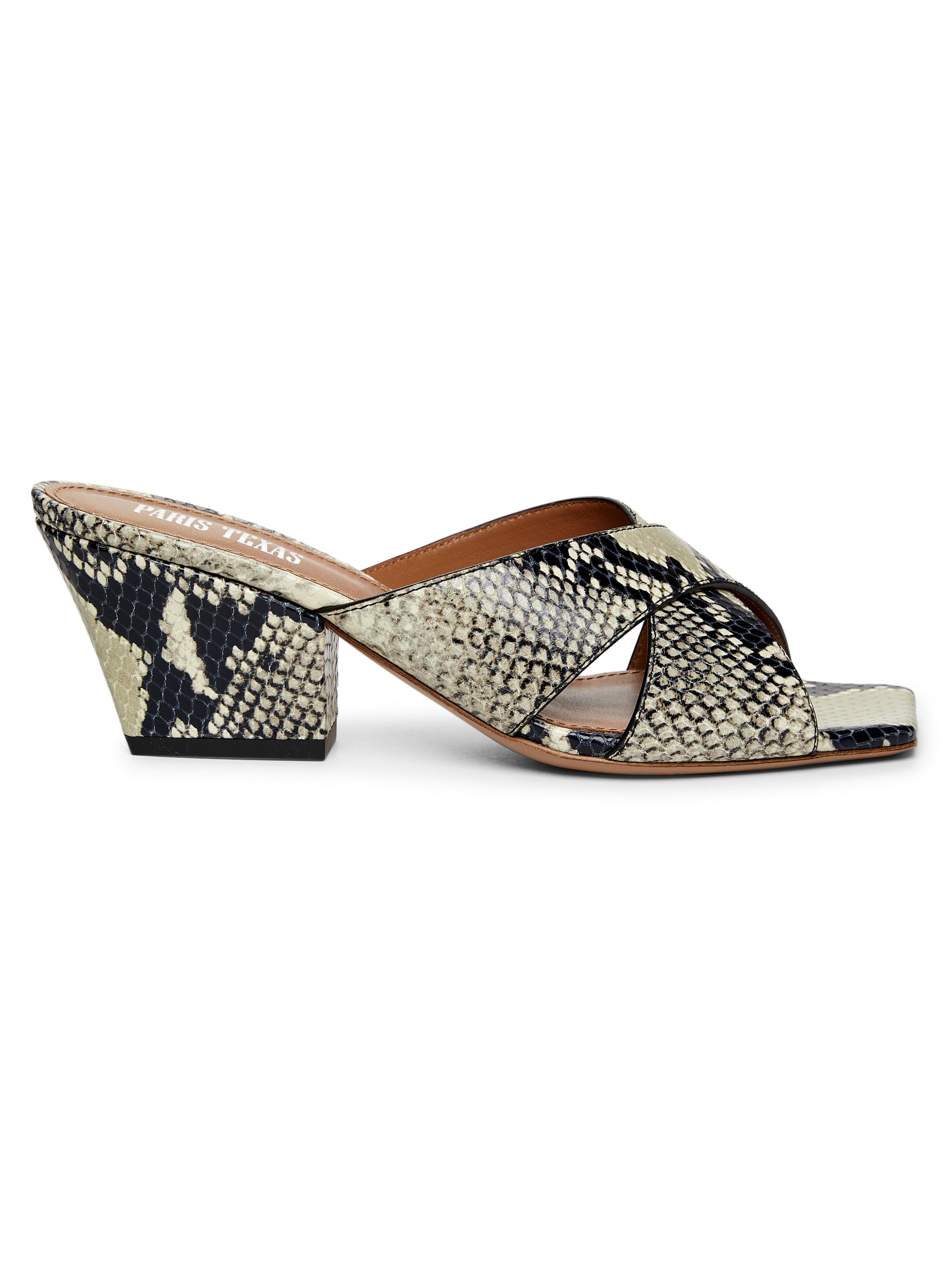 Paris Texas Python-Print Leather Mules