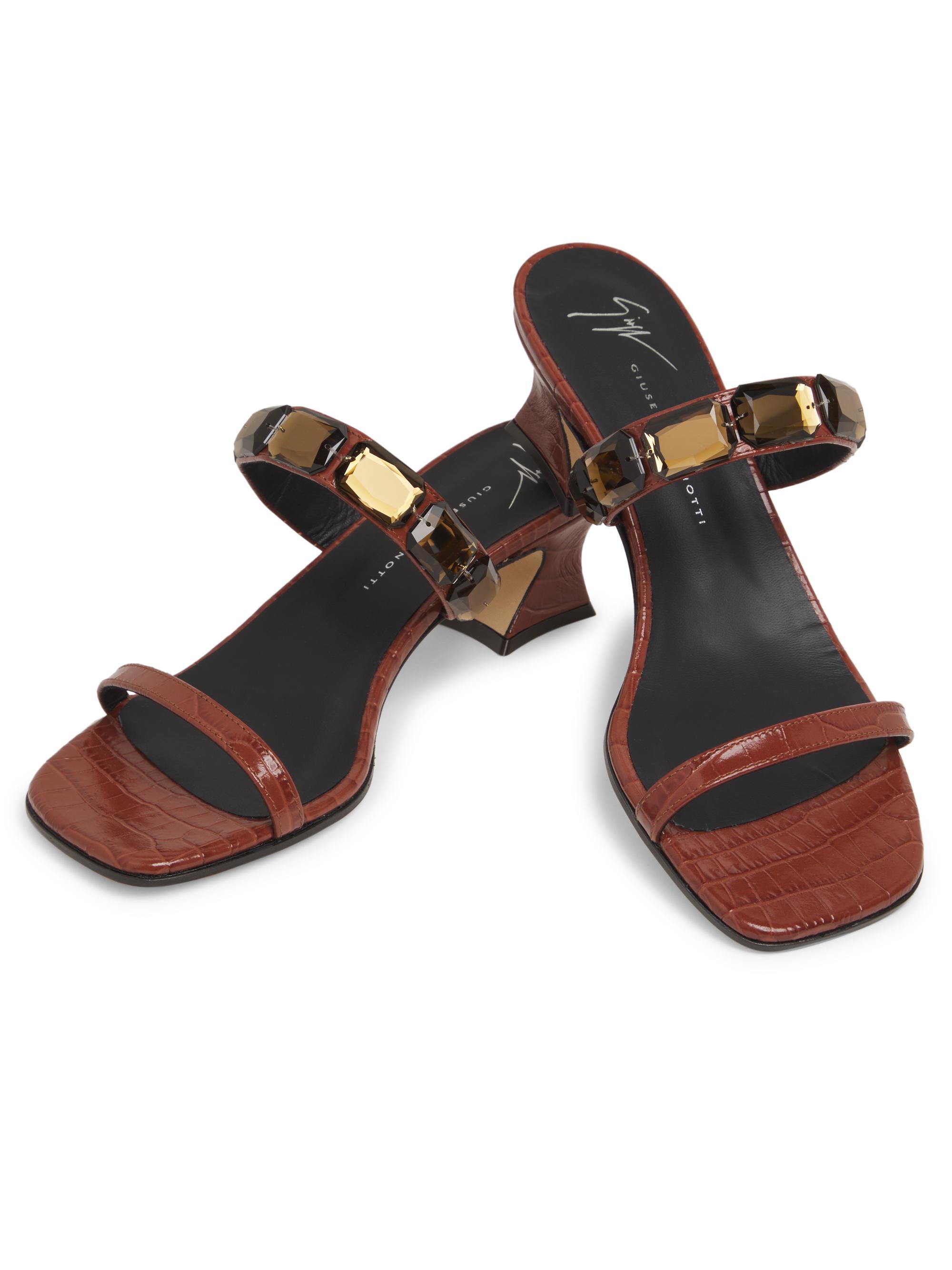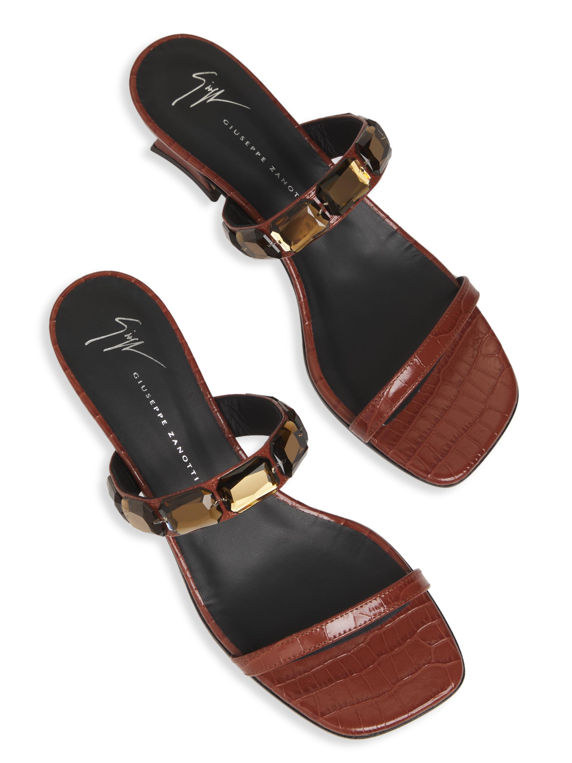 Giuseppe Zanotti 45MM Crocodile-Embossed Leather Jeweled Band Sandals CACAO