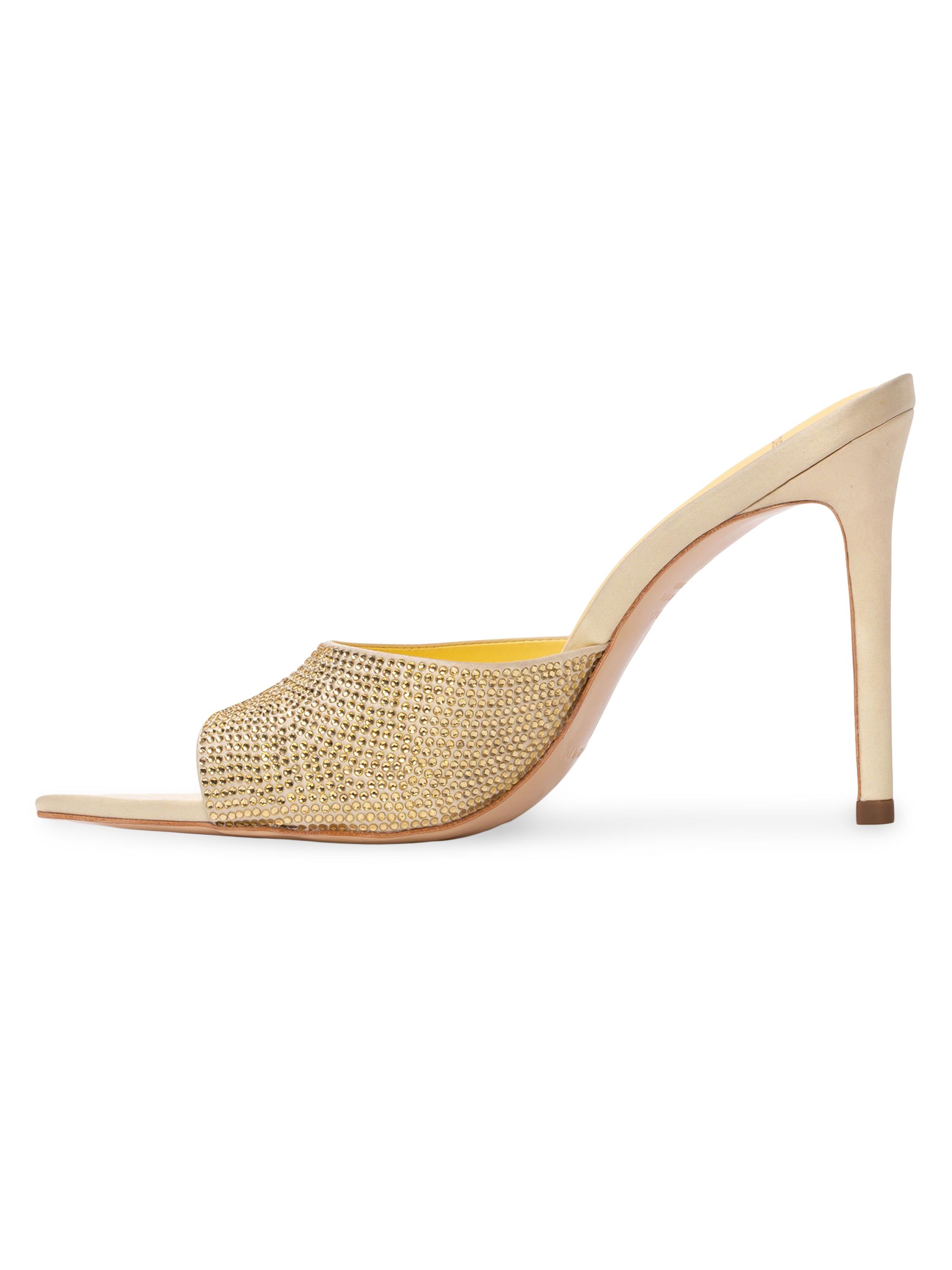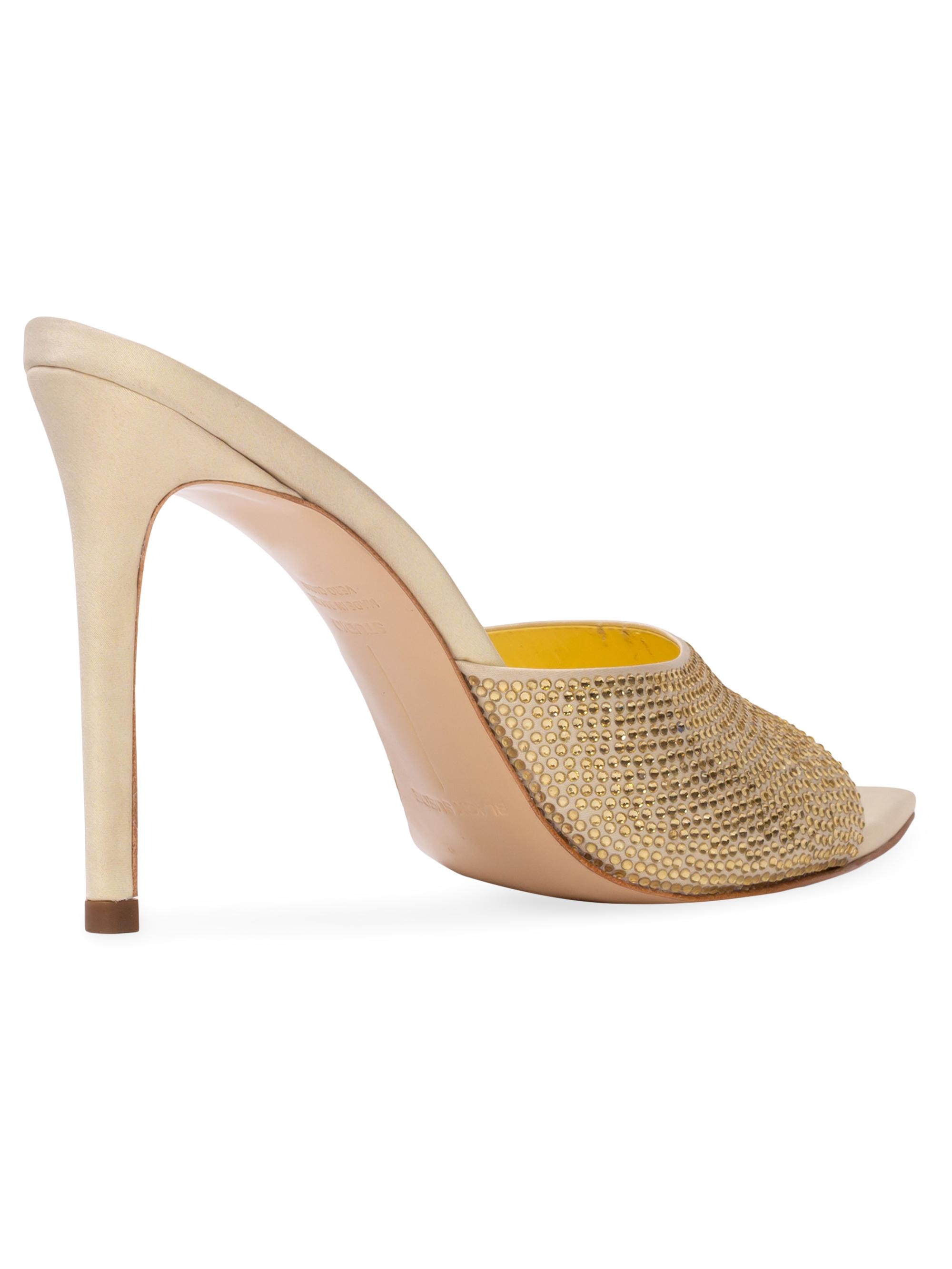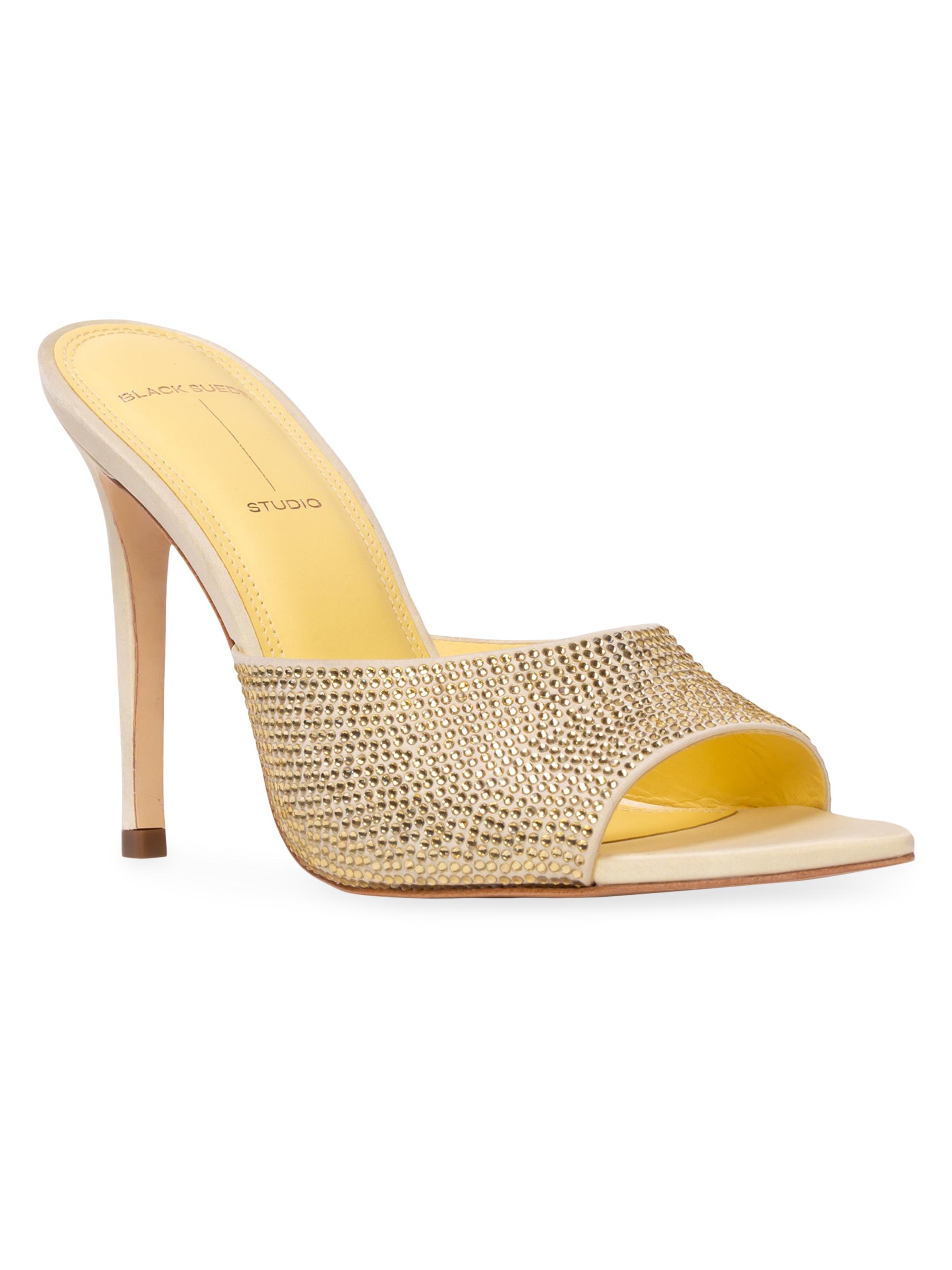 Black Suede Studio Bella Embellished High Heel Mules FRENCH VANILLA