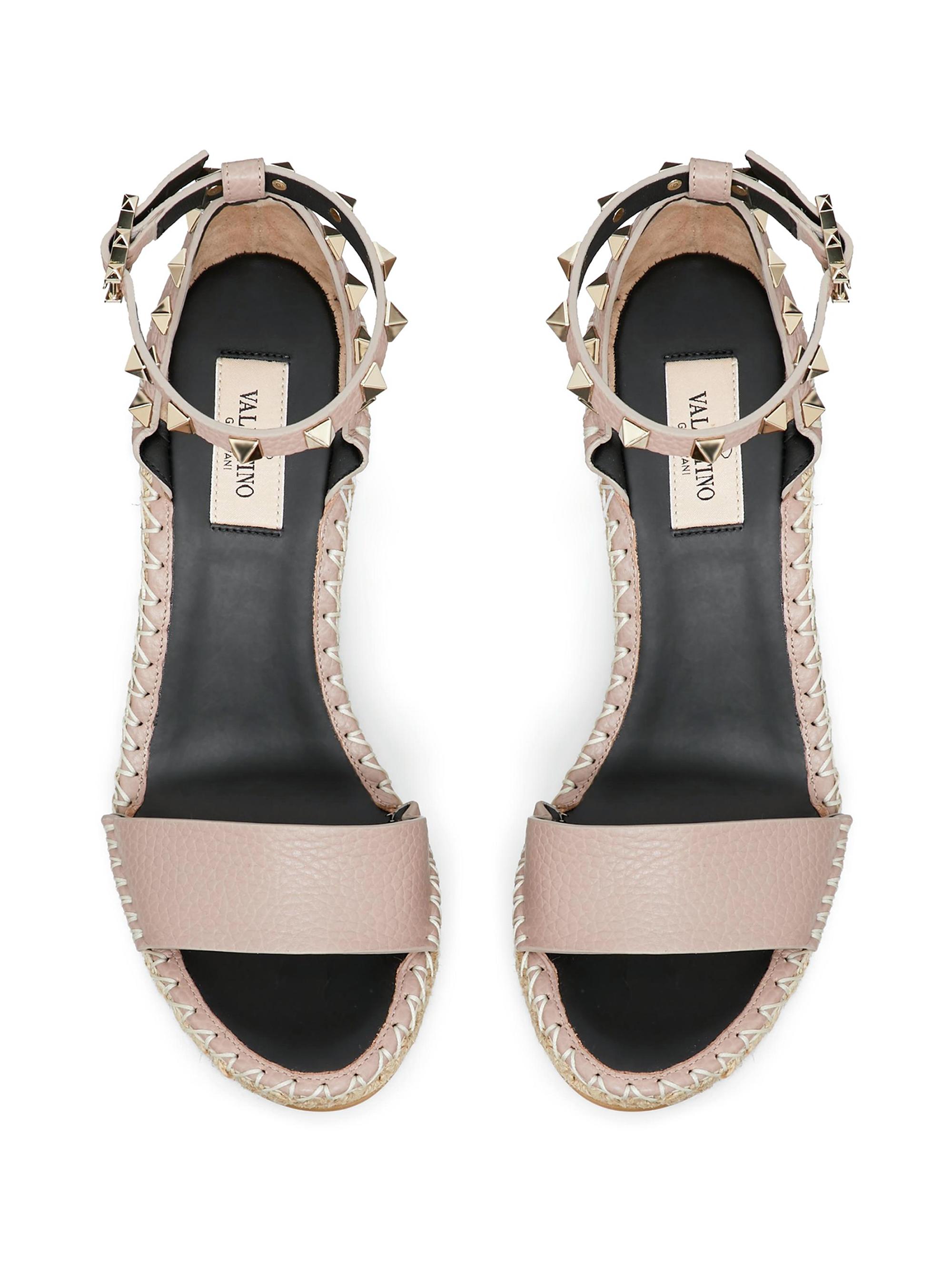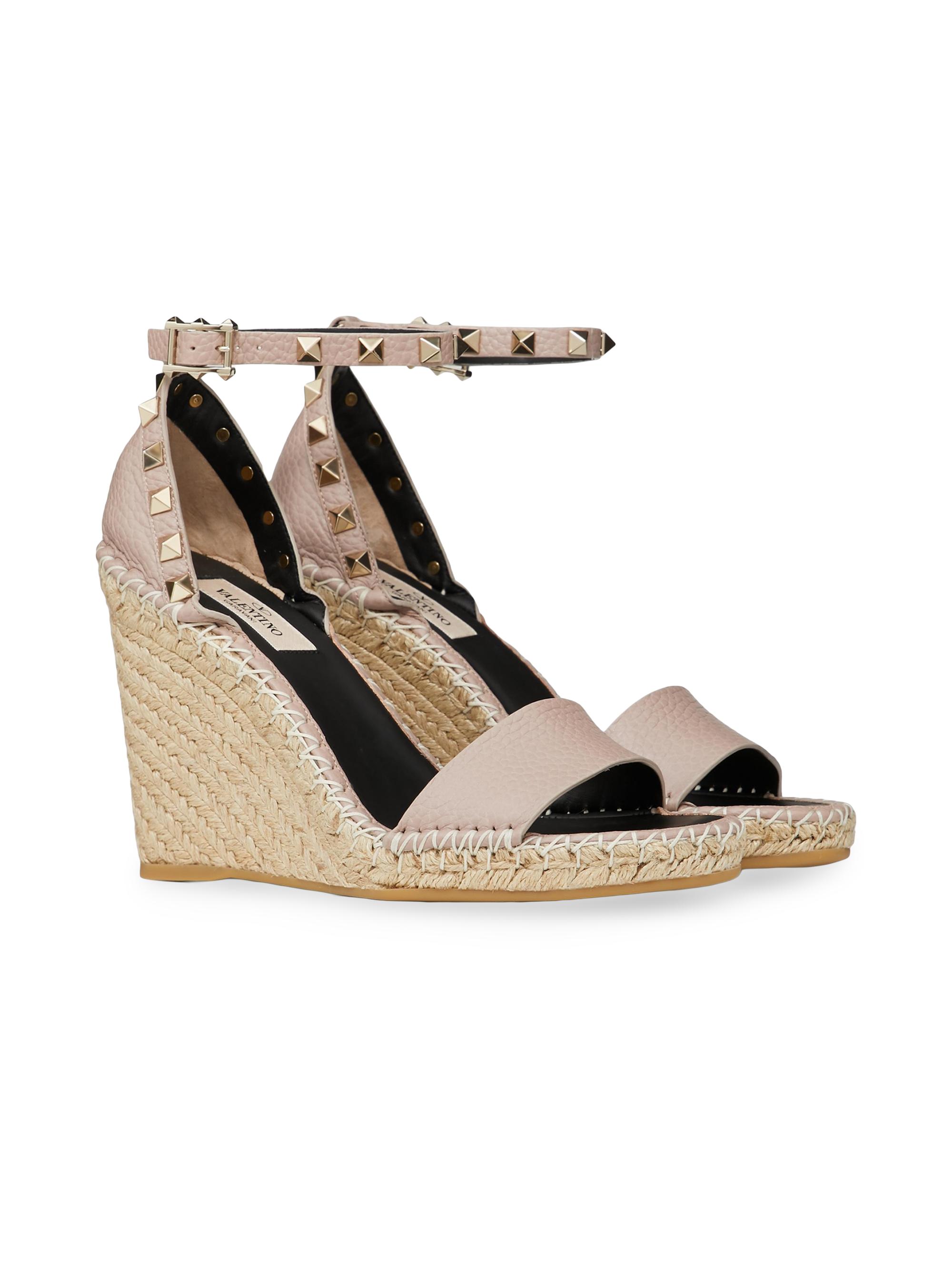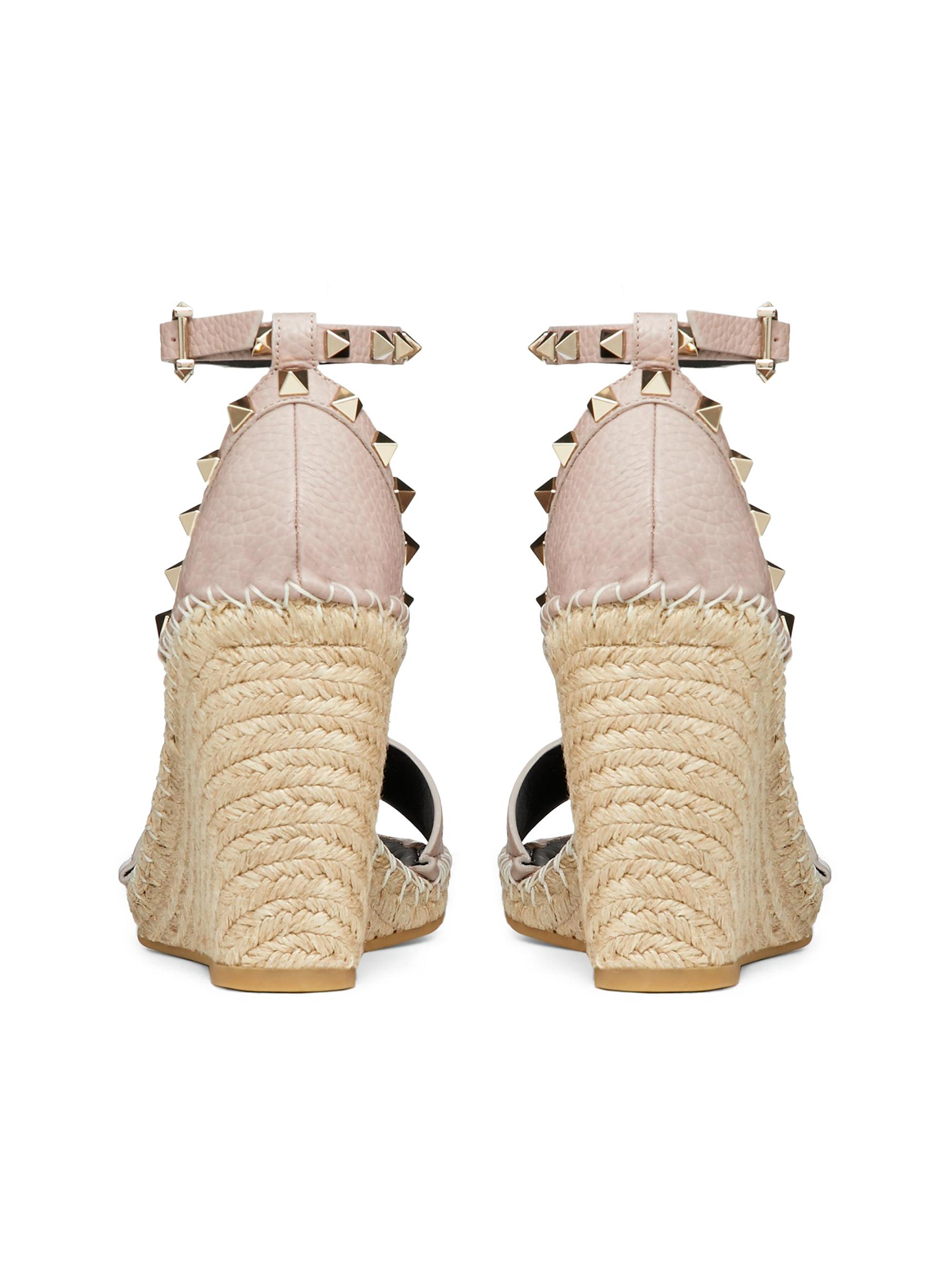 Valentino Garavani Double Rockstud Grainy Calfskin Wedges 105MM POUDRE BLACK