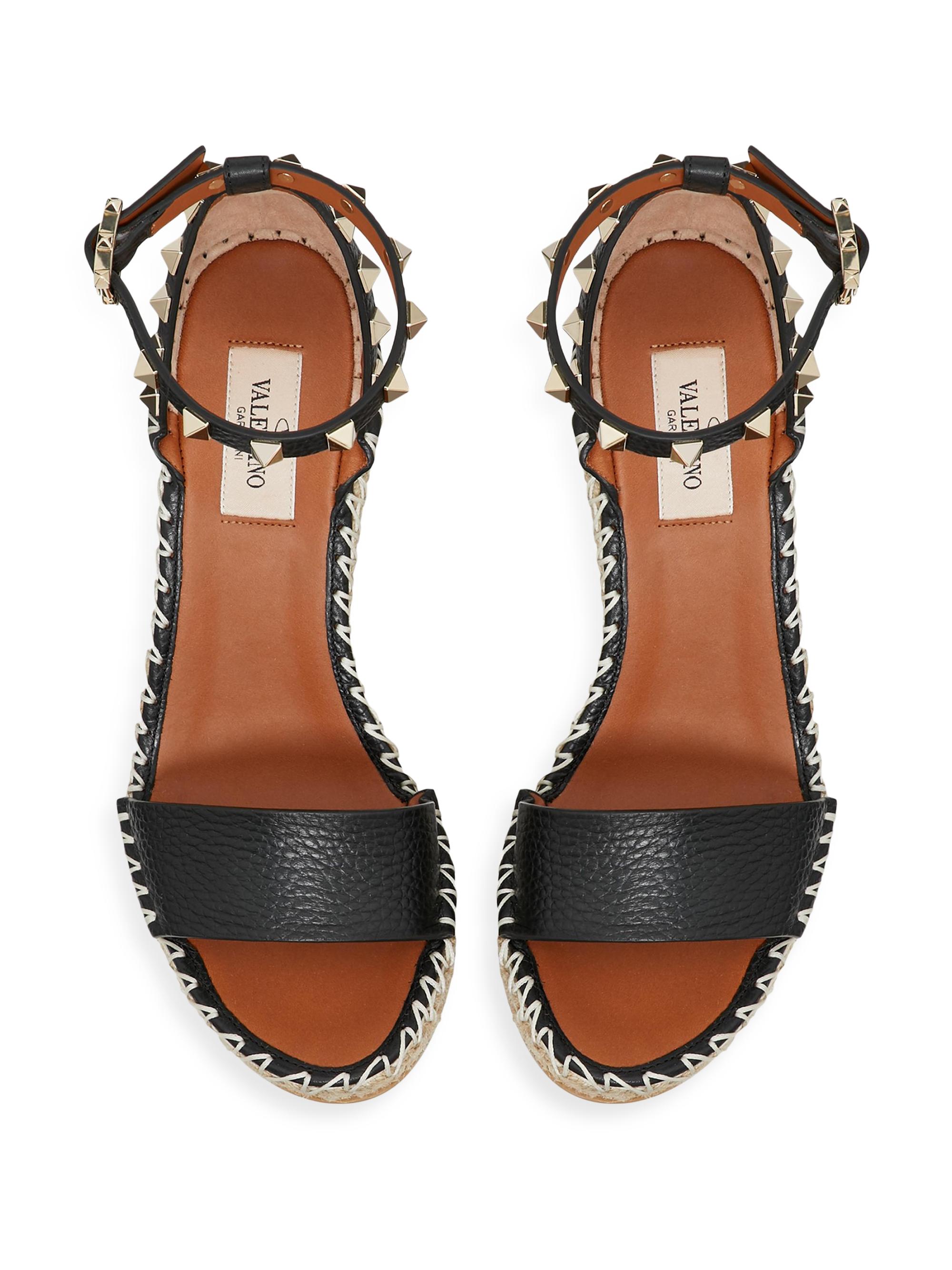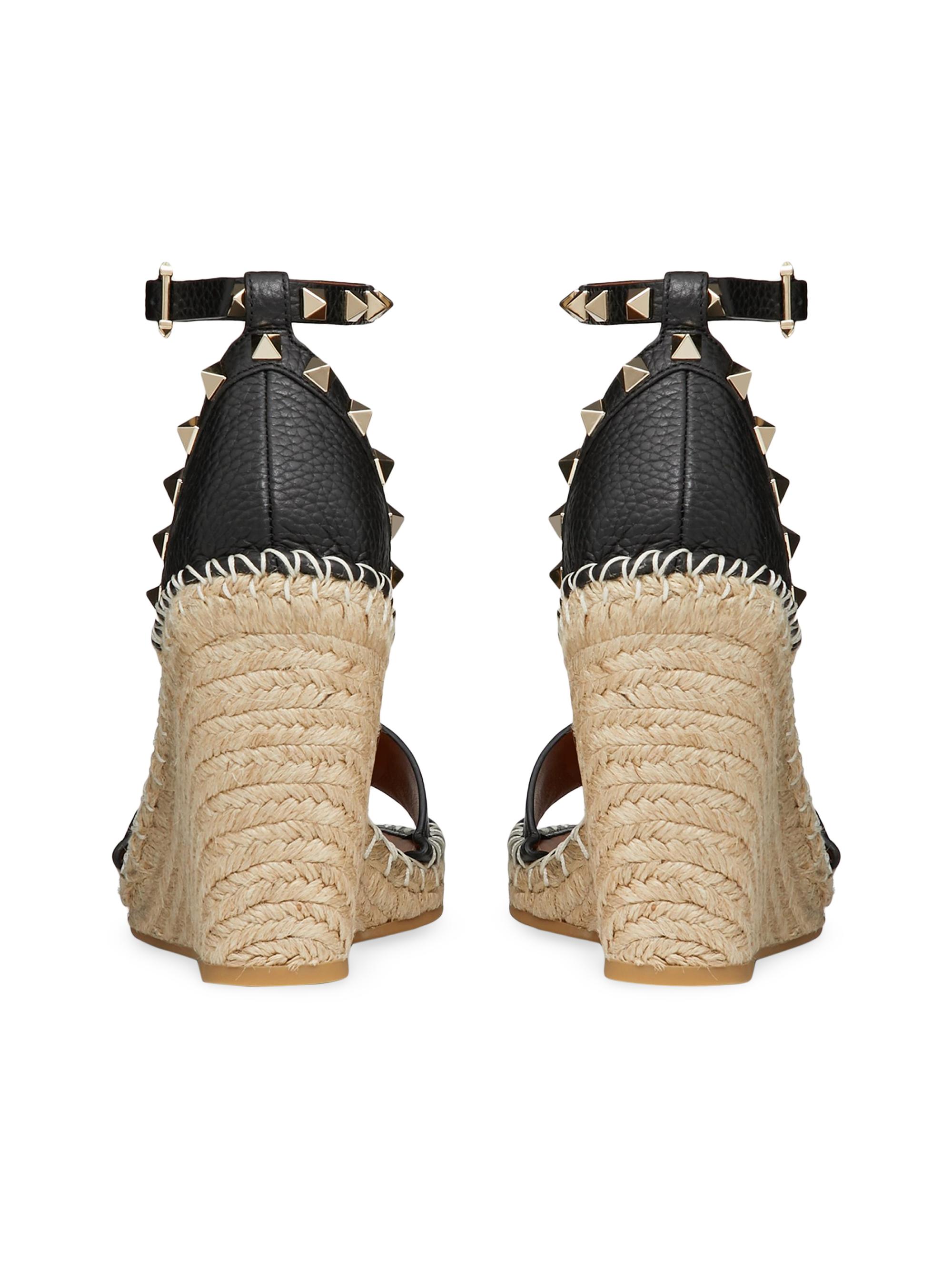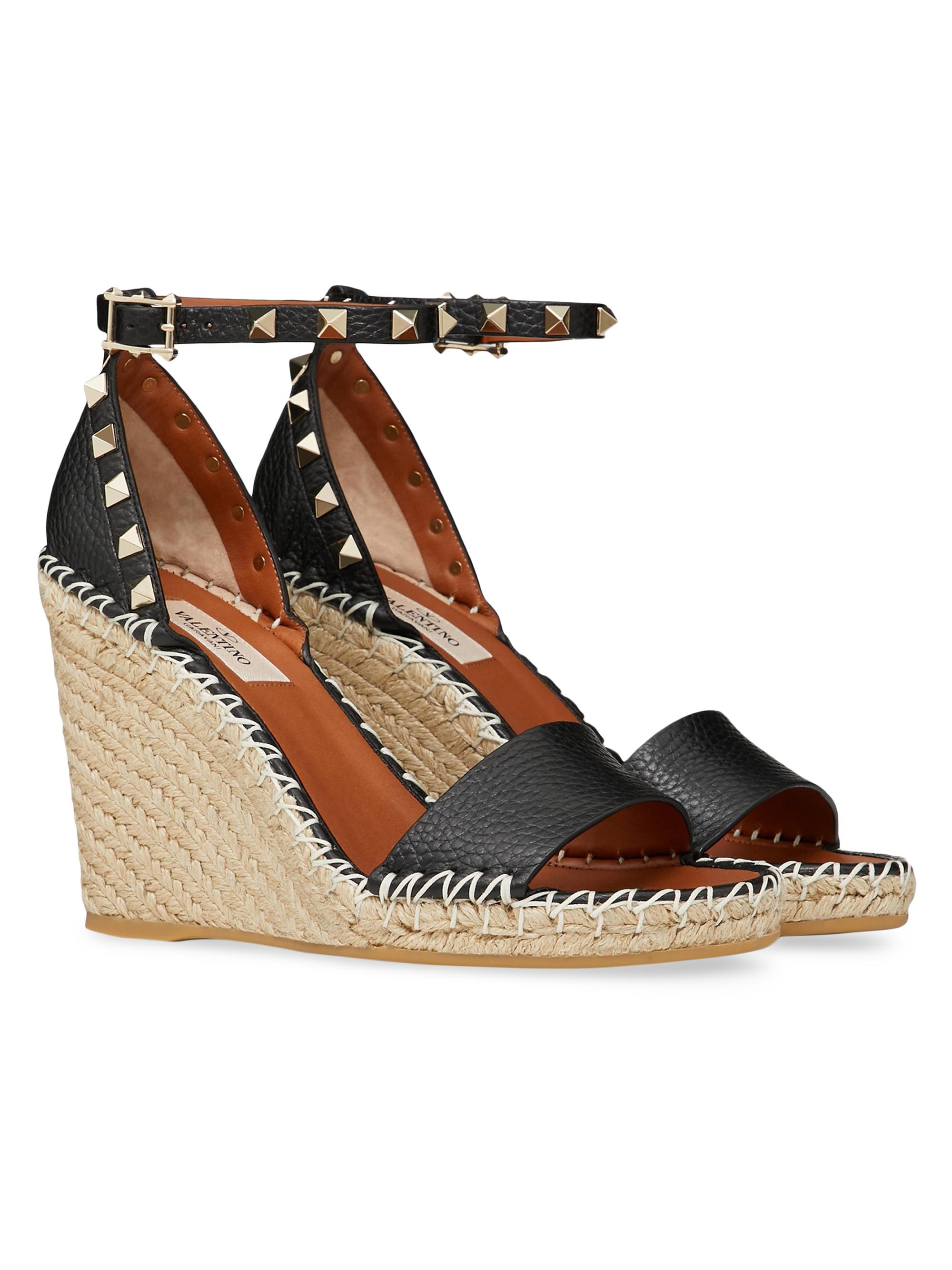 Valentino Garavani Double Rockstud Grainy Calfskin Wedges 105MM BLACK LIGHT CUIR