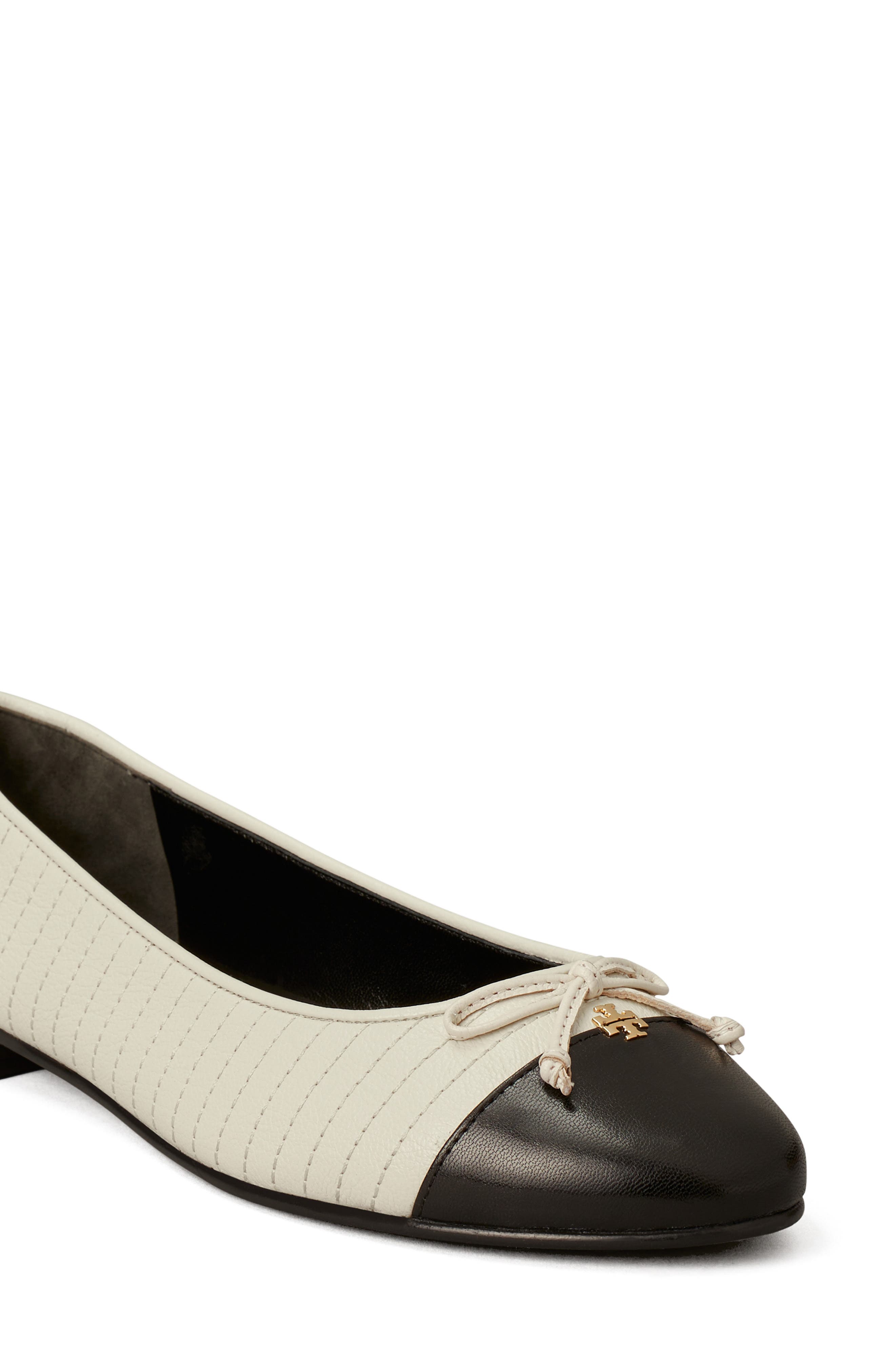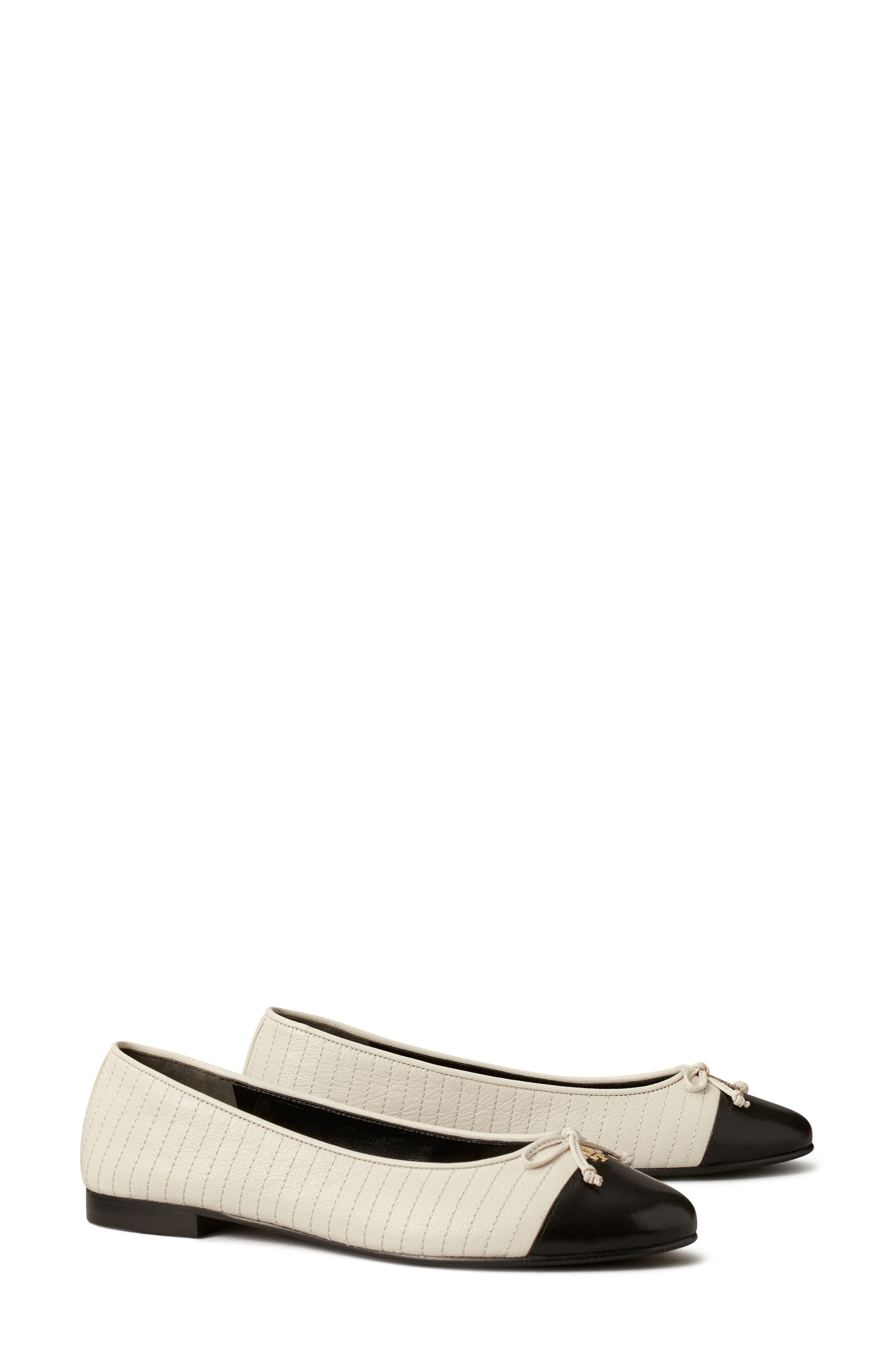 Tory Burch Quilted Cap Toe Ballet Flat_Light Cream / Perfect Black