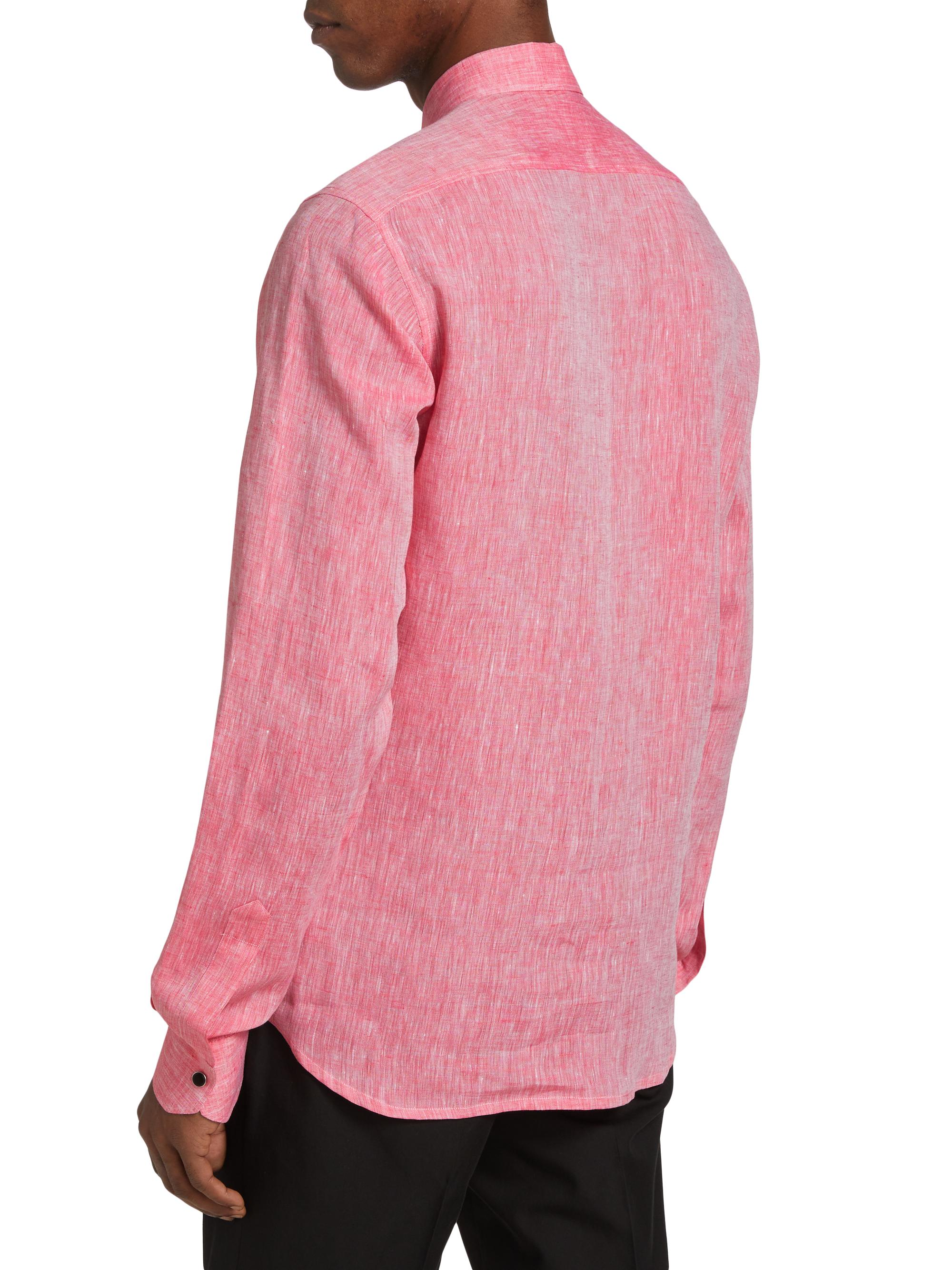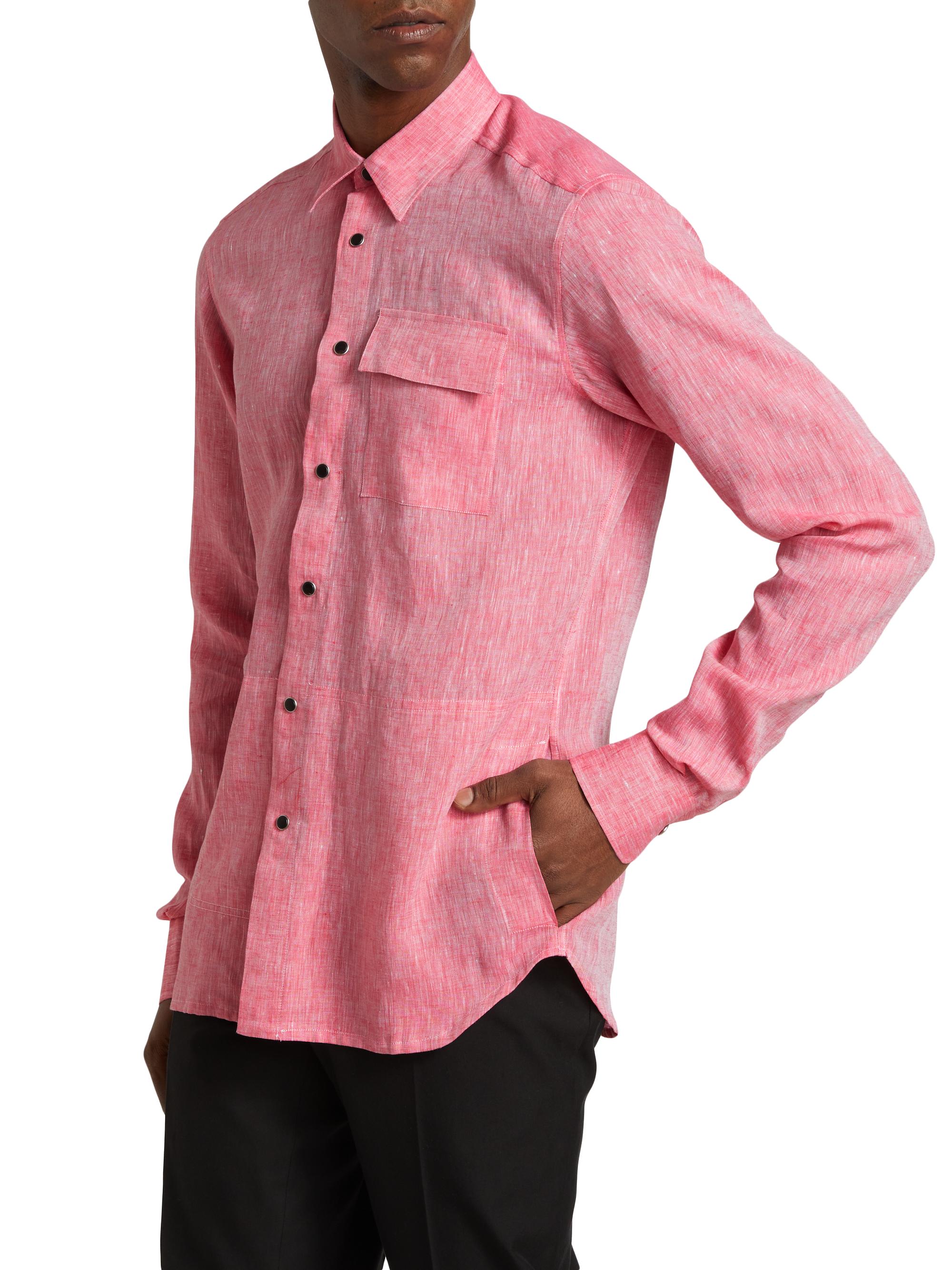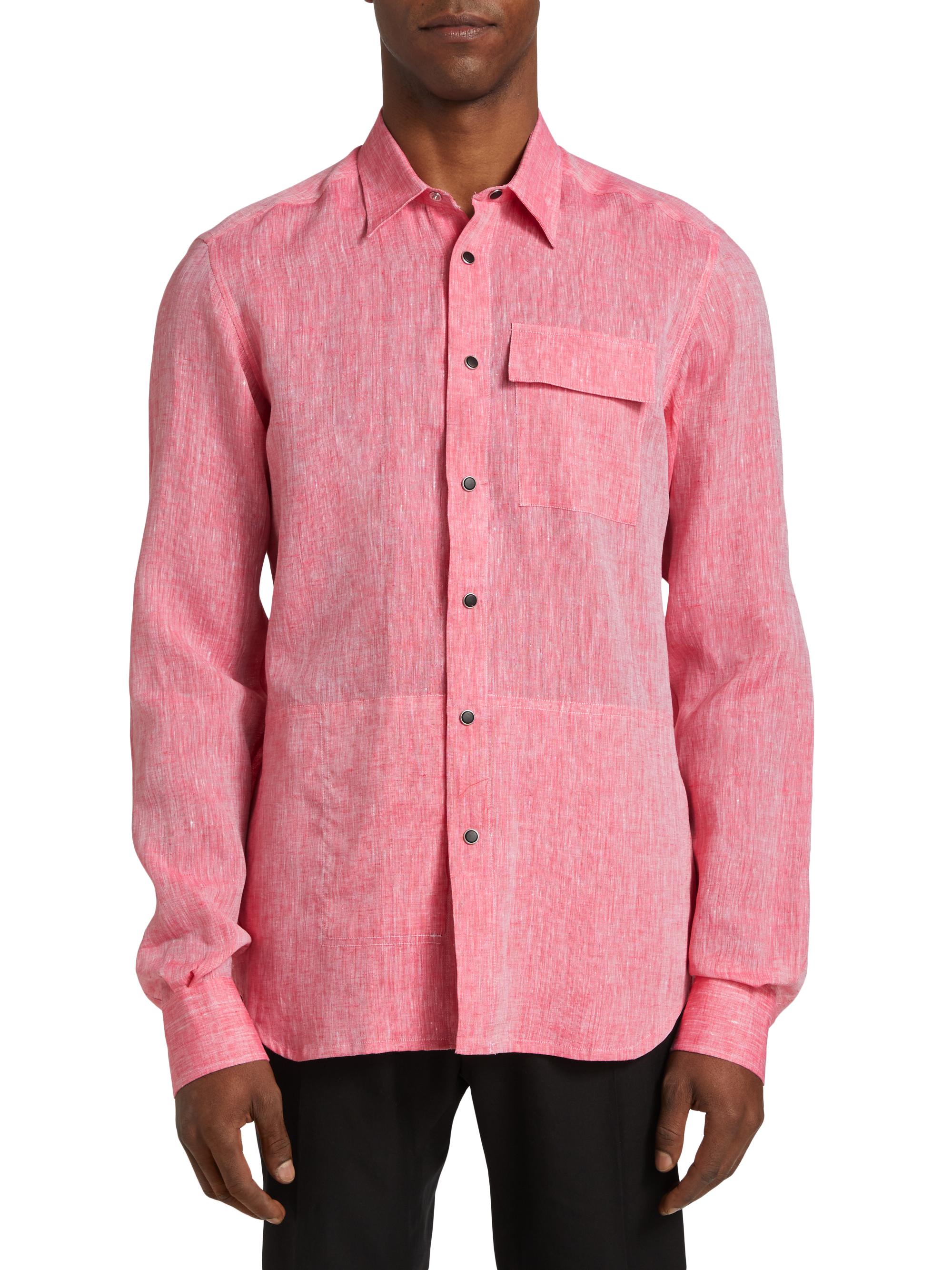 Kiton Buba Linen Button-Front Shirt FUCHSIA