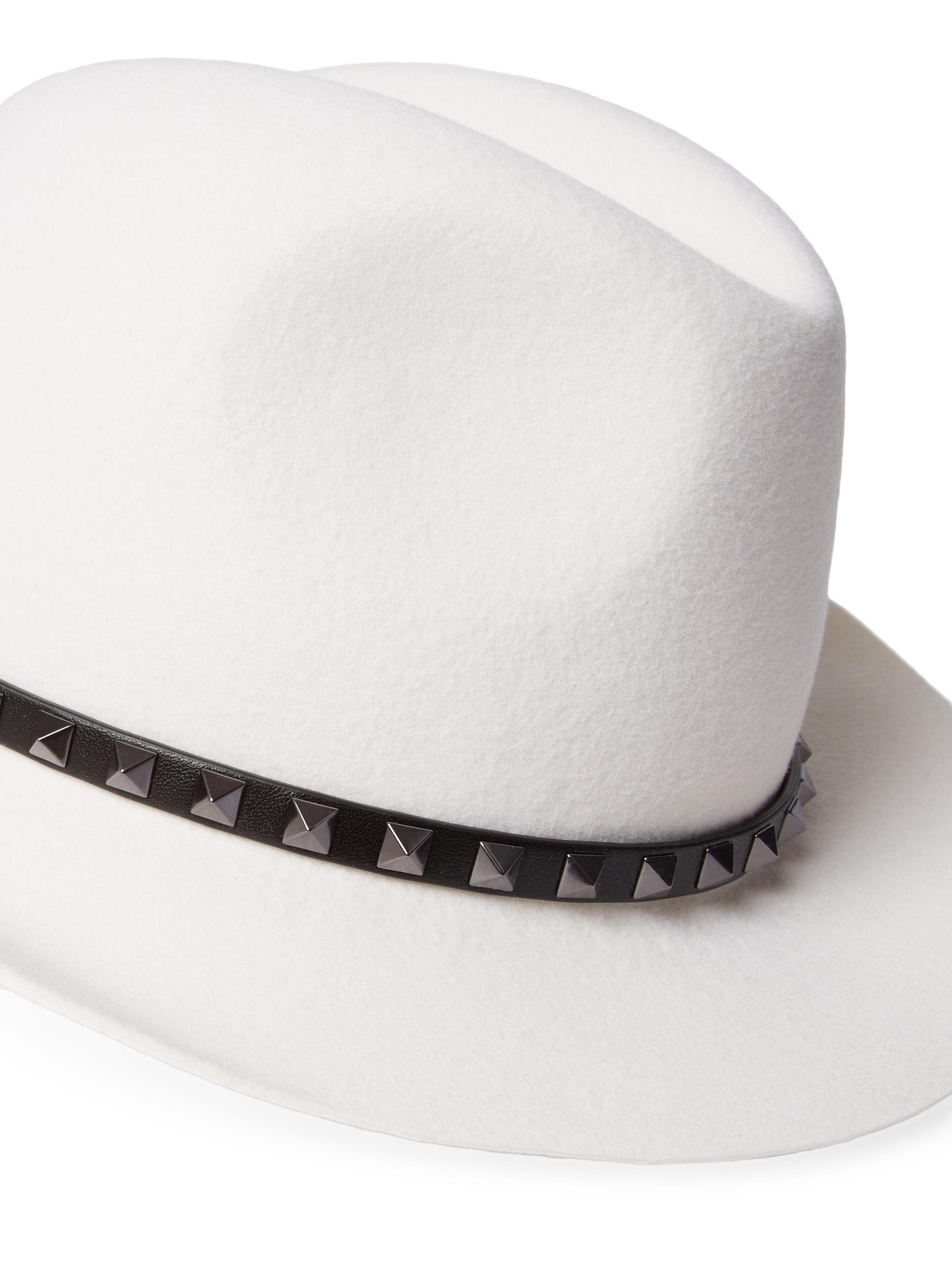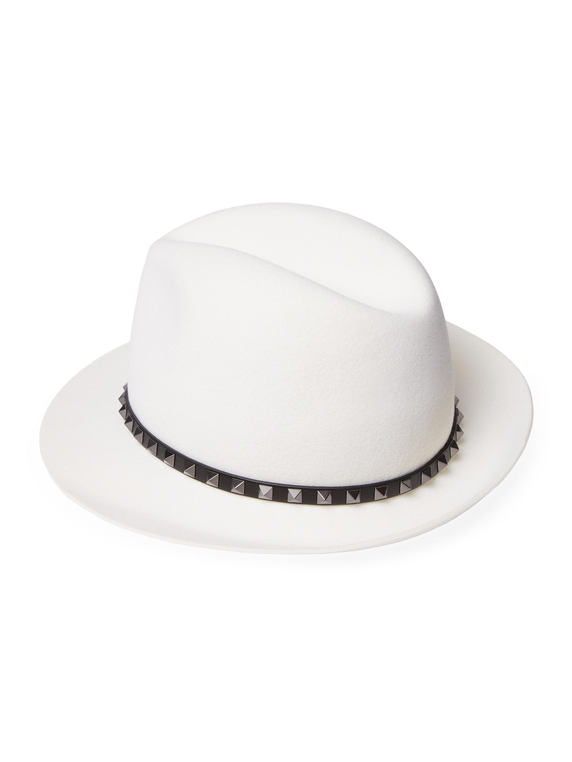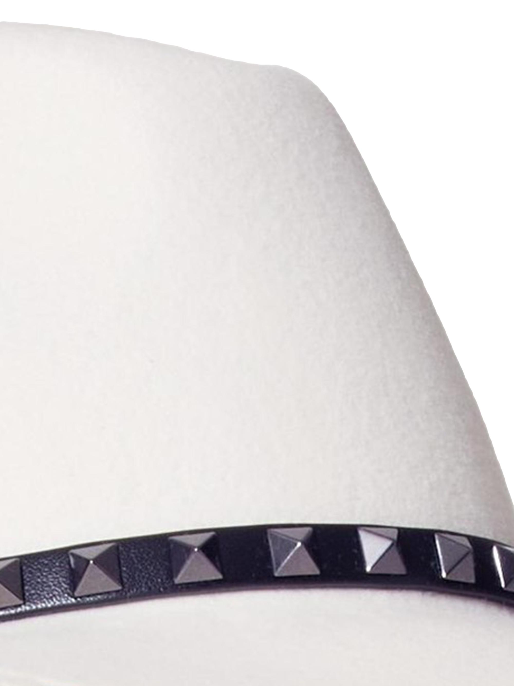 Valentino Garavani Rockstud Wool And Leather Fedora Hat With Applique Studs WHITE BLACK
