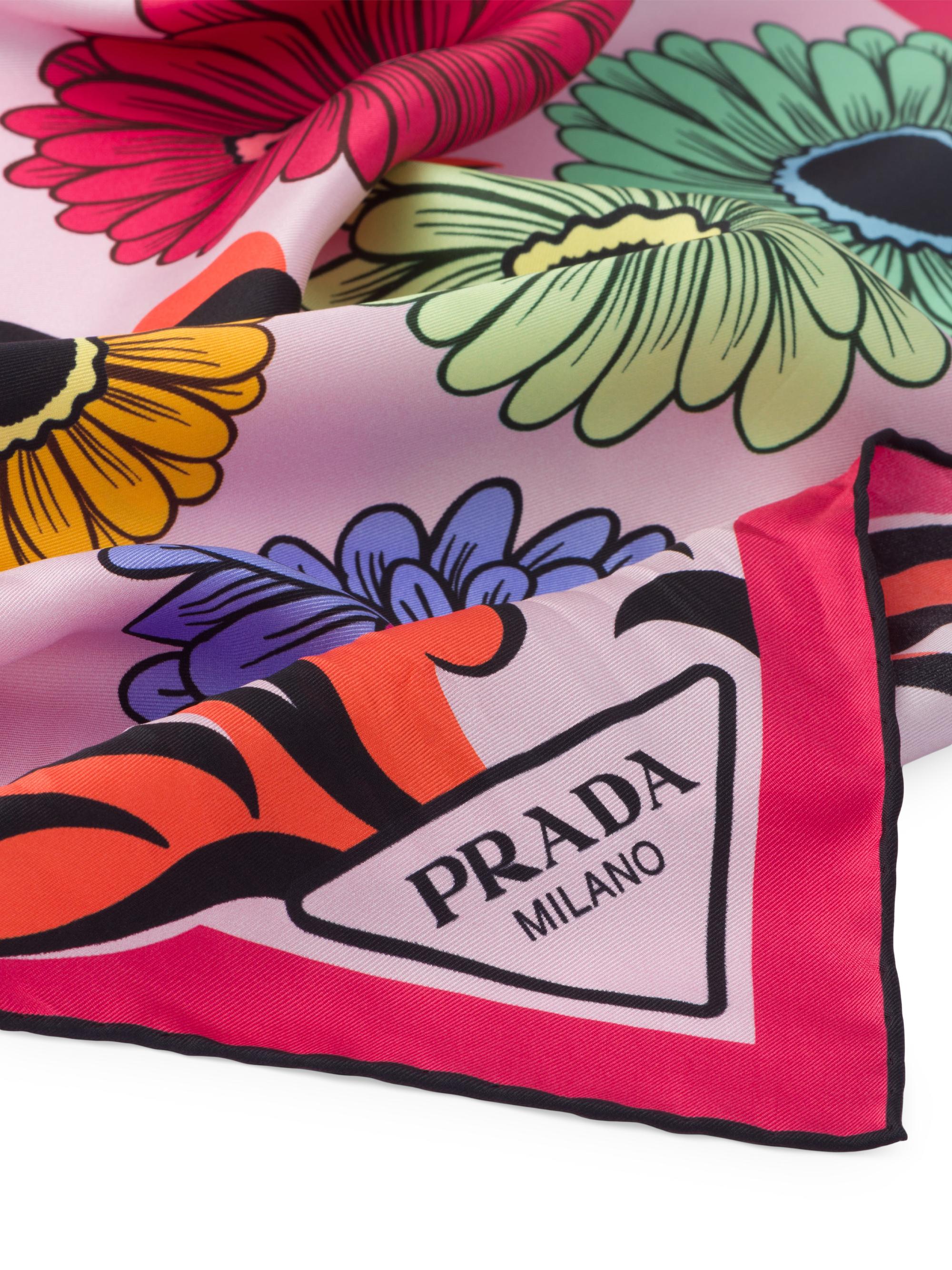 Prada Printed Silk Twill Scarf BRIGHT PINK