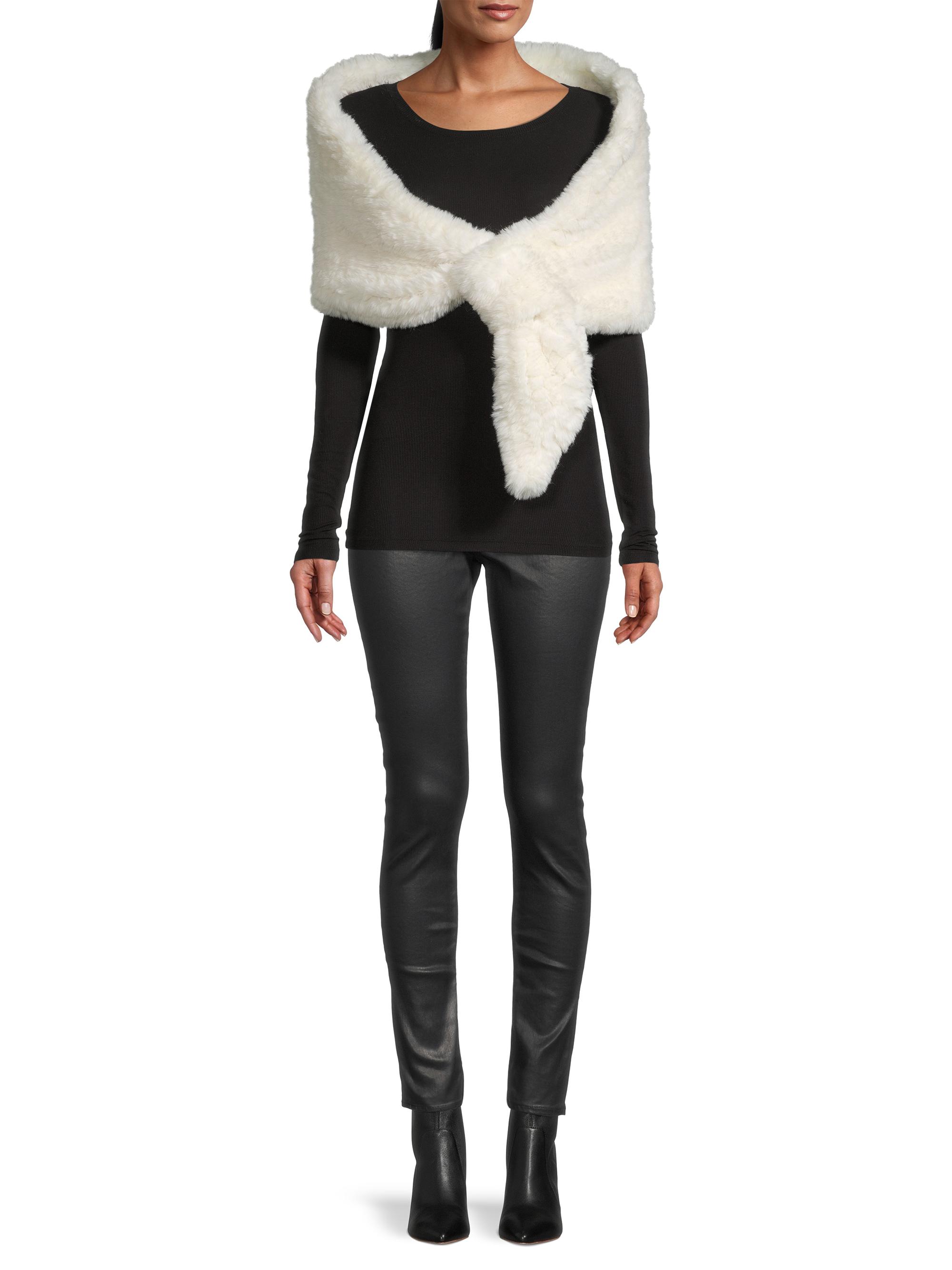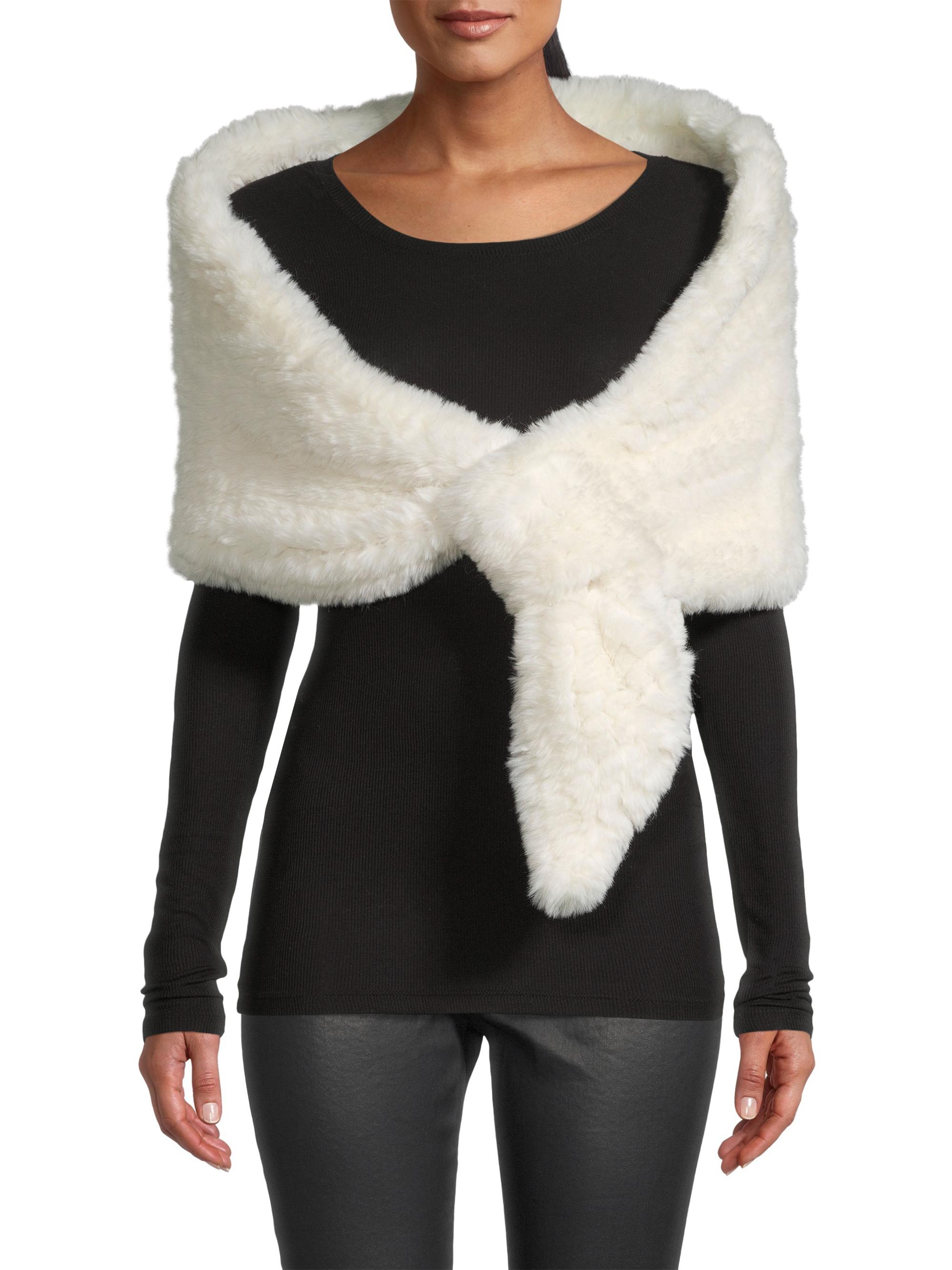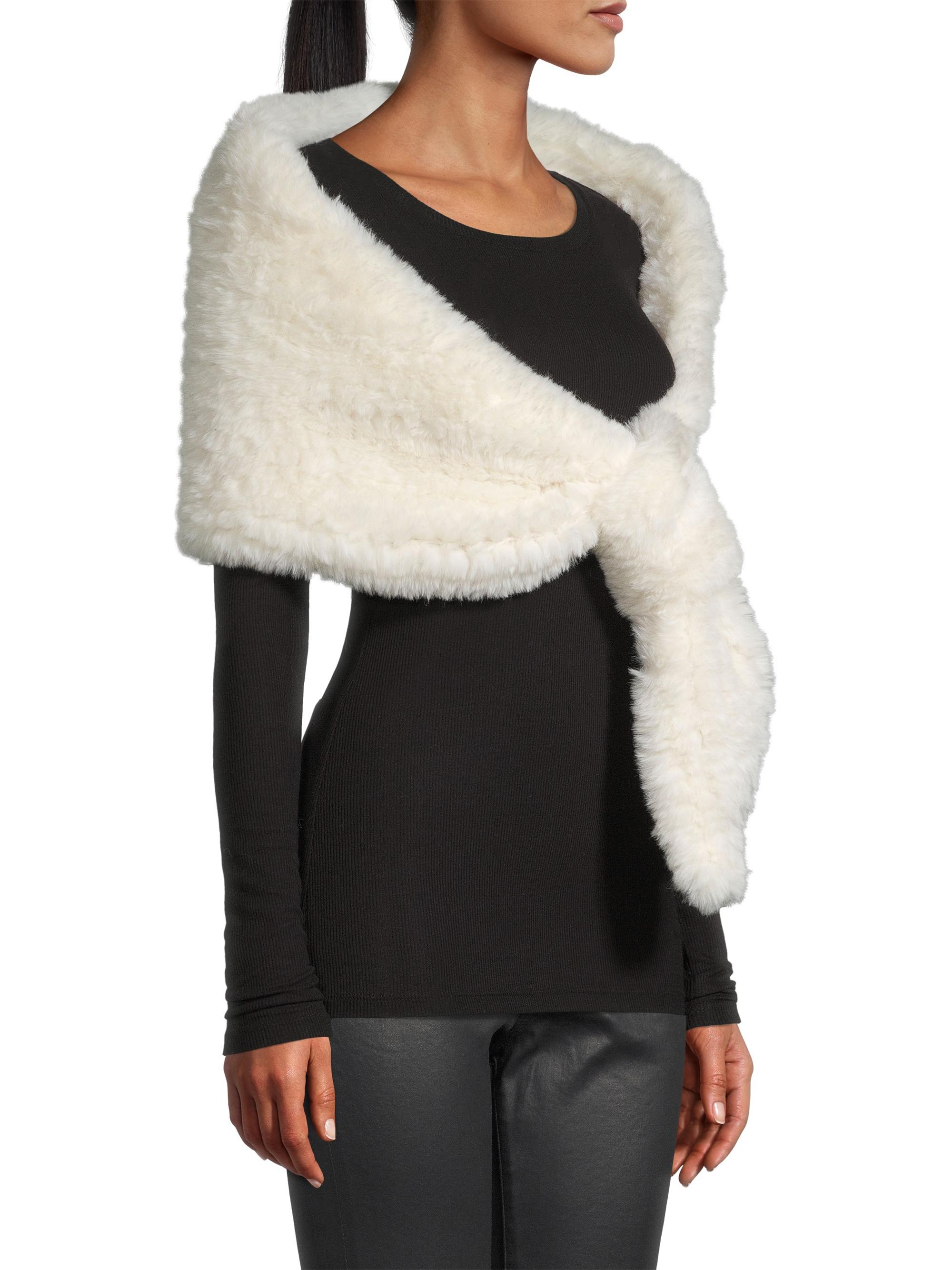 Surell Erin Faux Fur Knit Shawl WHITE
