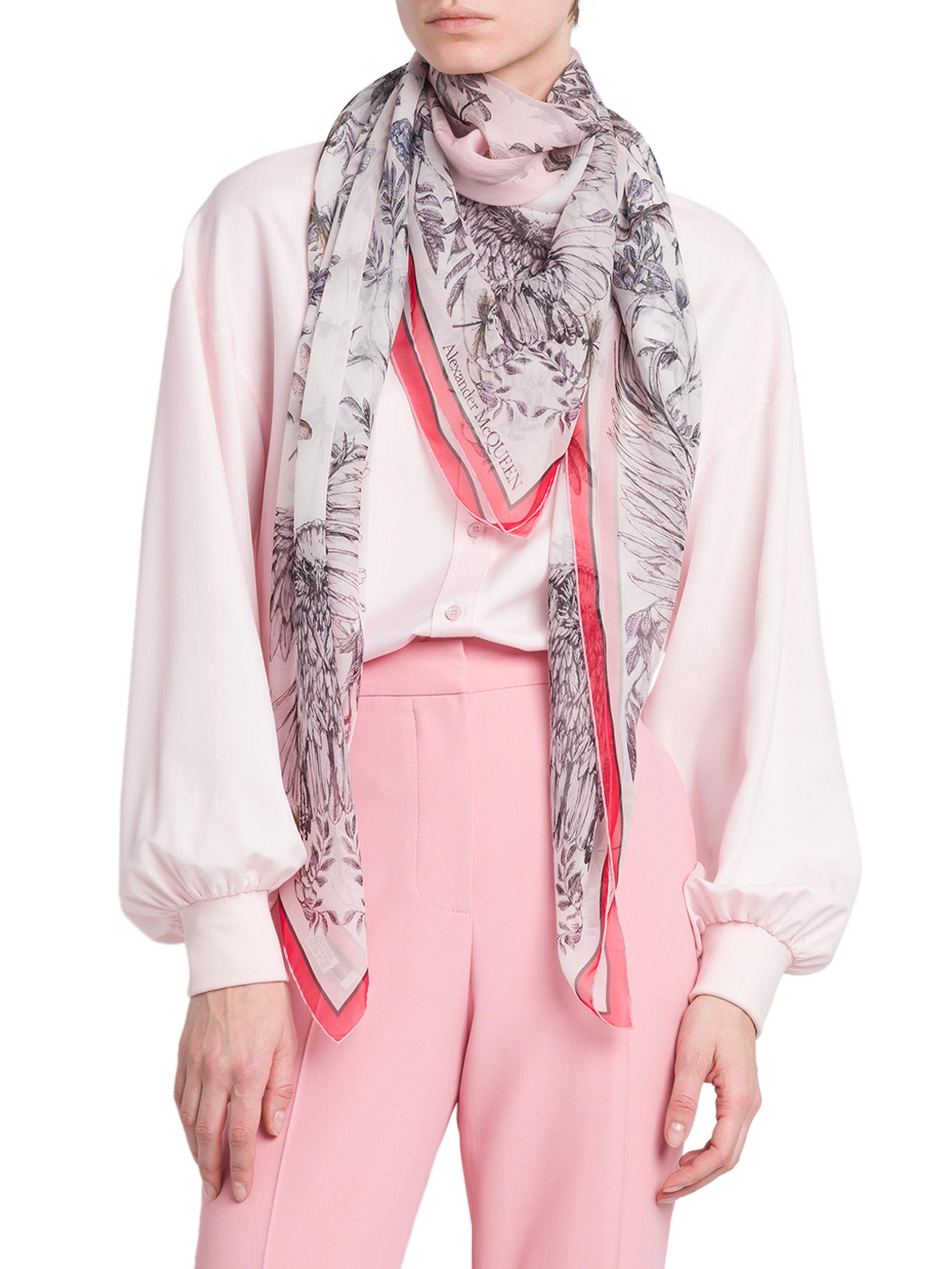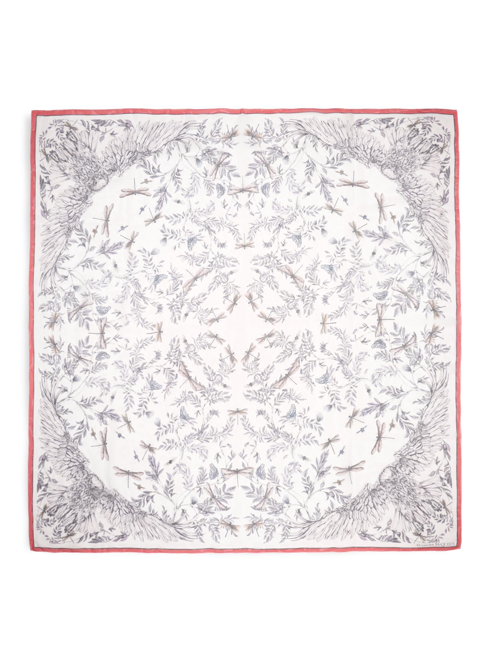 Alexander McQueen Eagle Flight Silk Scarf ROSE RED