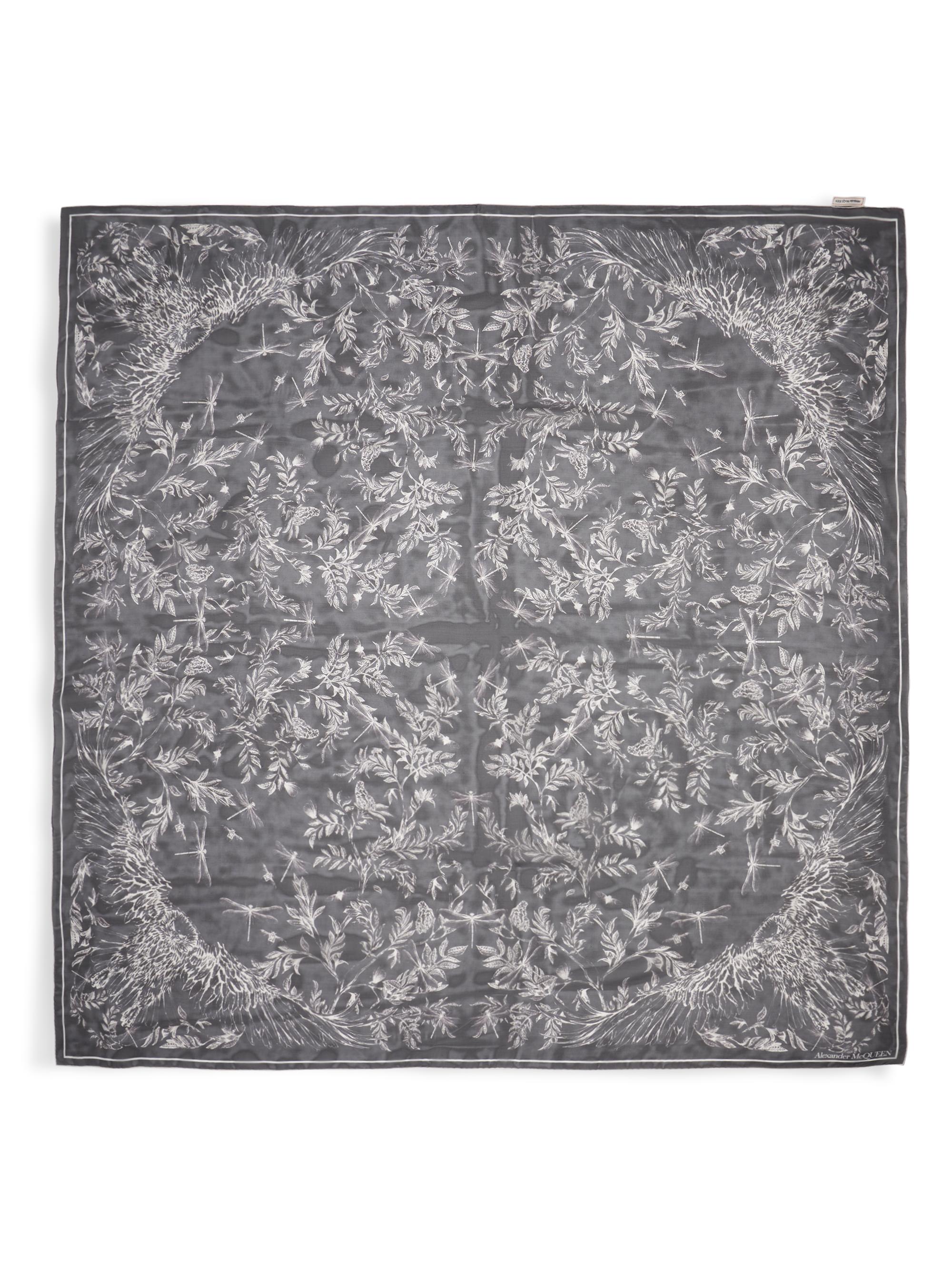 Alexander McQueen Eagle Flight Silk Scarf BLACK IVORY