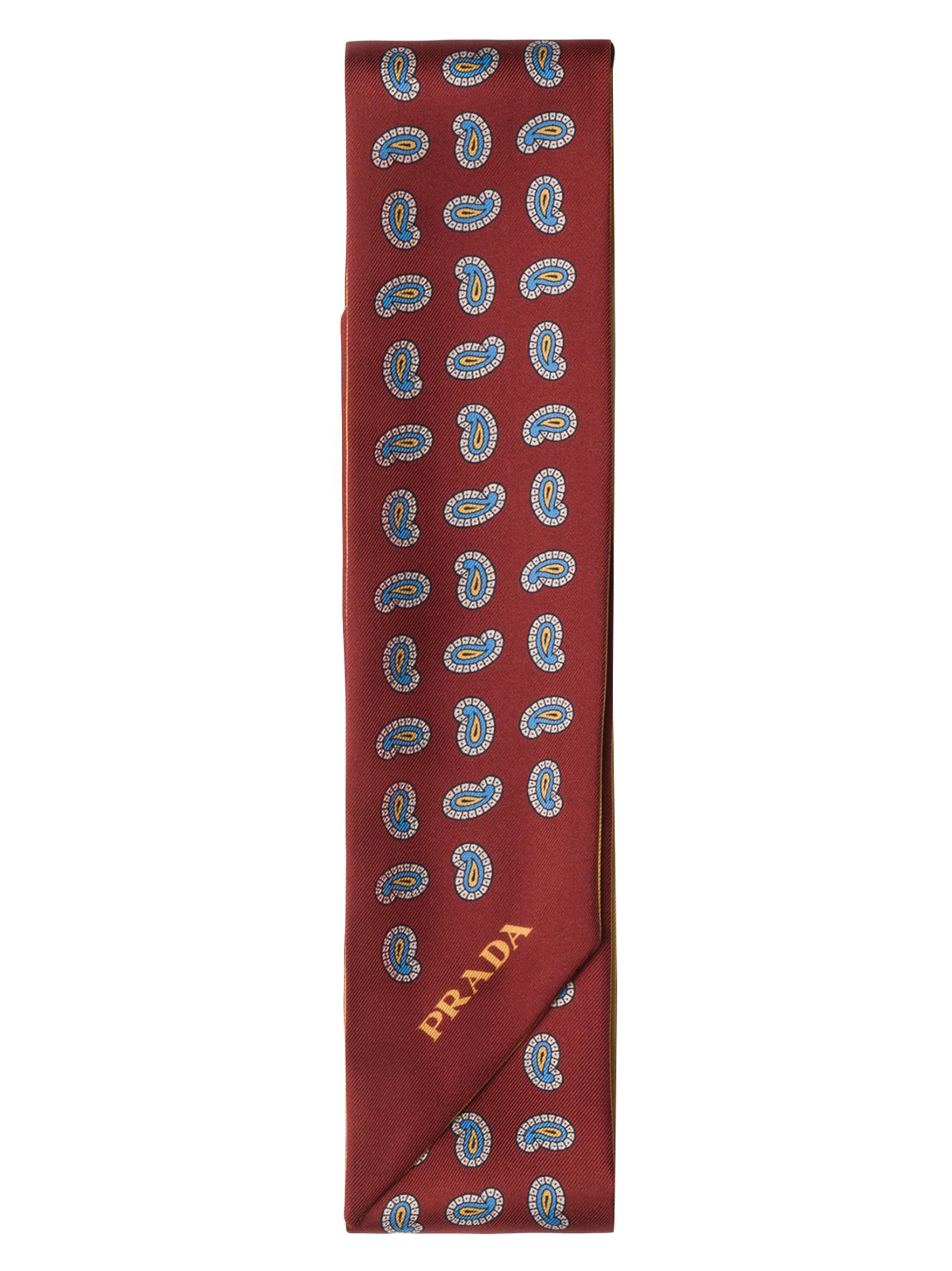 Prada Printed Silk Twill Skinny Tie DARK RED