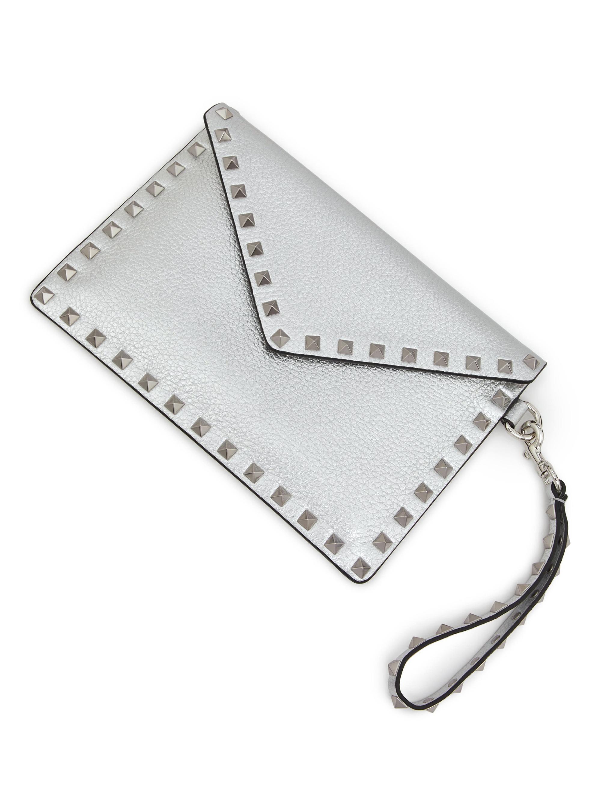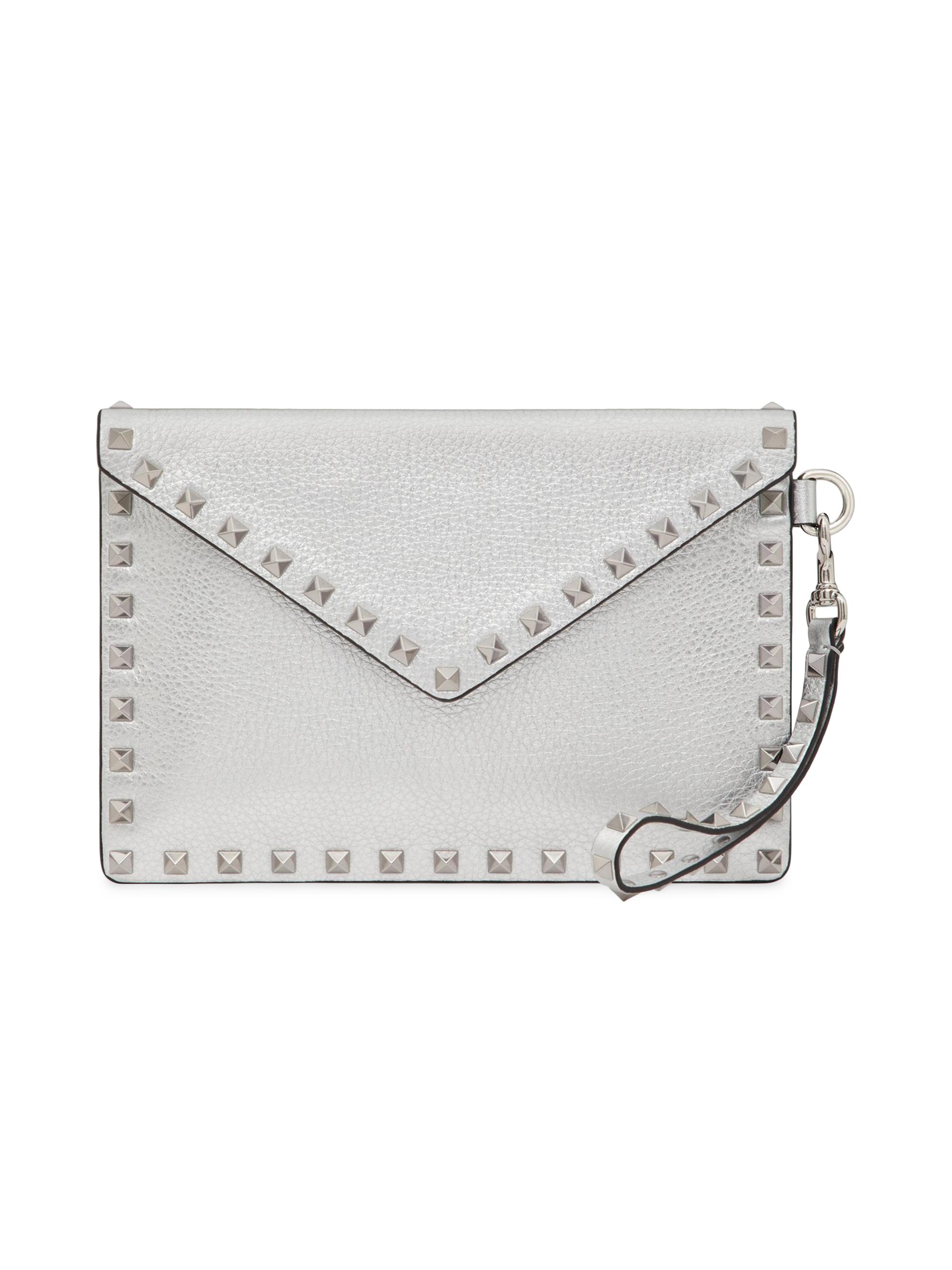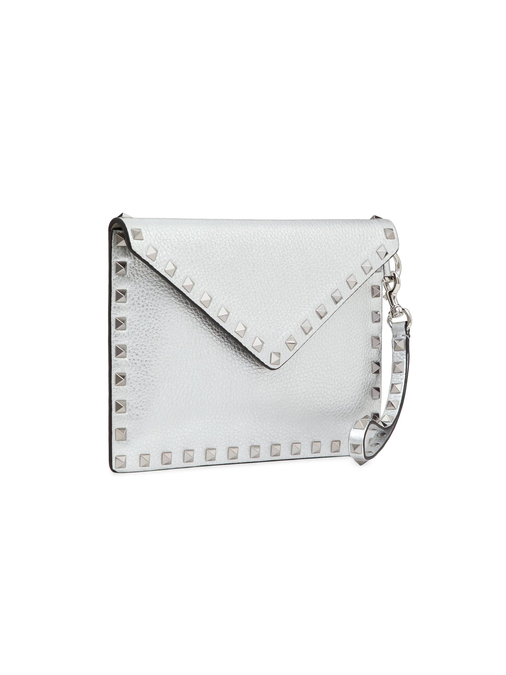 Valentino Garavani Rockstud Metallic Grainy Calfskin Clutch Bag