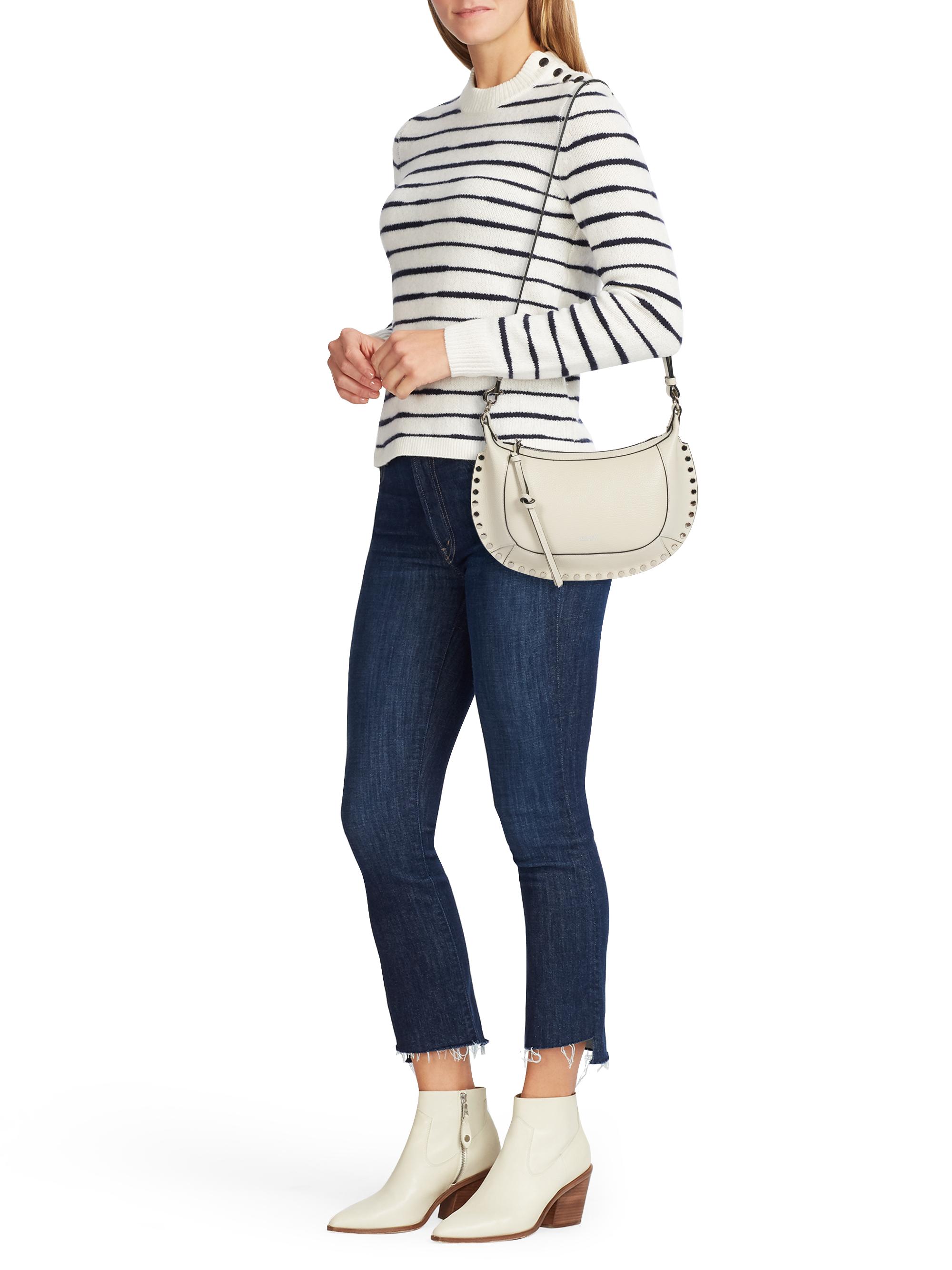 Isabel Marant Oskan Moon Leather Studded Shoulder Bag CHALK