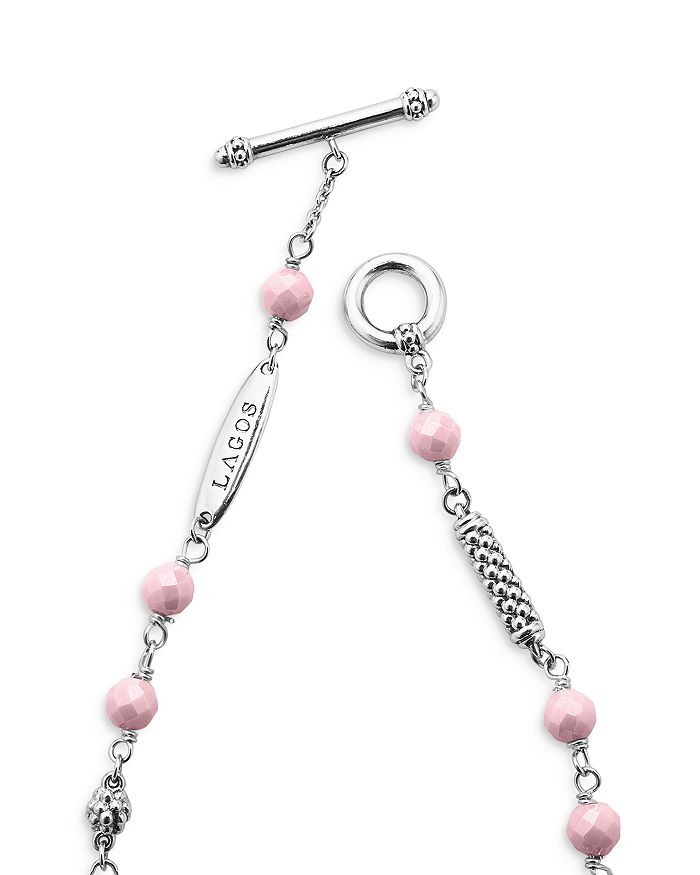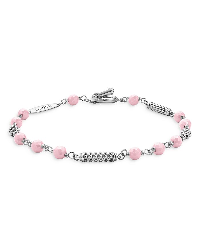 LAGOS Sterling Silver Caviar Icon Pink Ceramic Bead Station Toggle Bracelet