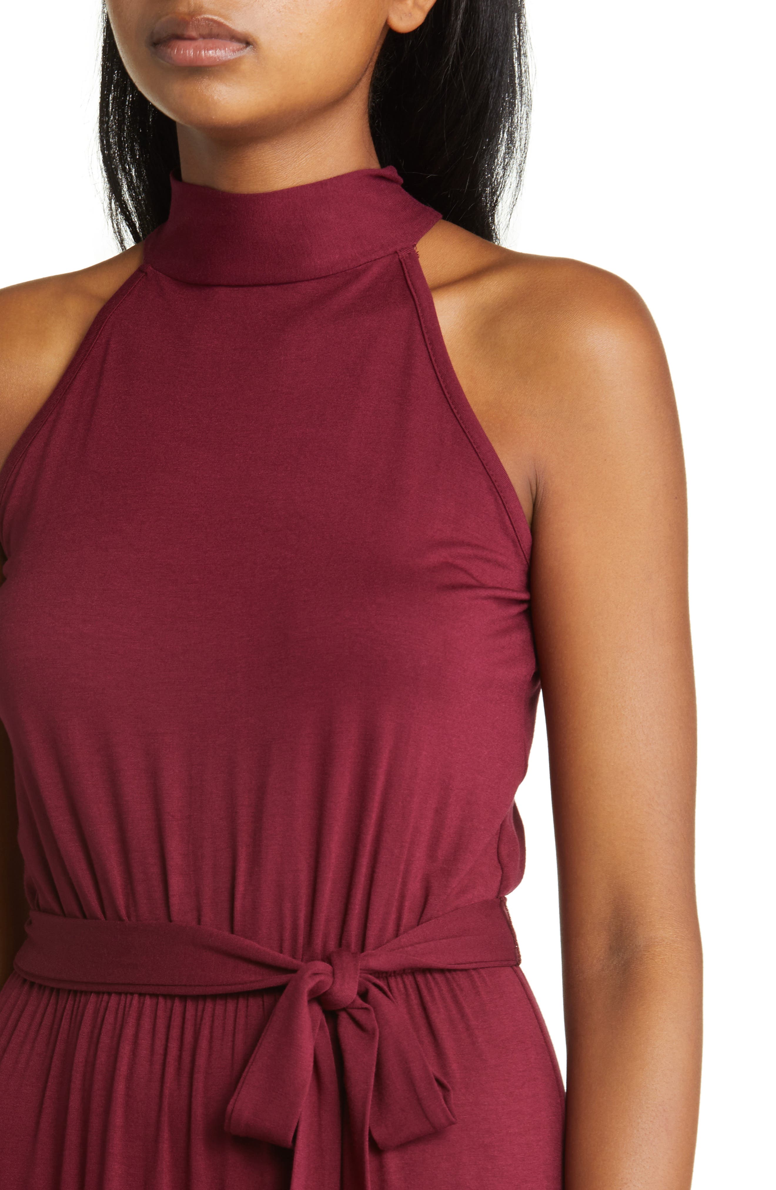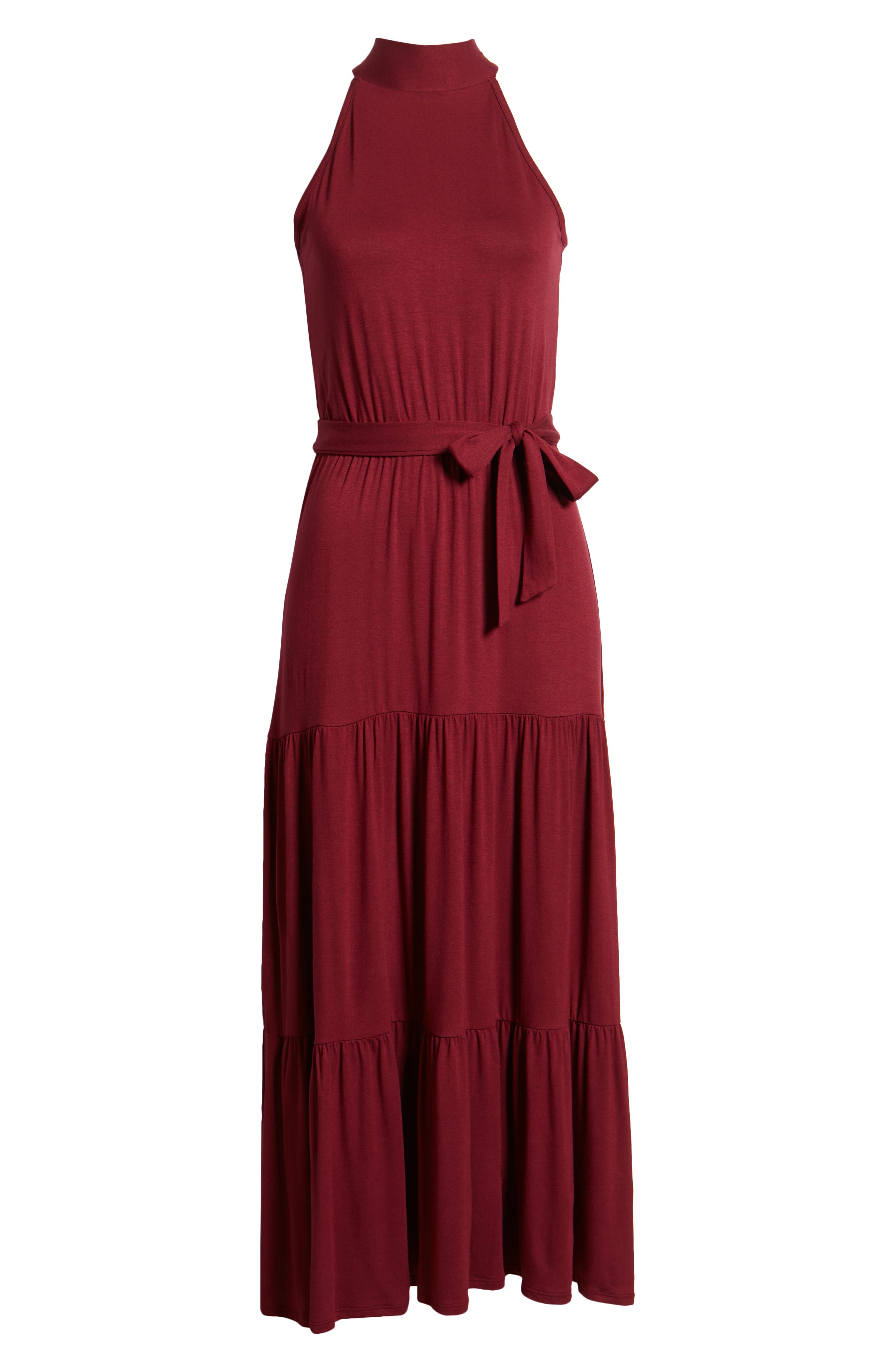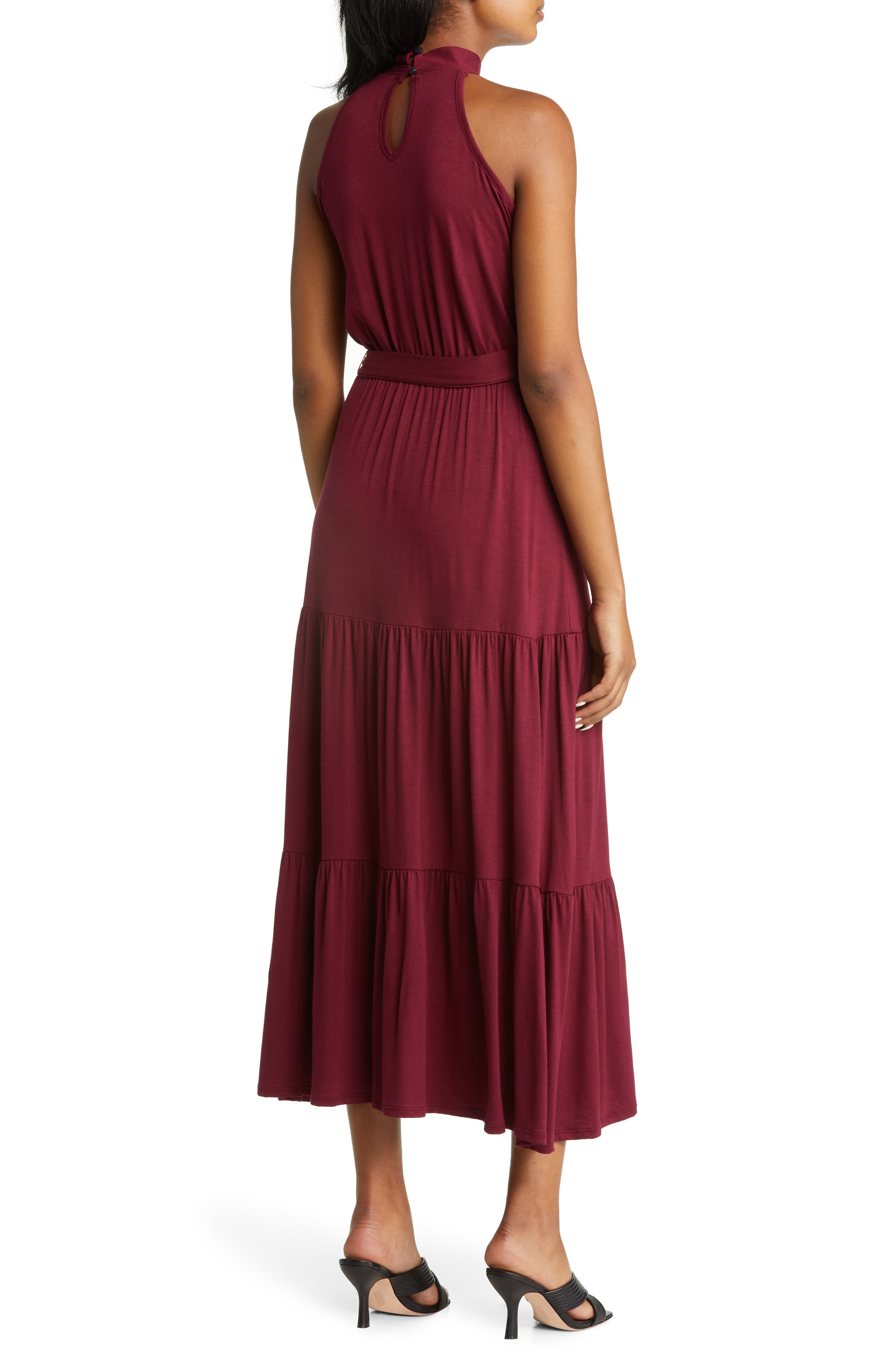 Loveappella Tiered Halter Maxi Dress_Burgundy