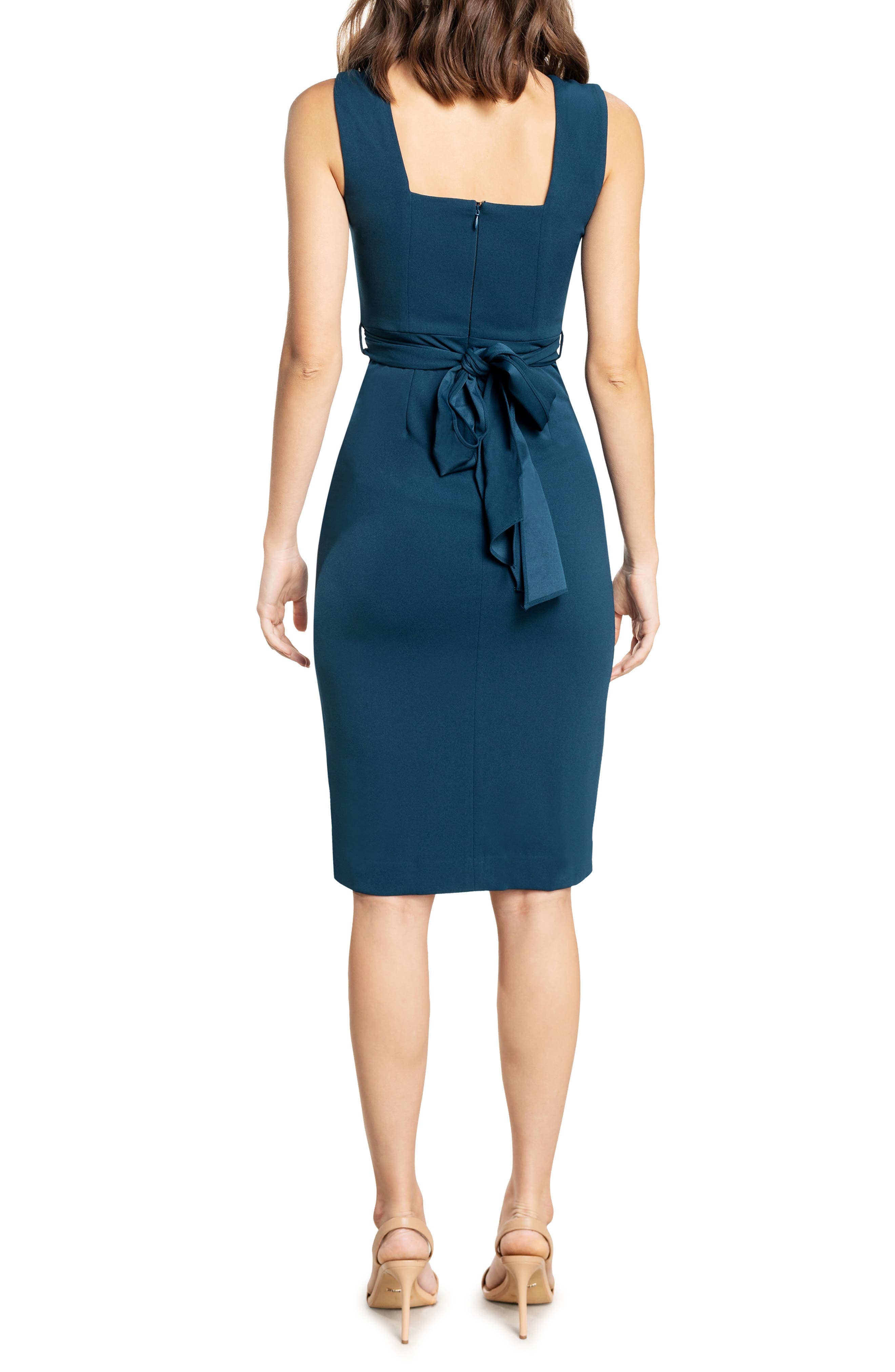Dress the Population Alessia Tie Waist Crepe Dress_Peacock Blue