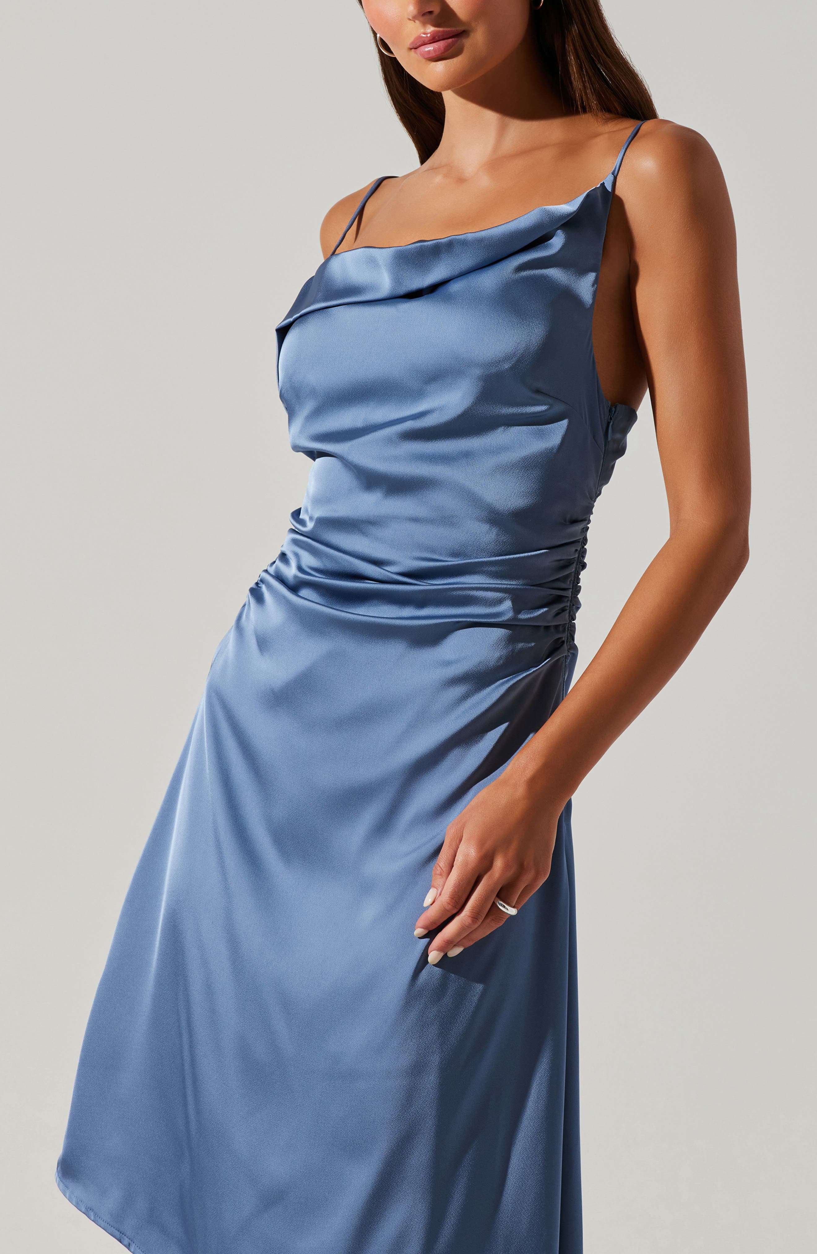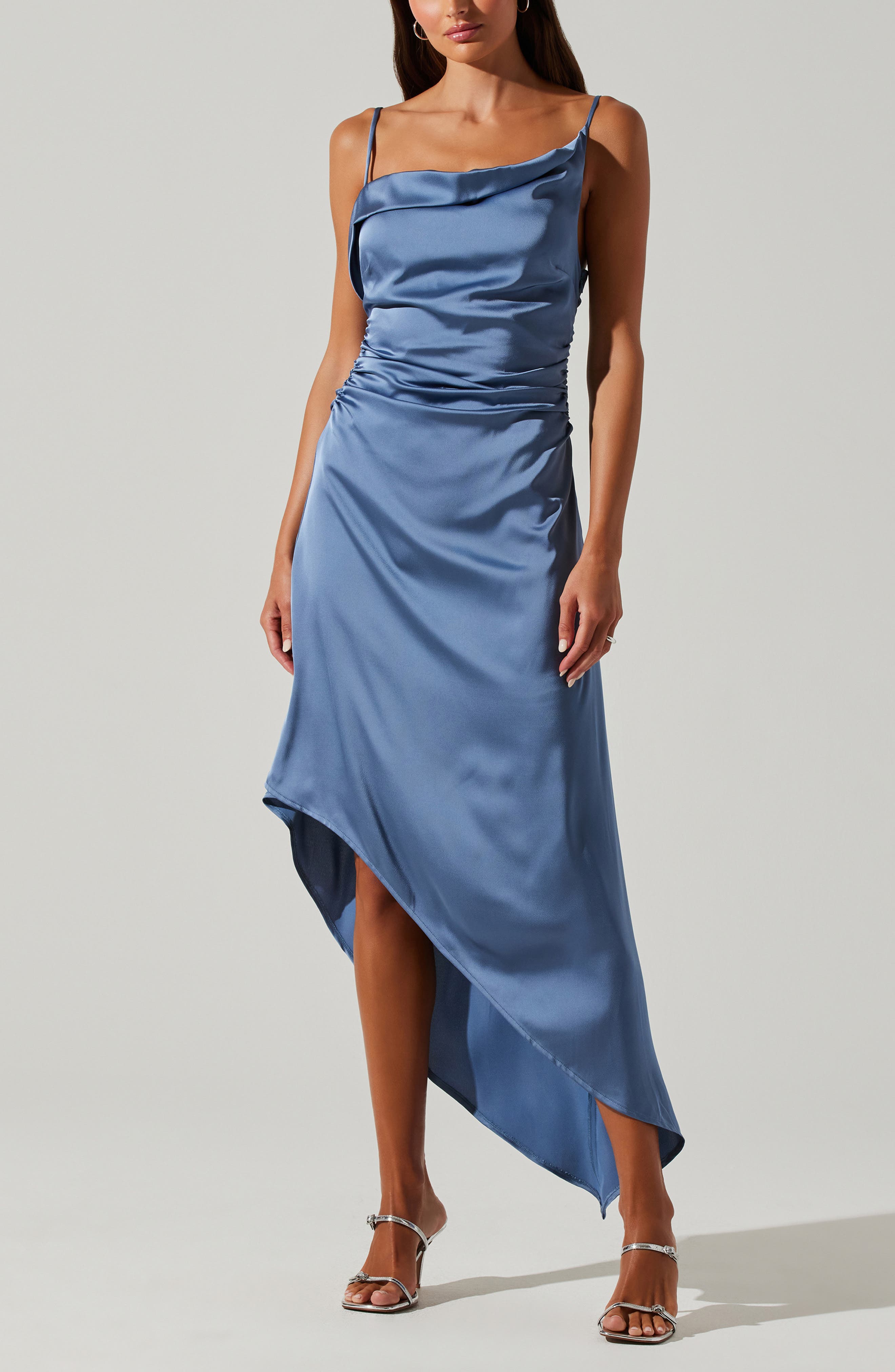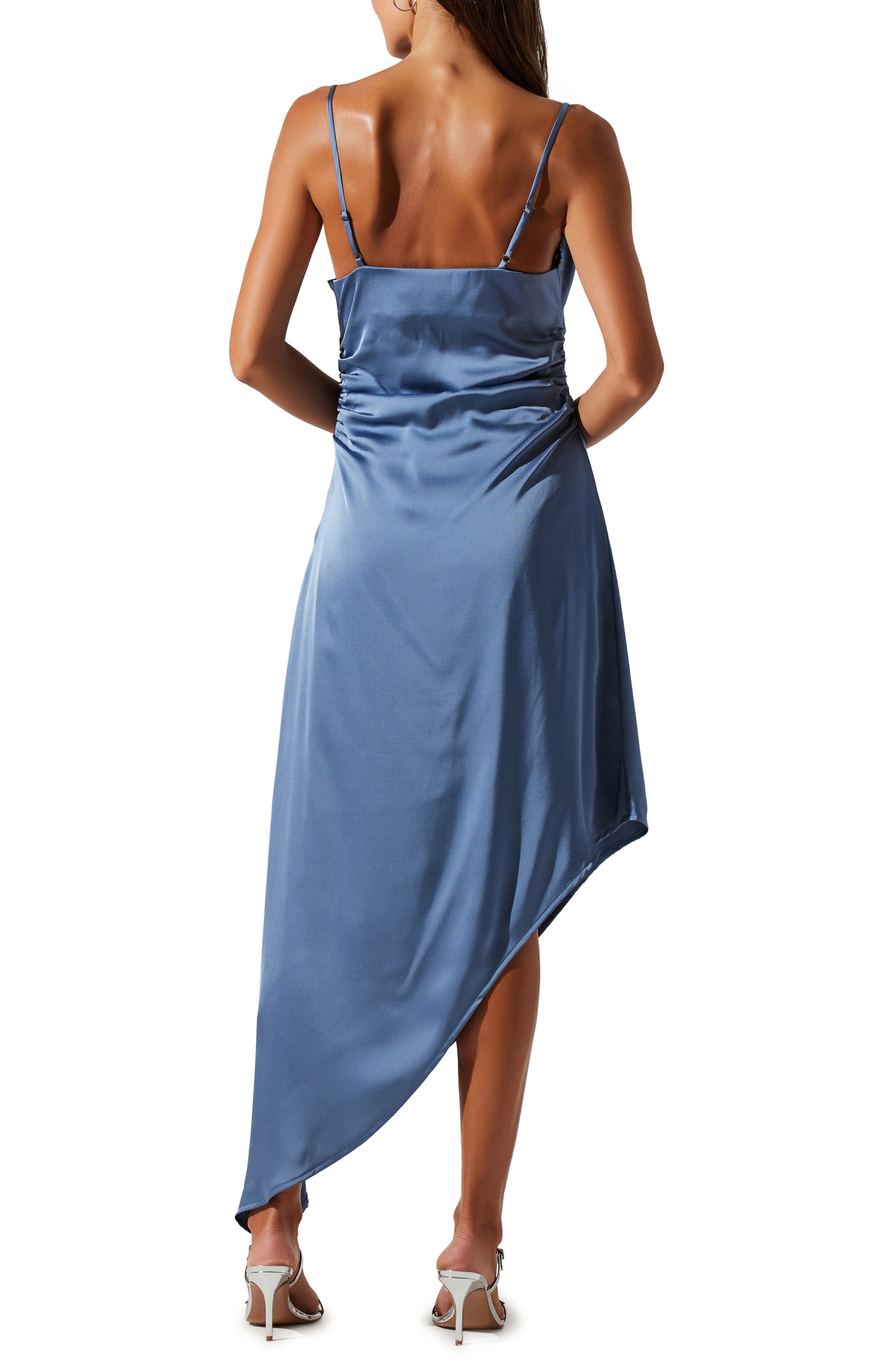 ASTR the Label Mirie Asymmetric Satin Dress_Slate Blue