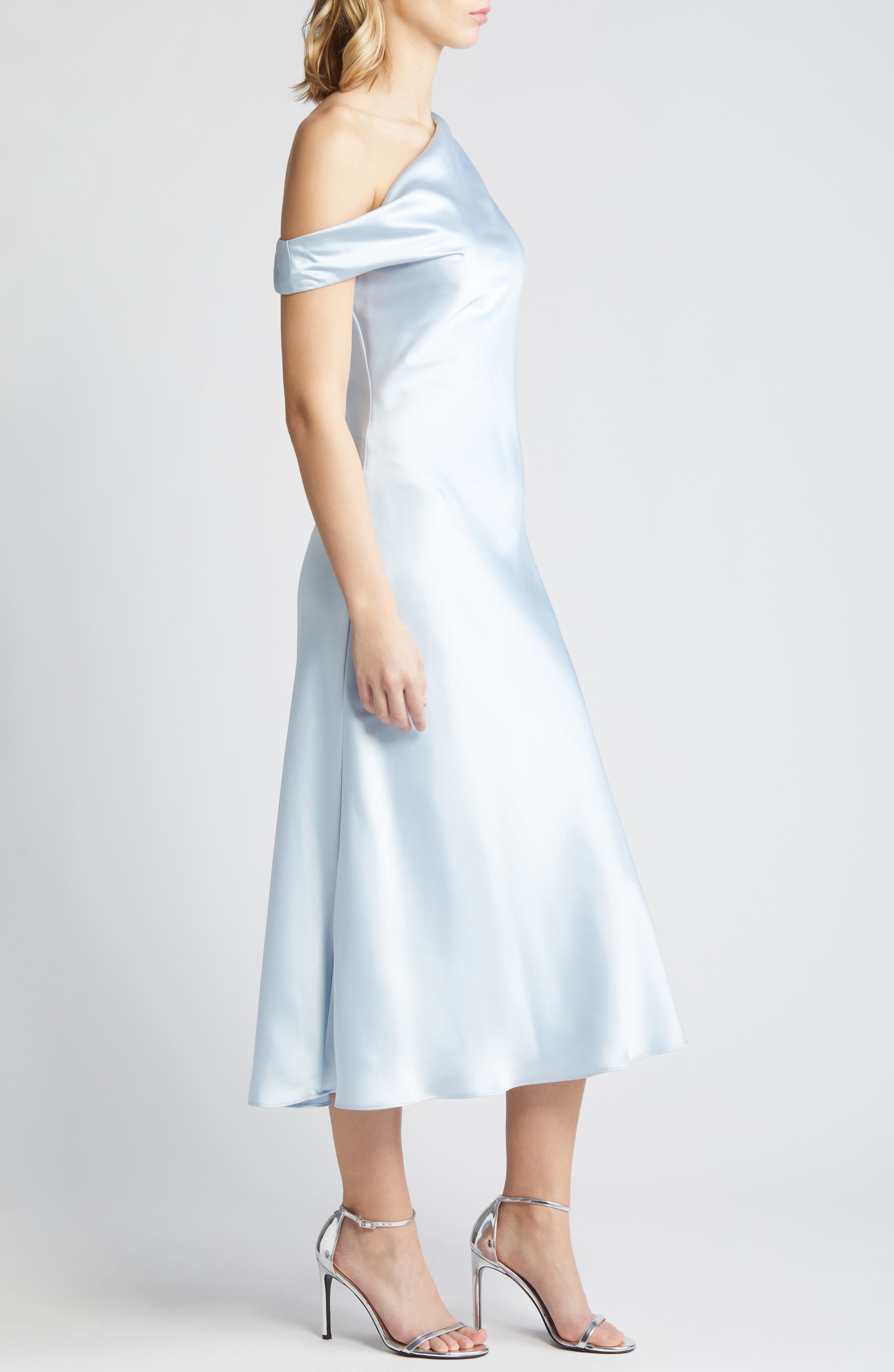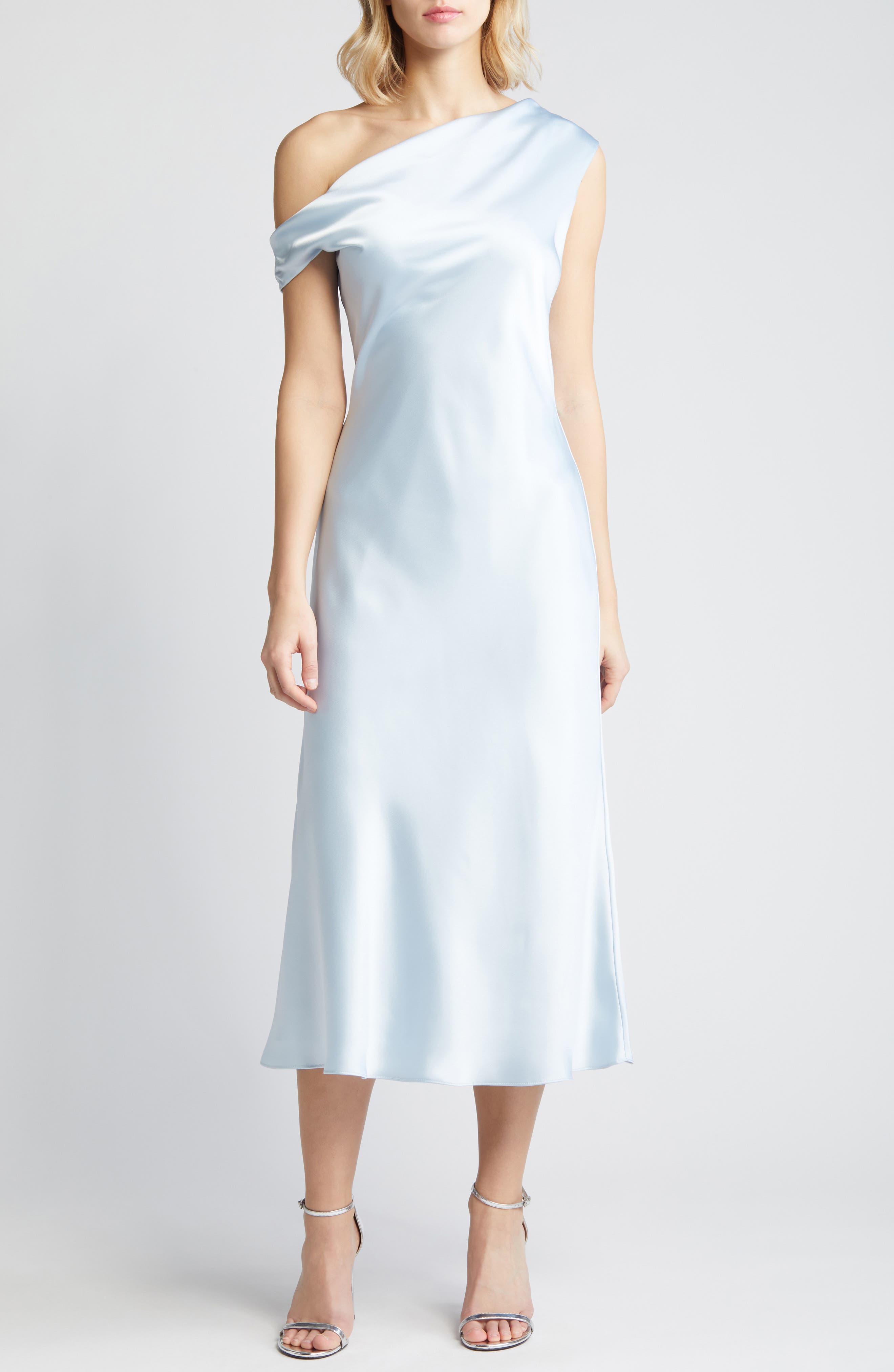 Amsale One-Shoulder Satin Midi Dress_Ice