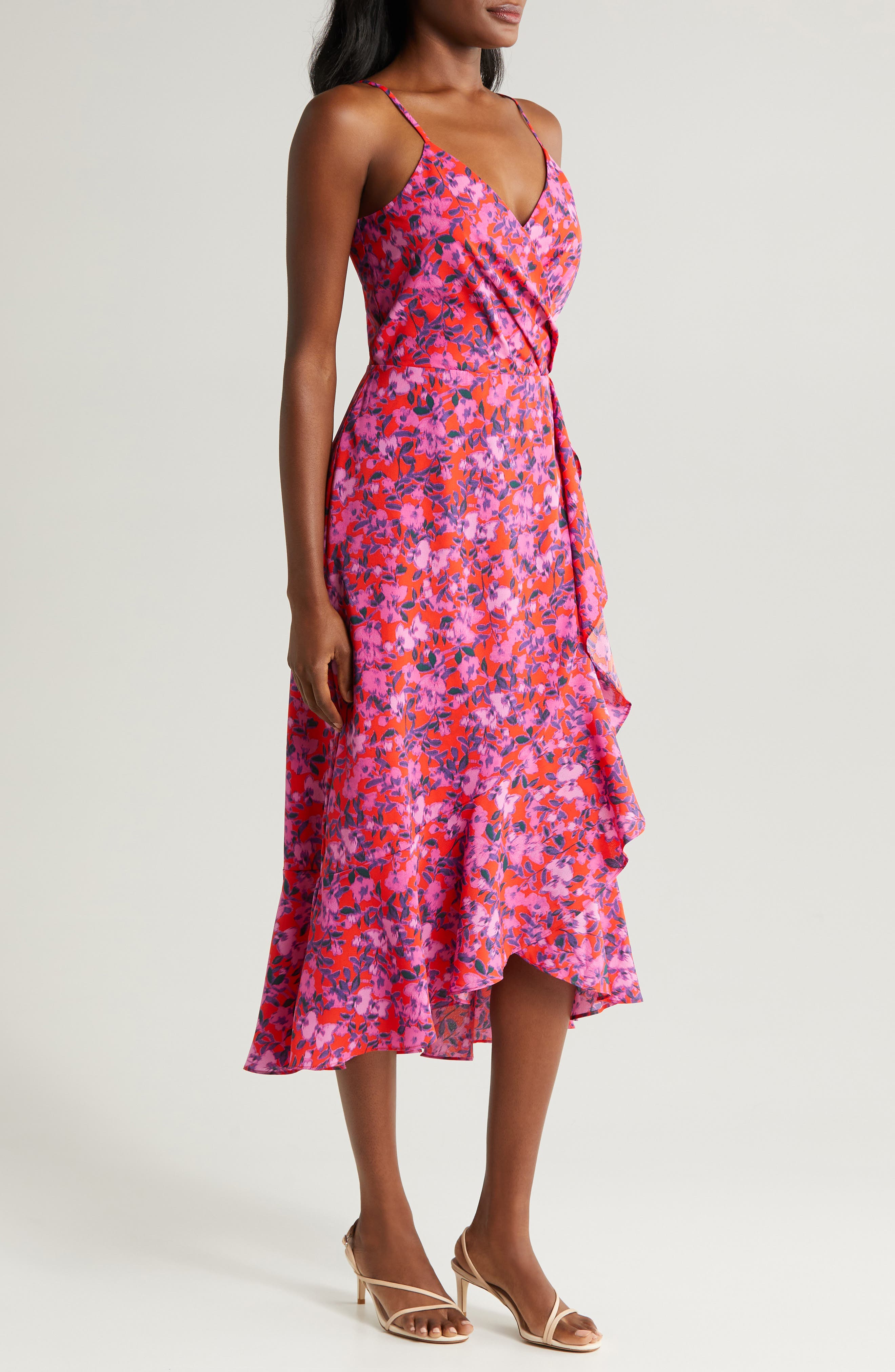 Chelsea28 Faux Wrap Midi Dress_Red/ Pink Fleur Ikat