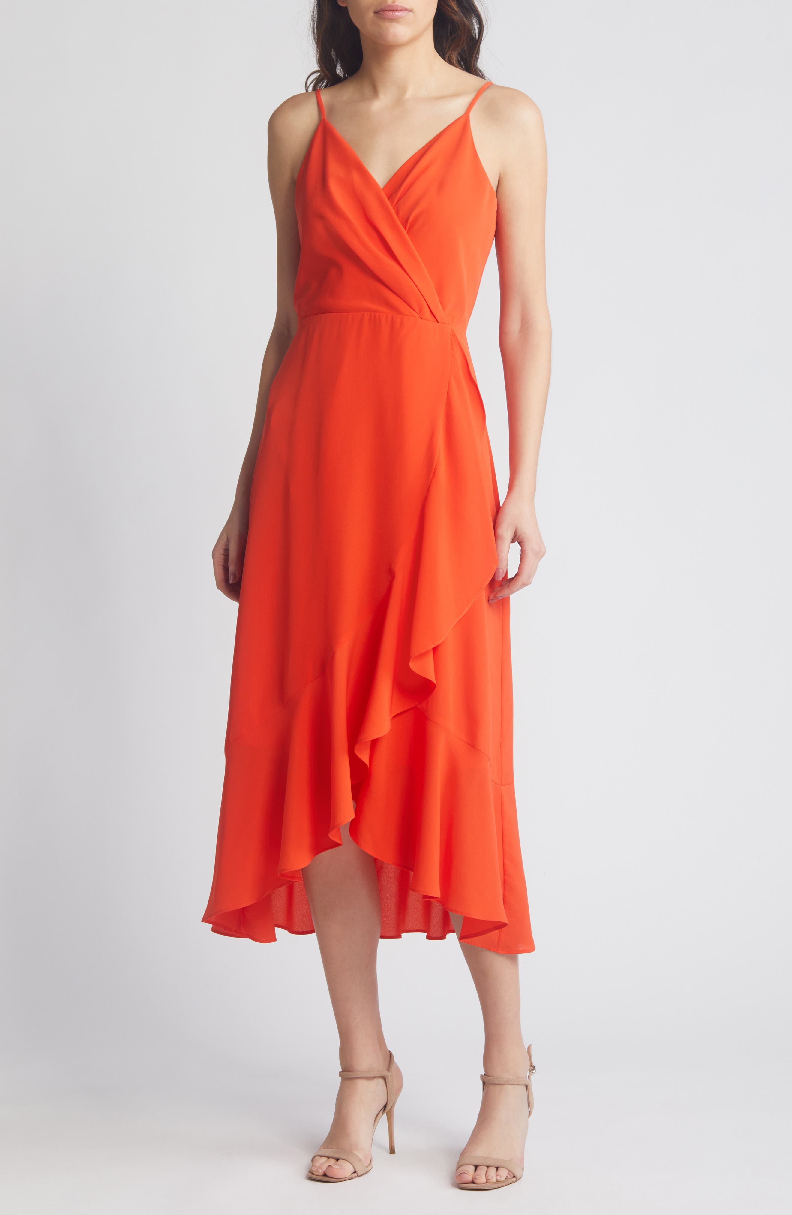 Chelsea28 Faux Wrap Midi Dress_Red Grenadine