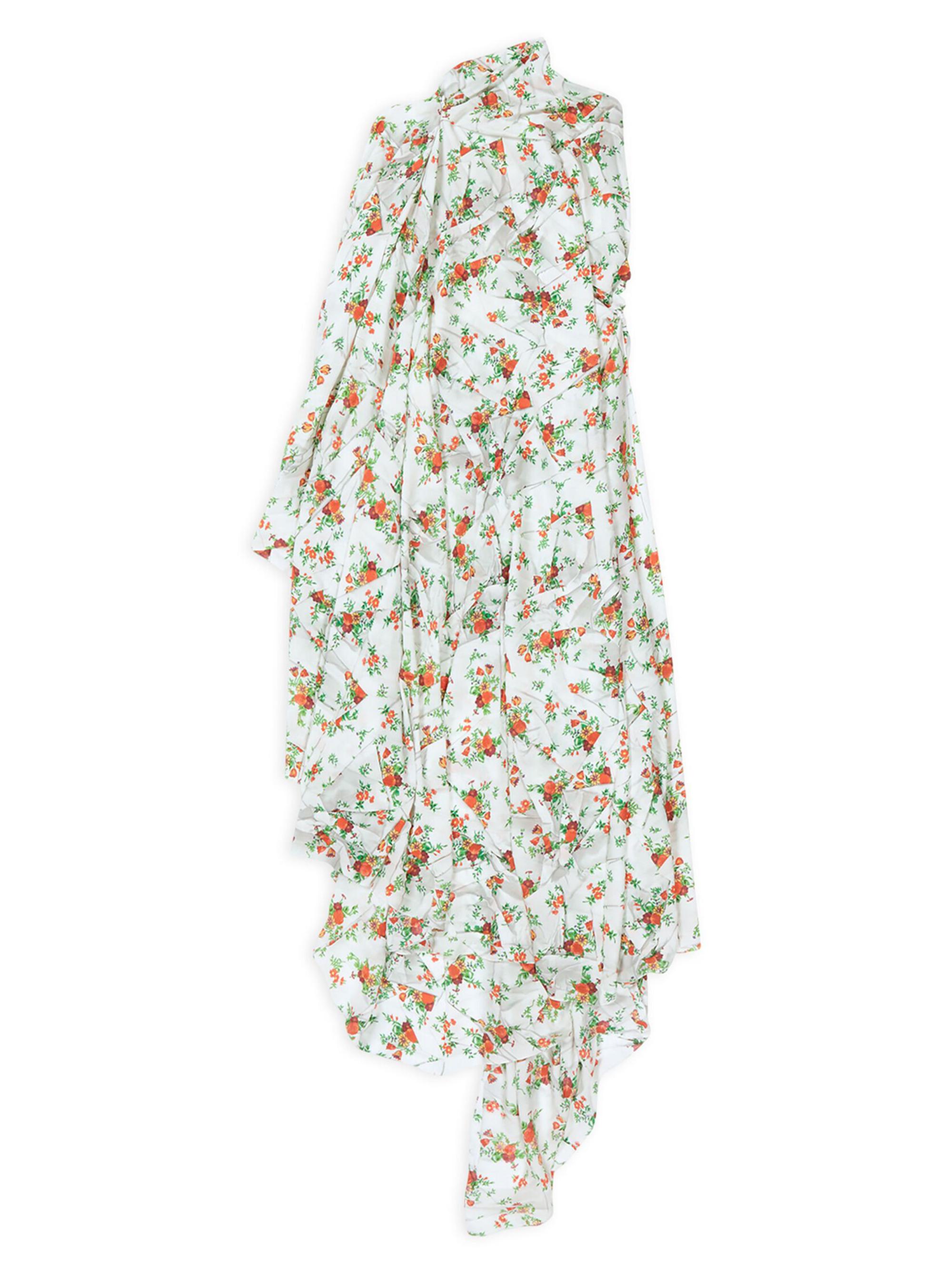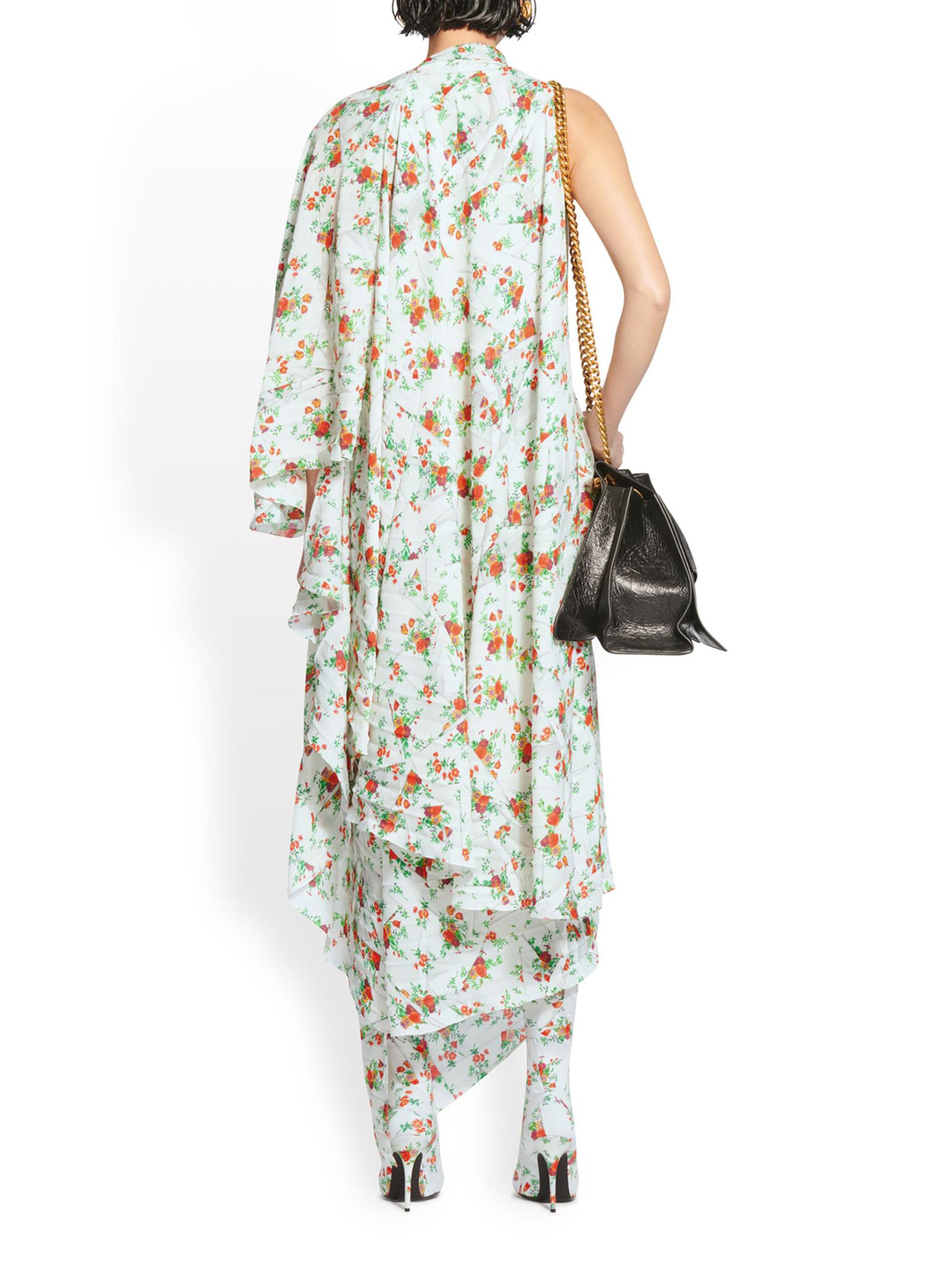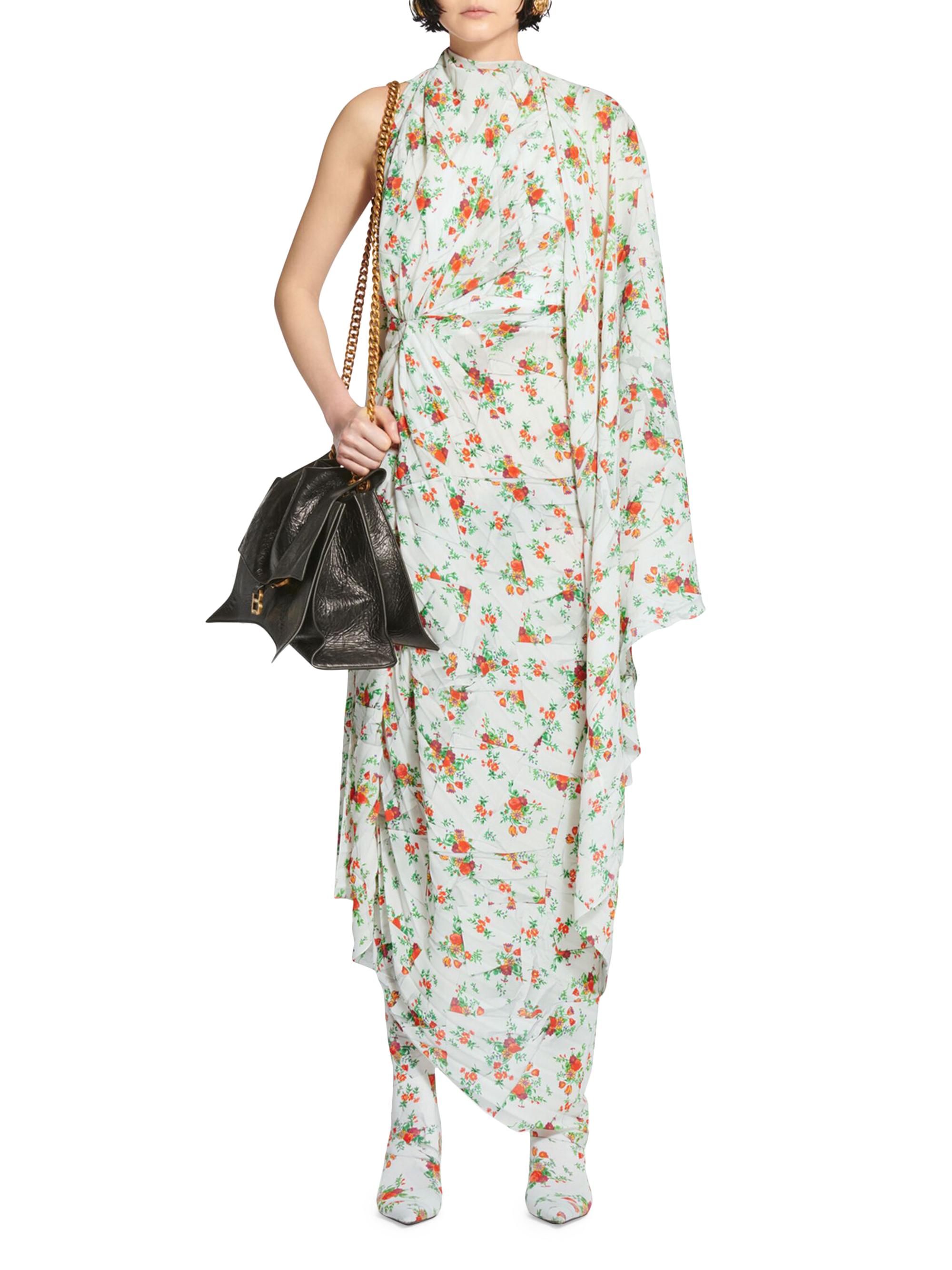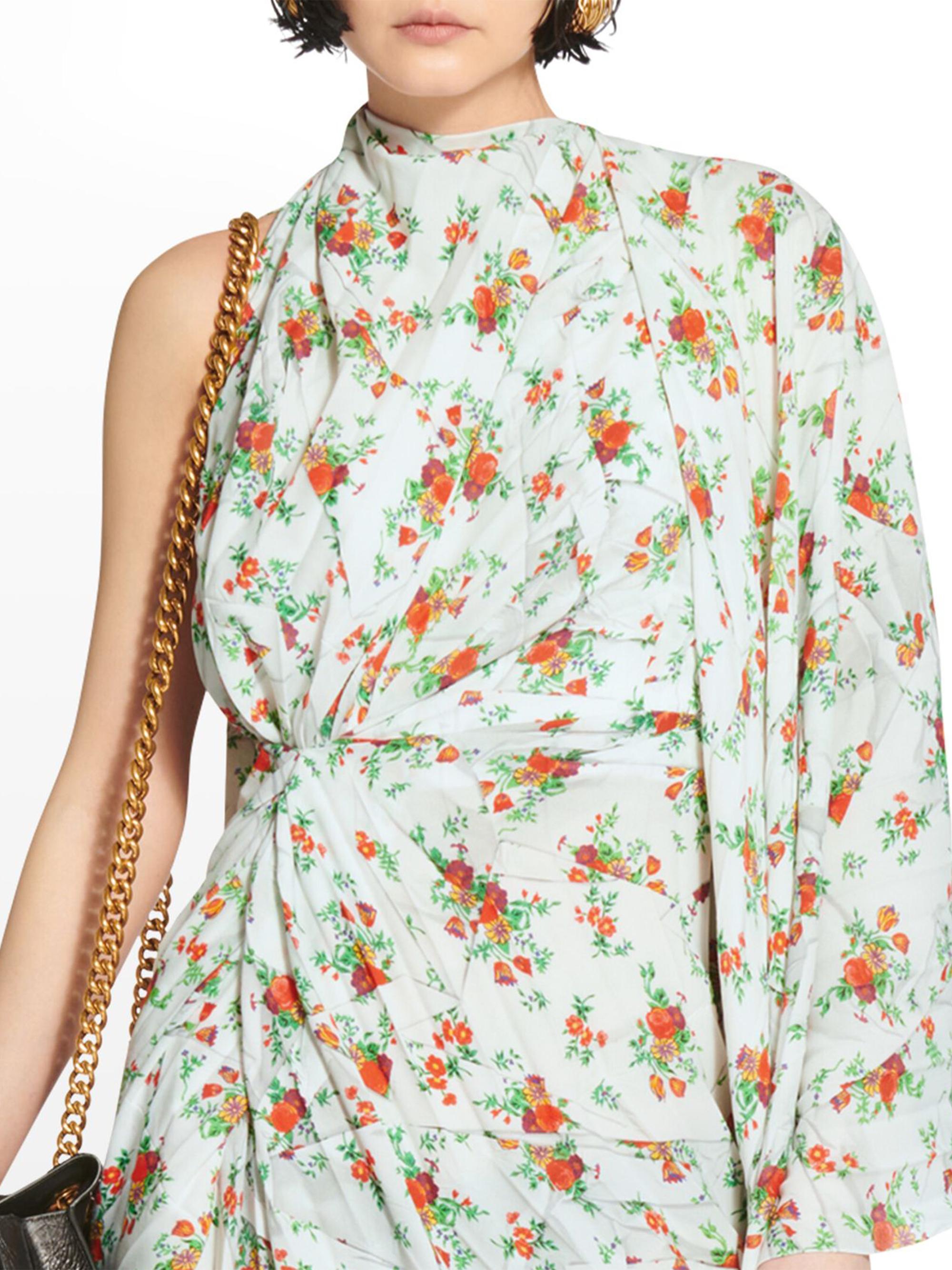 Balenciaga Paper Crush Floral Asymmetric Pleated Dress