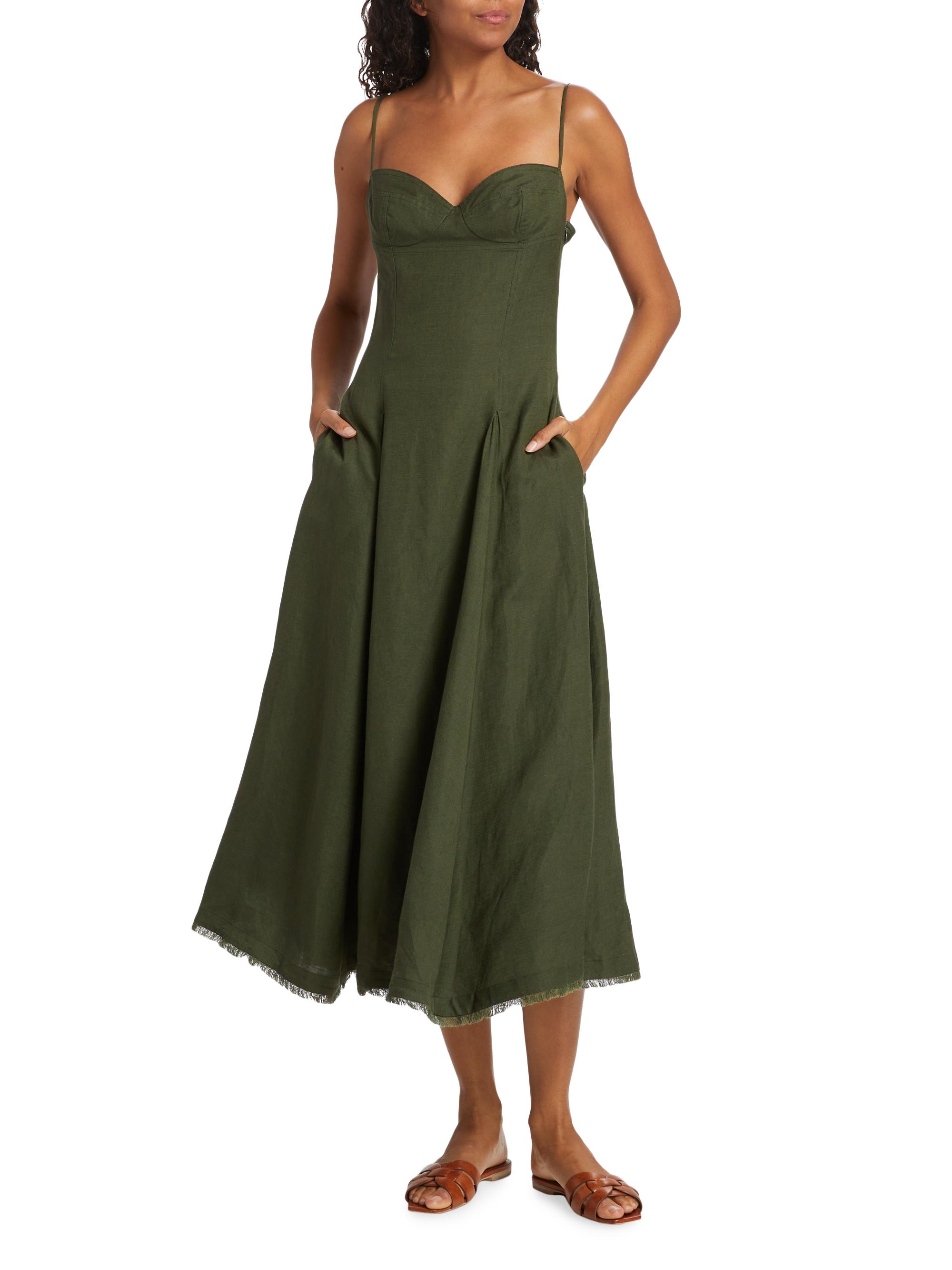 SIMKHAI Analise Linen-Blend Bustier Midi-Dress