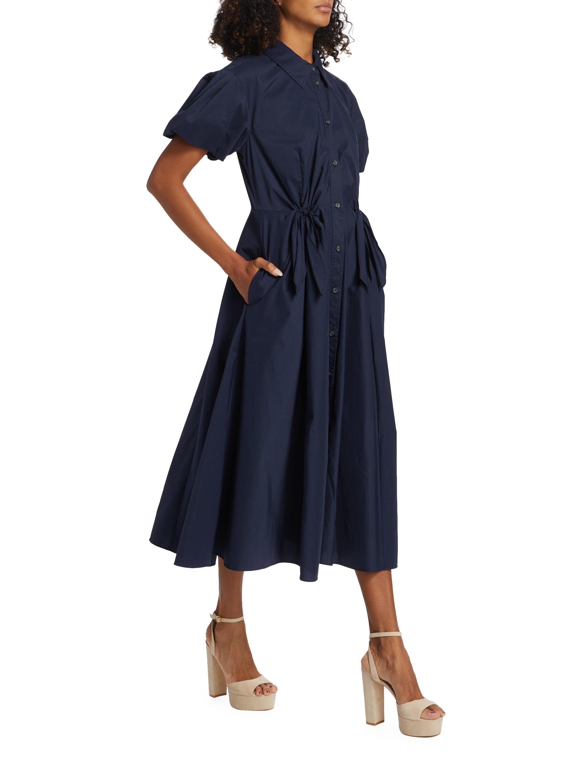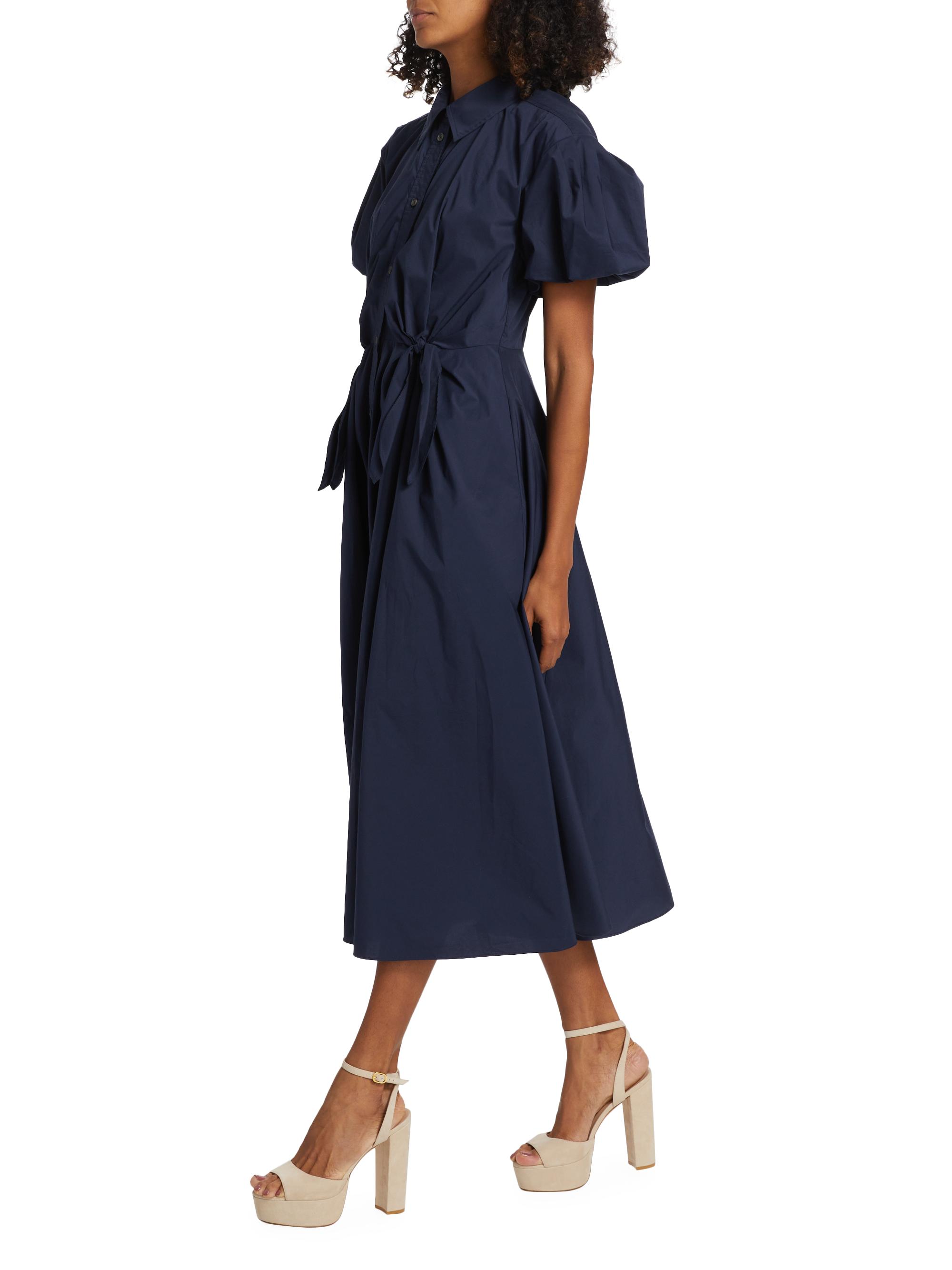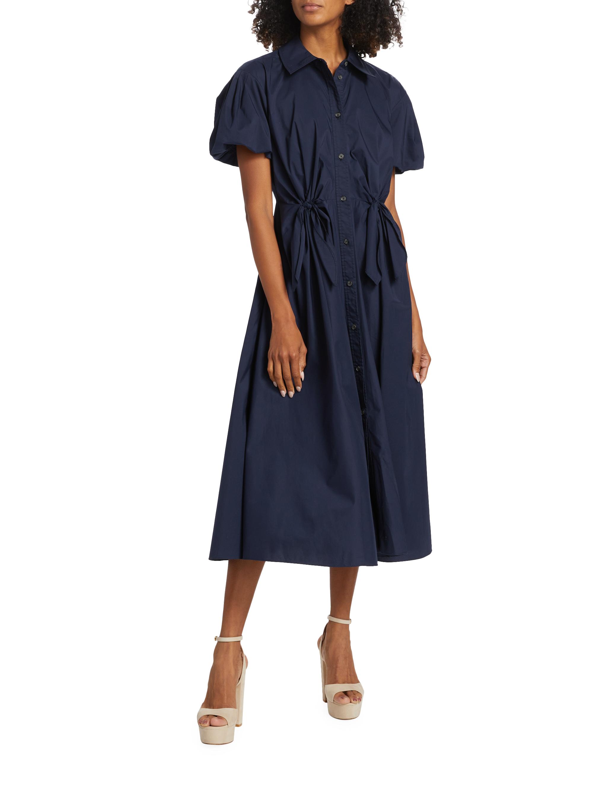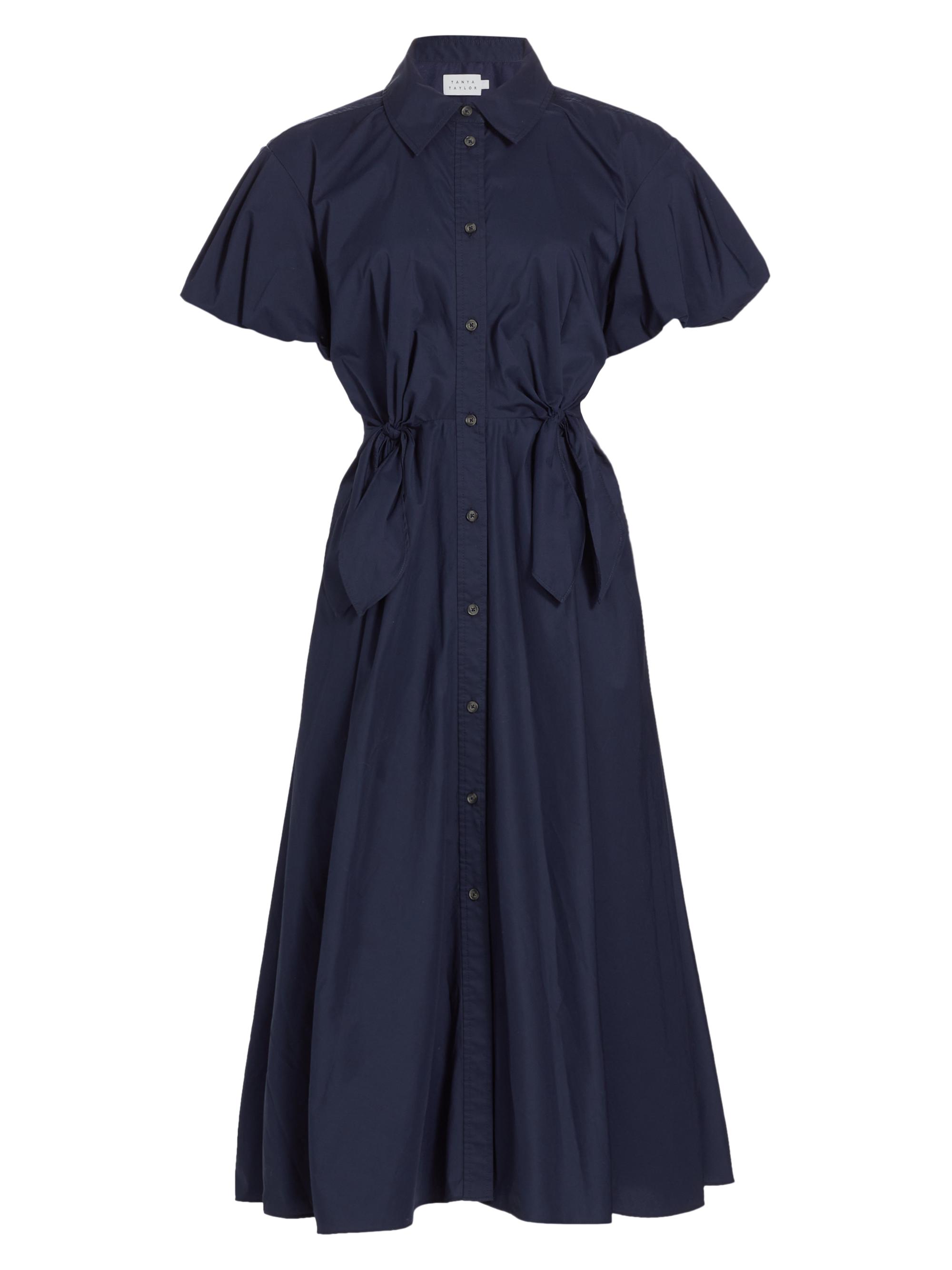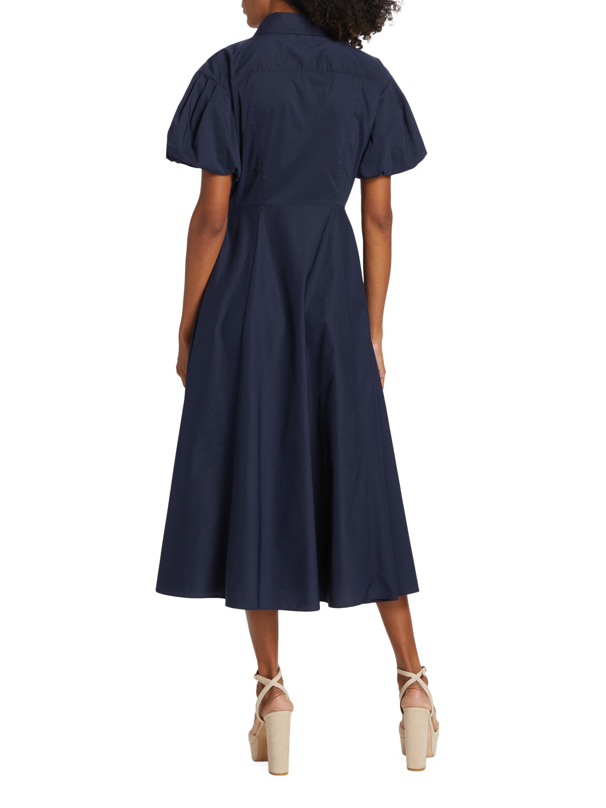 Tanya Taylor Elza Puff-Sleeve Cotton Poplin Shirtdress