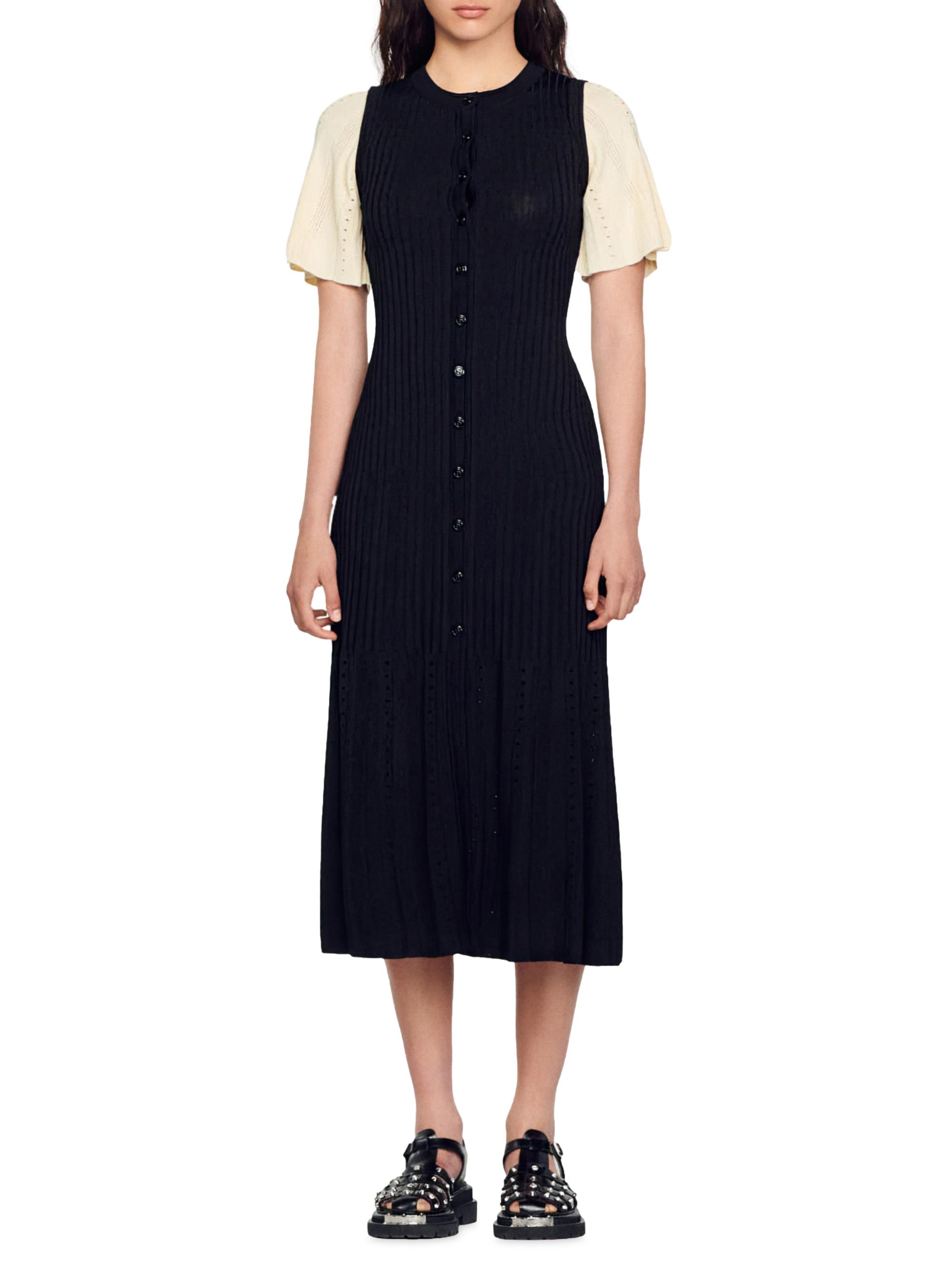 Sandro Midi Knit Dress BLACK