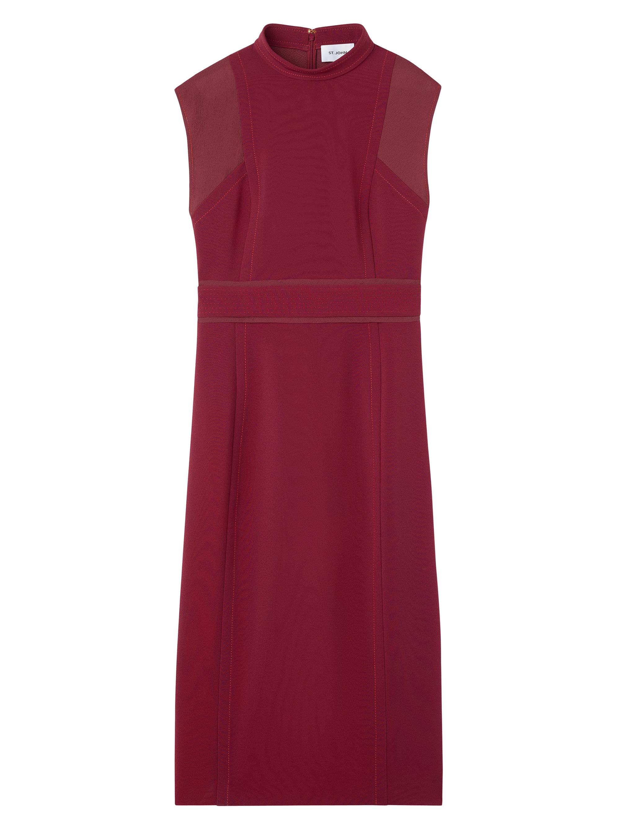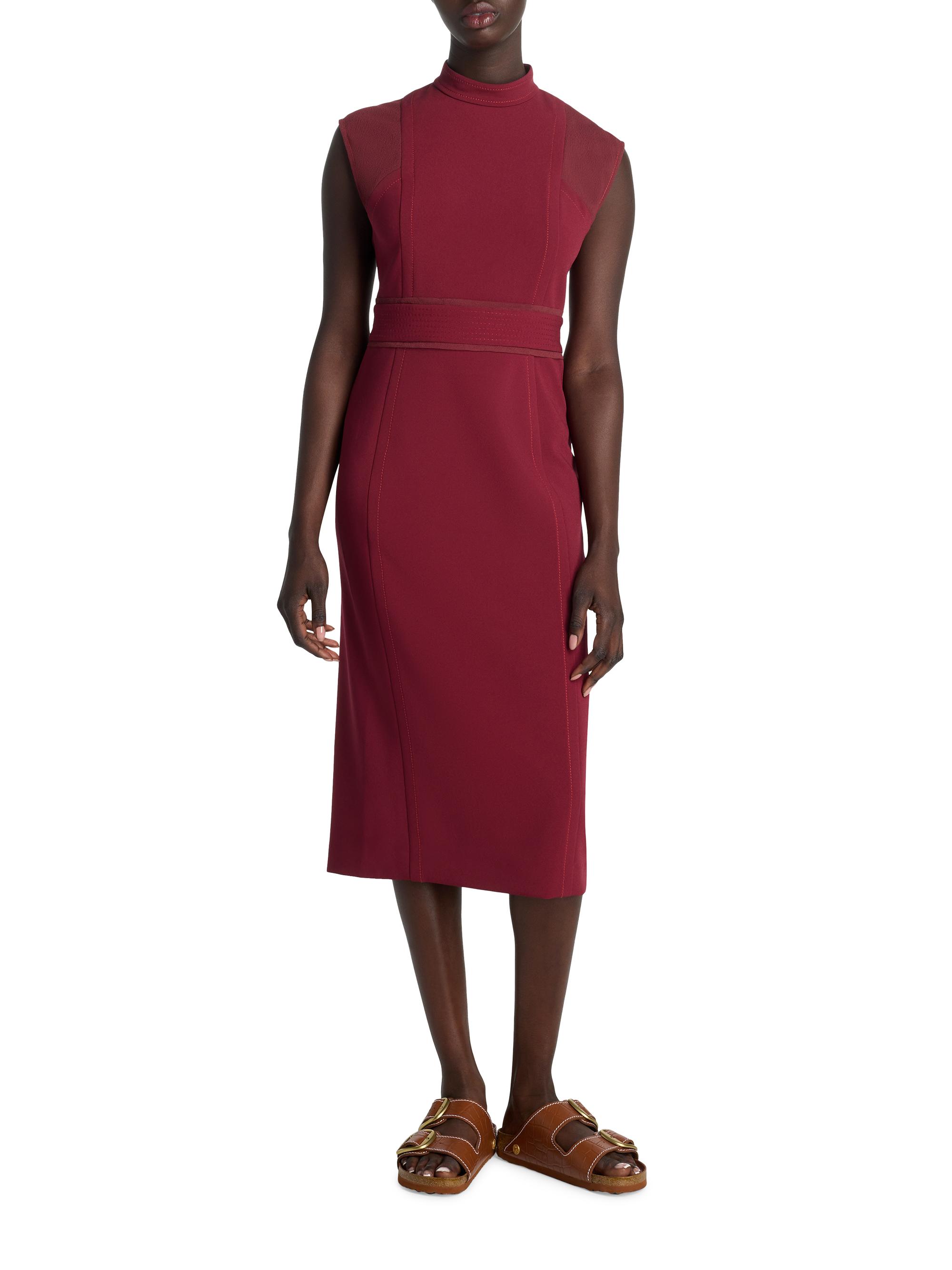 St. John Collection Line Sleeveless Cady Midi-Dress
